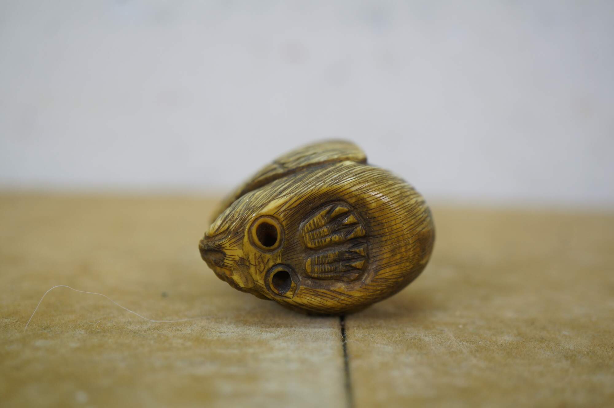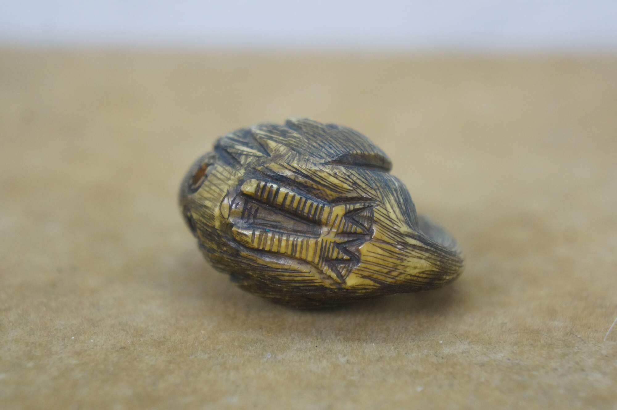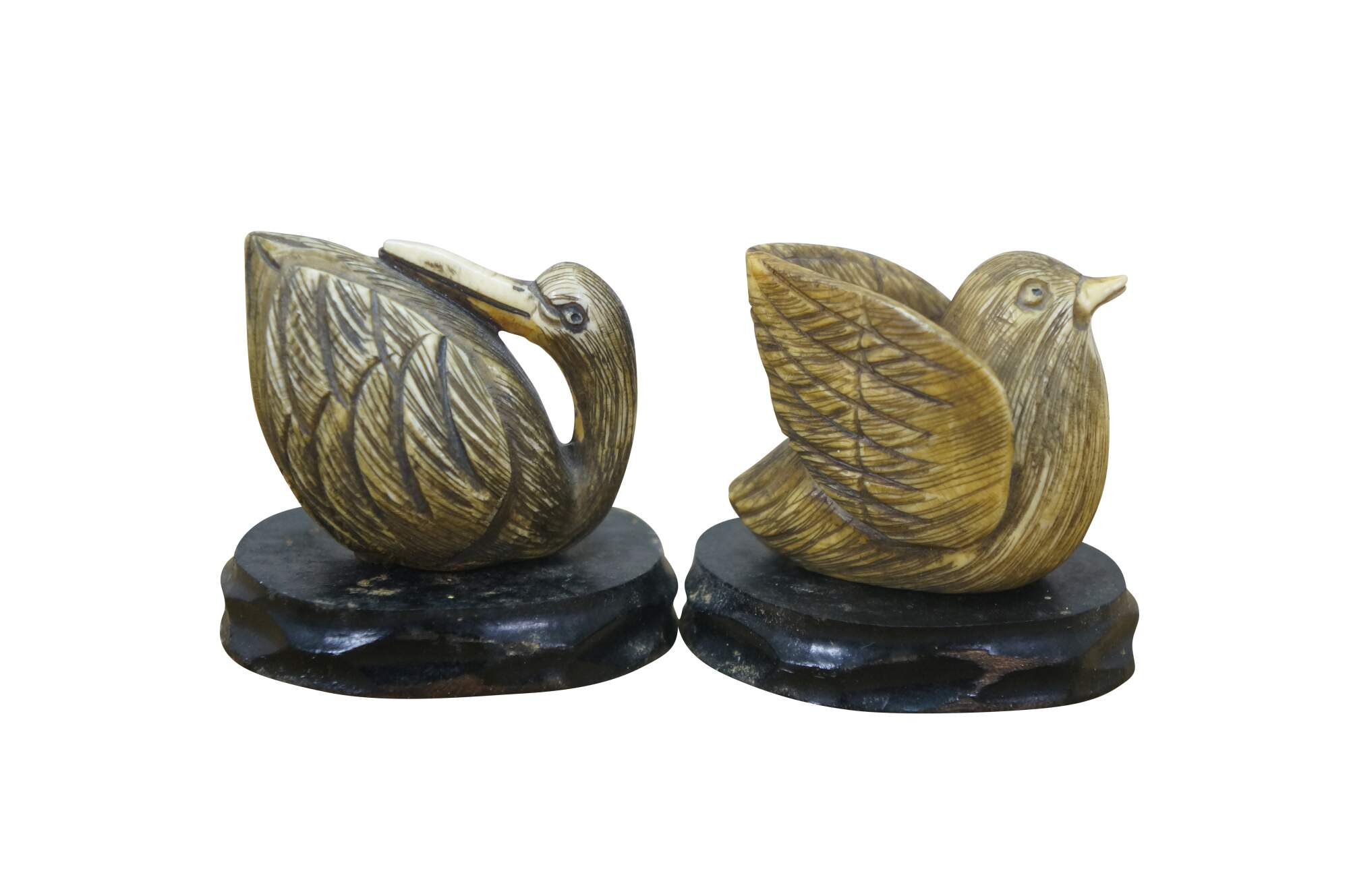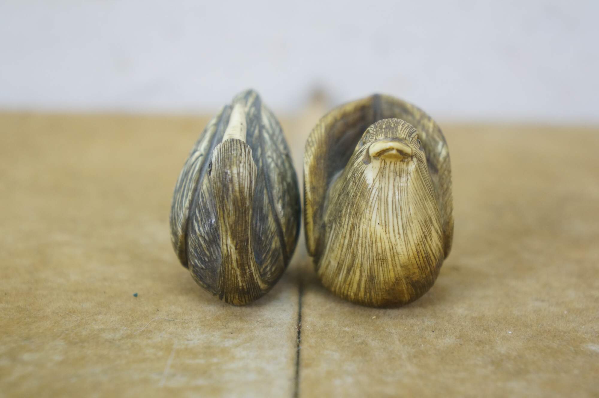Antique Japanese Ivory Netsuke Crane / Water bird / Sparrow. Signed by artist Tamayuki on base.