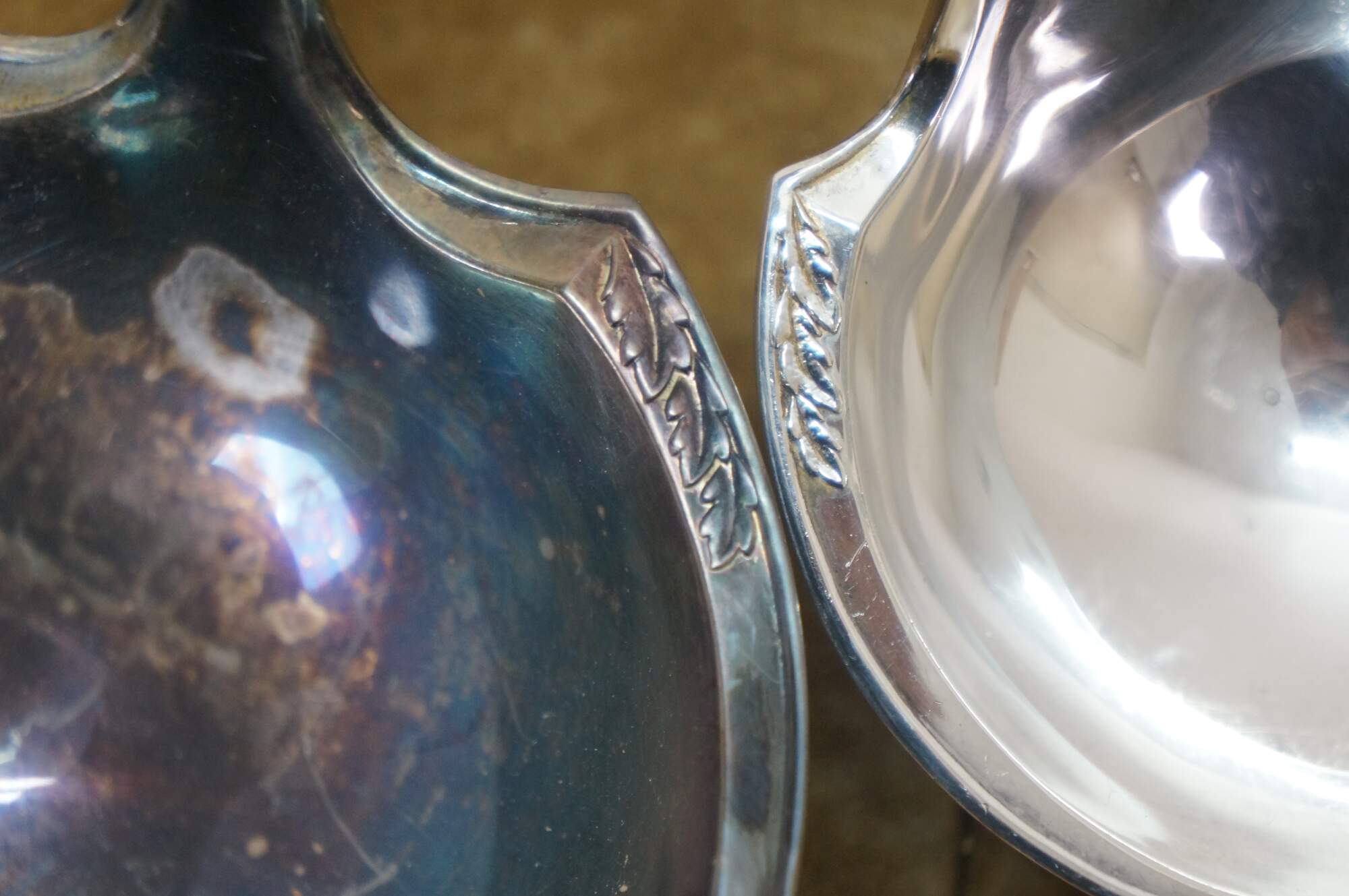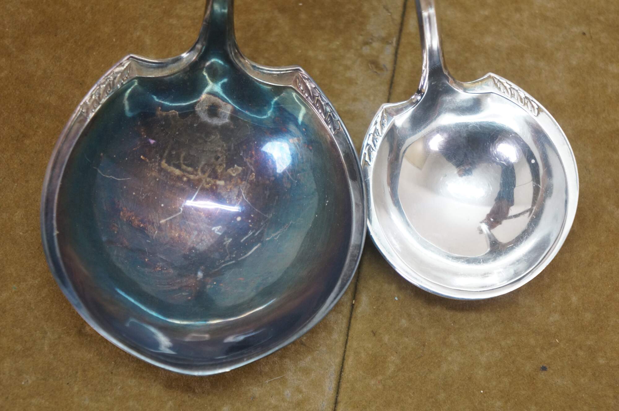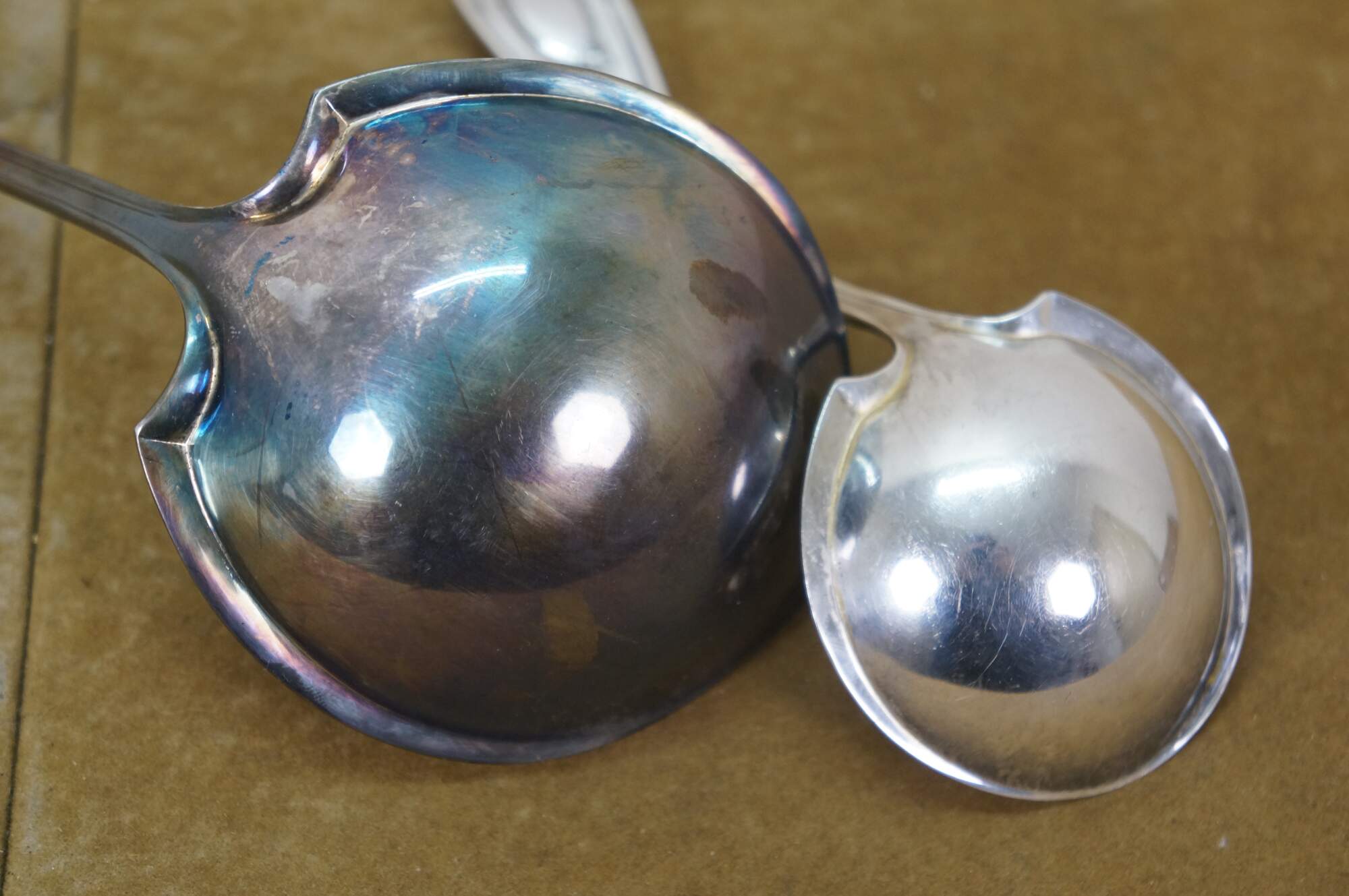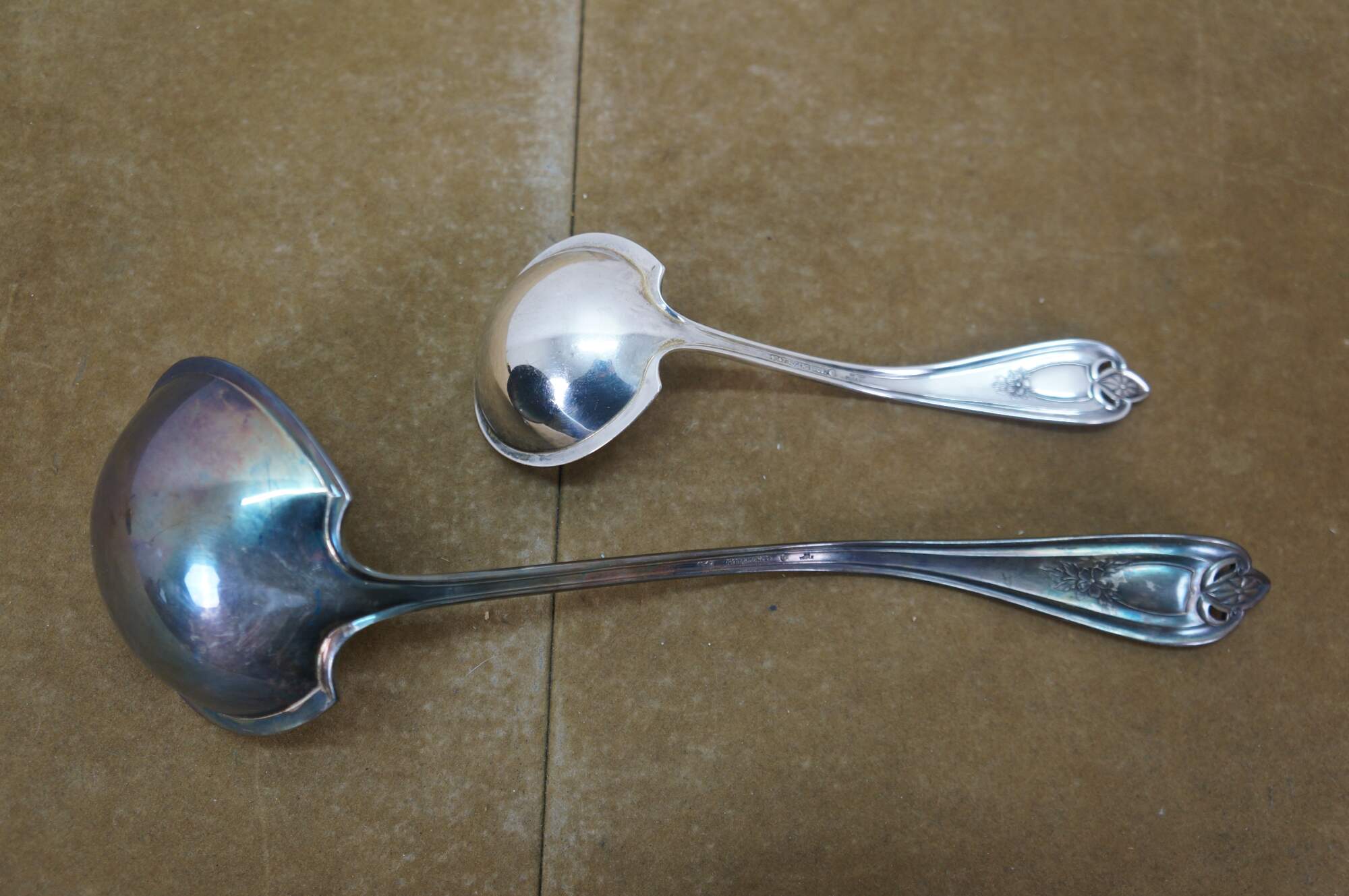 Two vintage 1847 Rogers Brothers Old Colony triple silverplated soup / gravy serving ladels.
