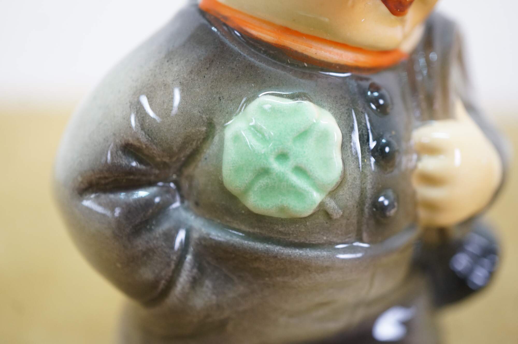 Vintage circa 1972 Goebel Hummel Savings Bank Chimney Sweep shamrock / four leaf clover figurine #1074110.