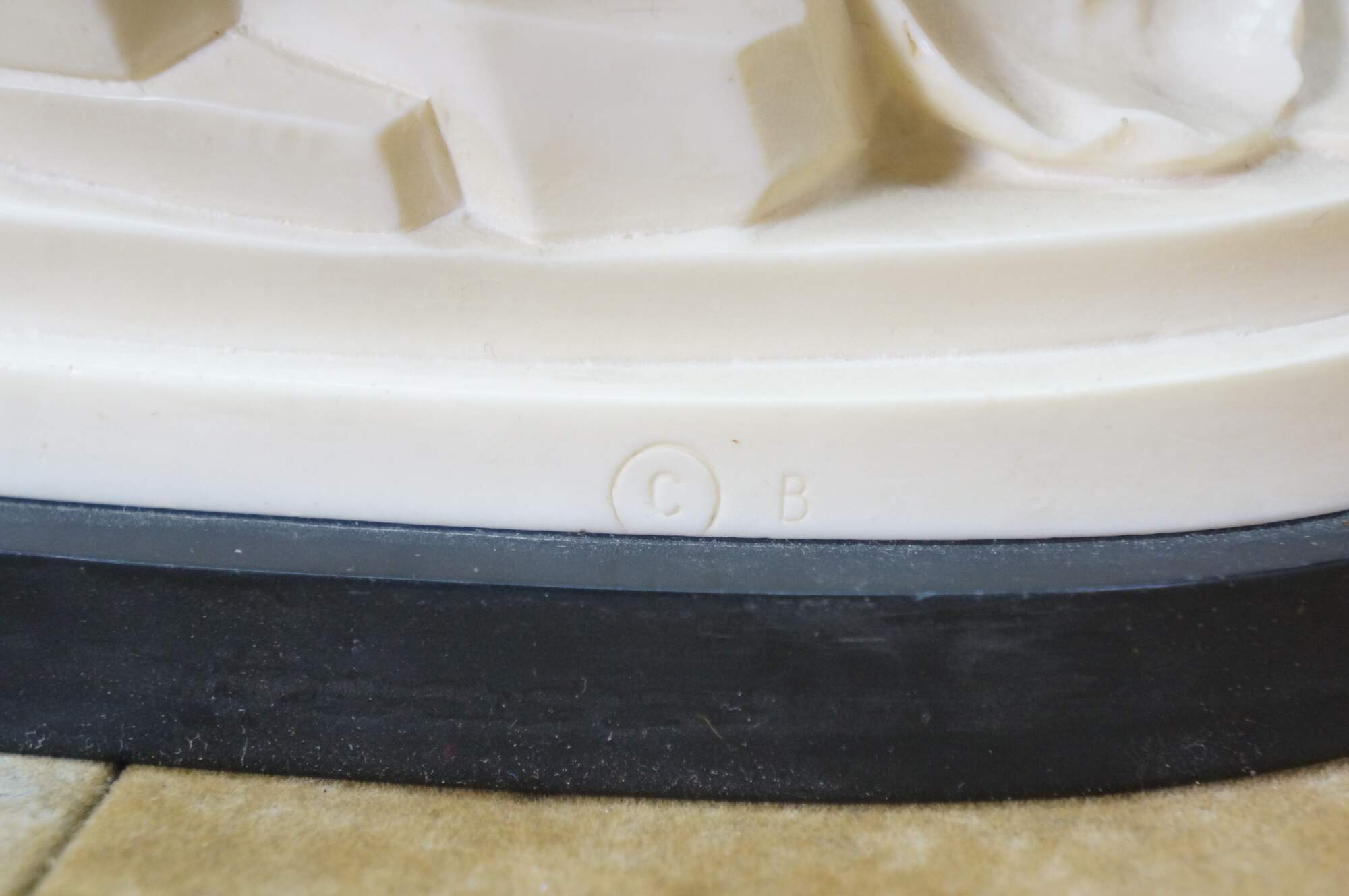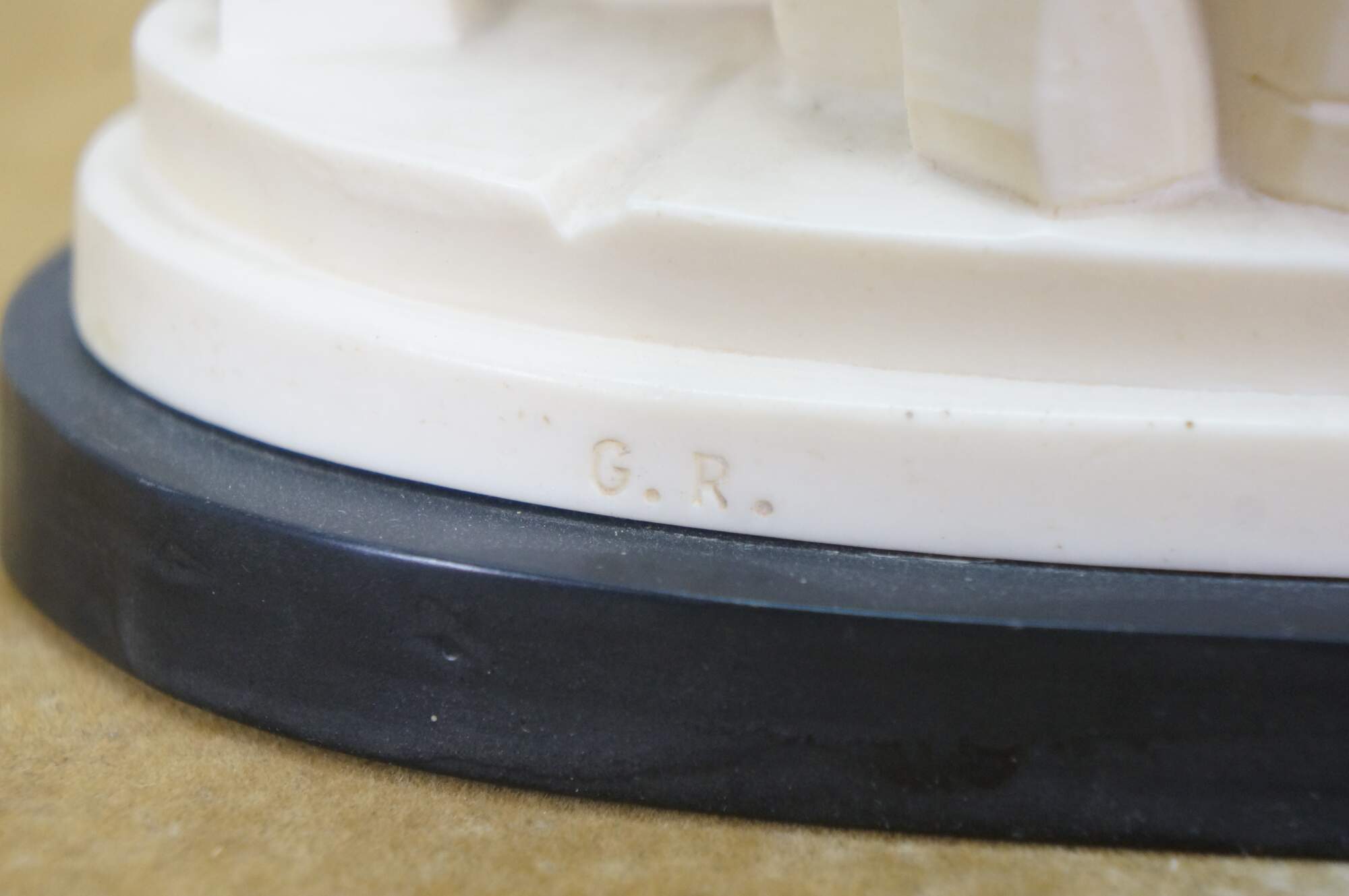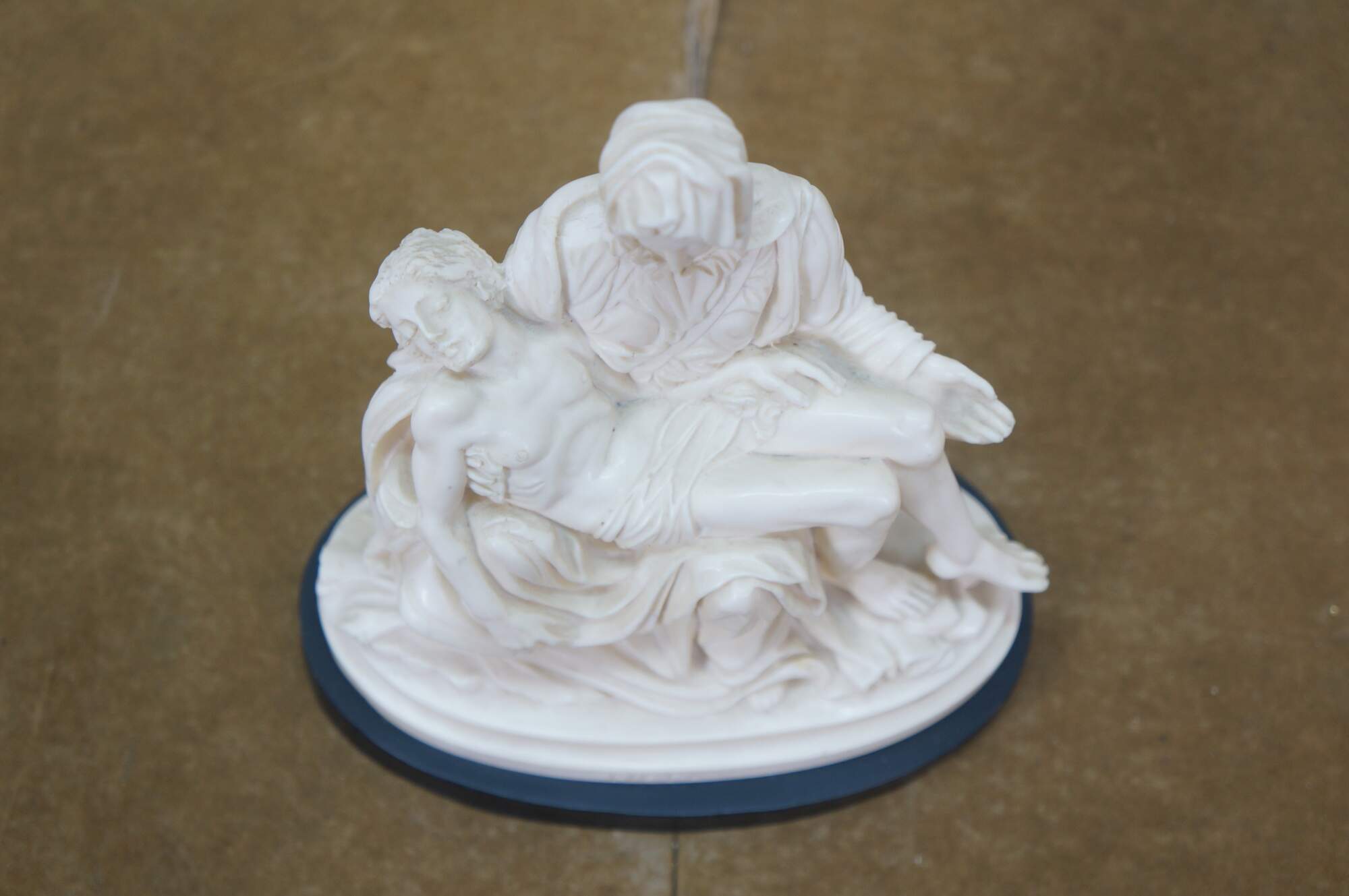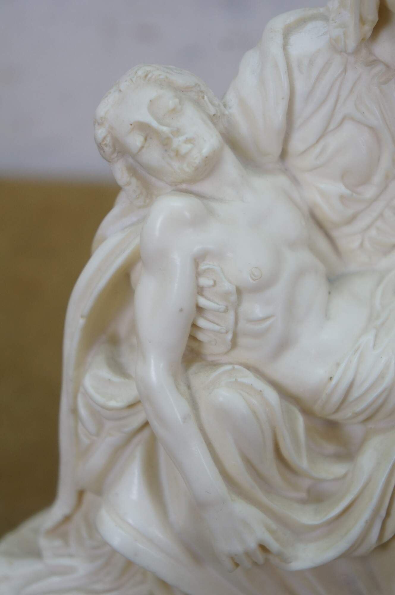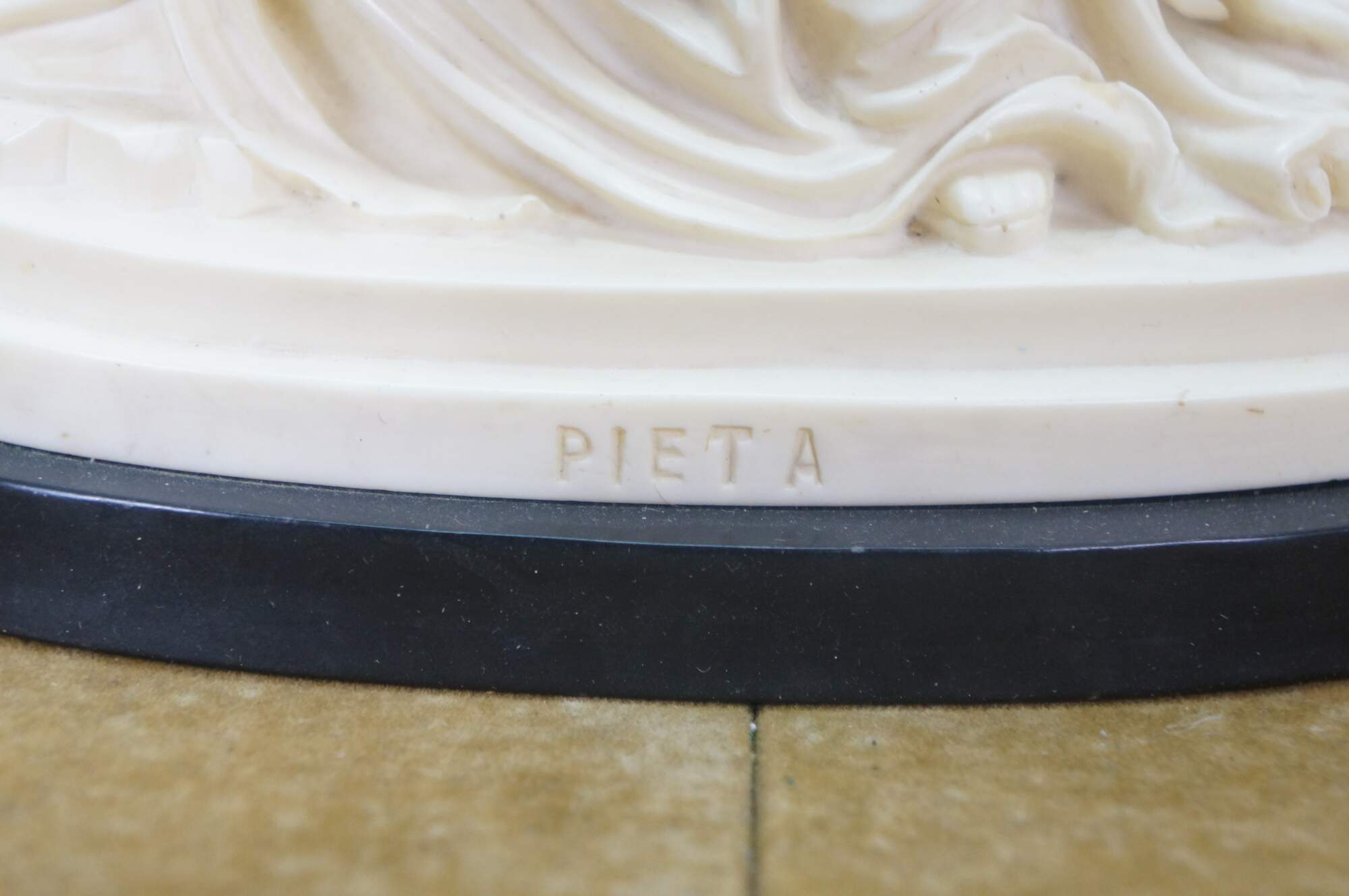 Vintage G Ruggeri sculpture after La Pieta by Michelangelo. Made of an ivory colored resin, featuring Mary holding Jesus. Stone base. Made in Italy.