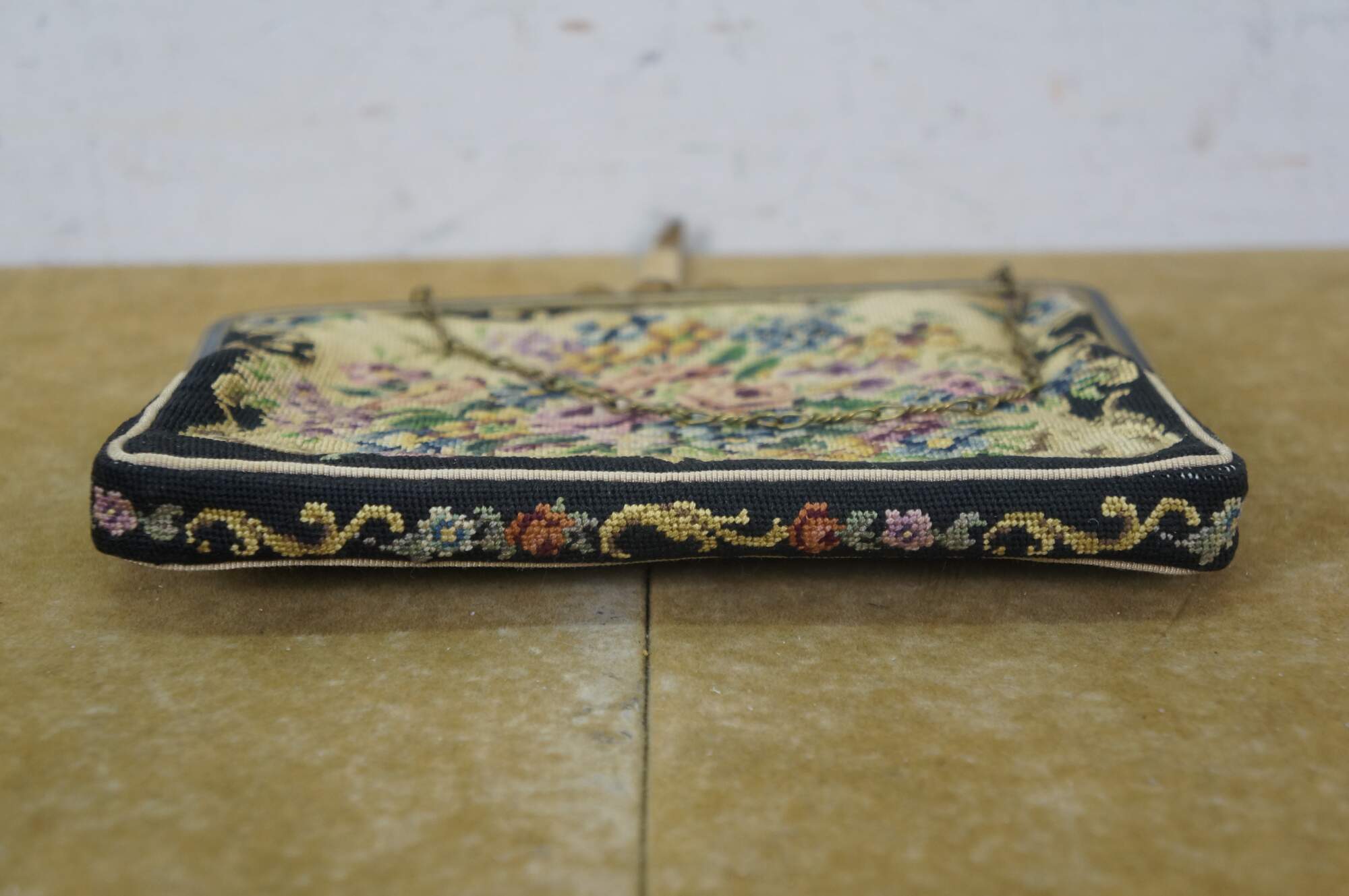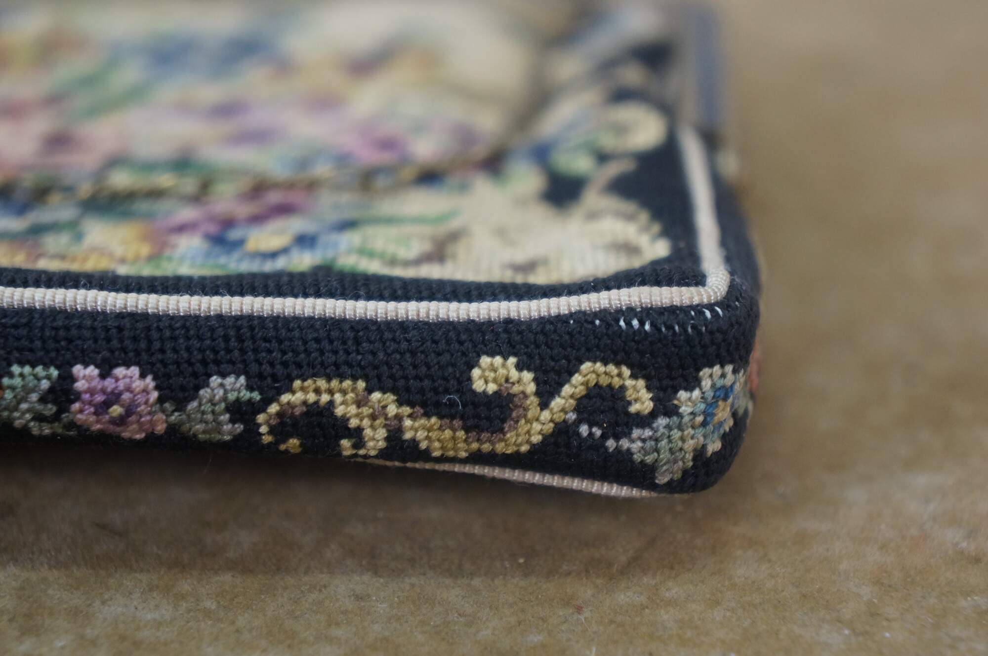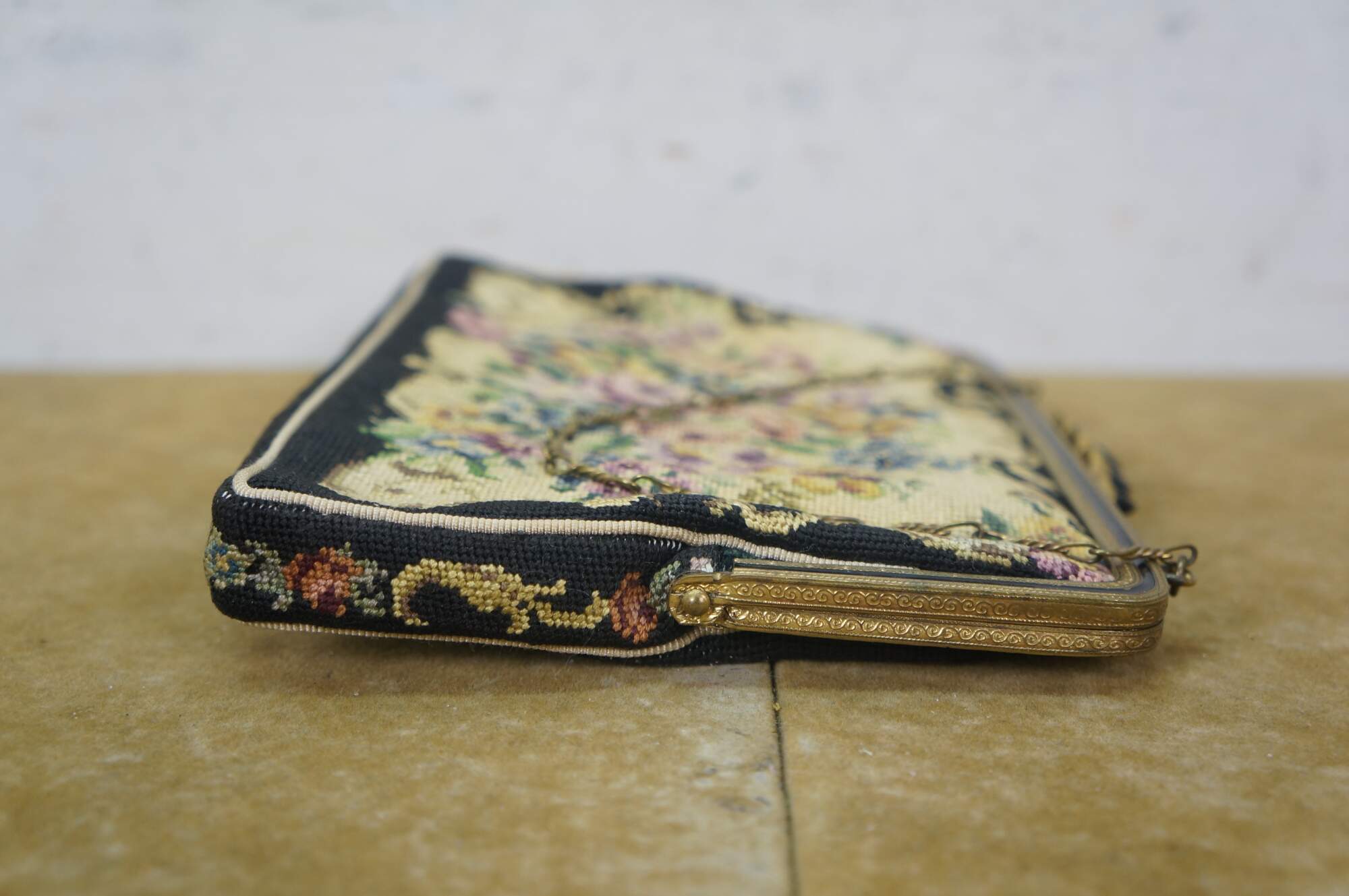 Mid Century Embroidered Floral Clutch Purse Evening Handbag 7"