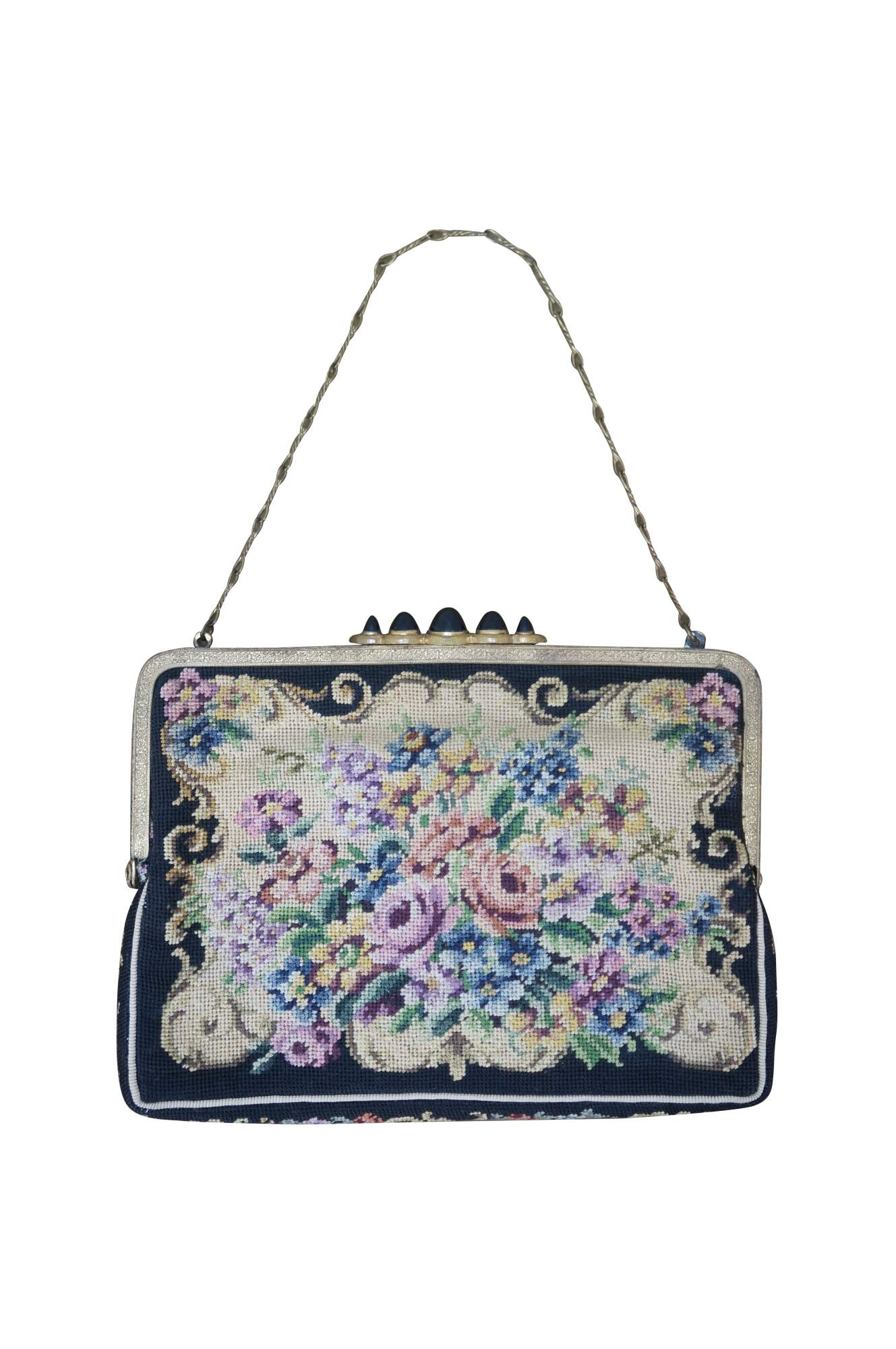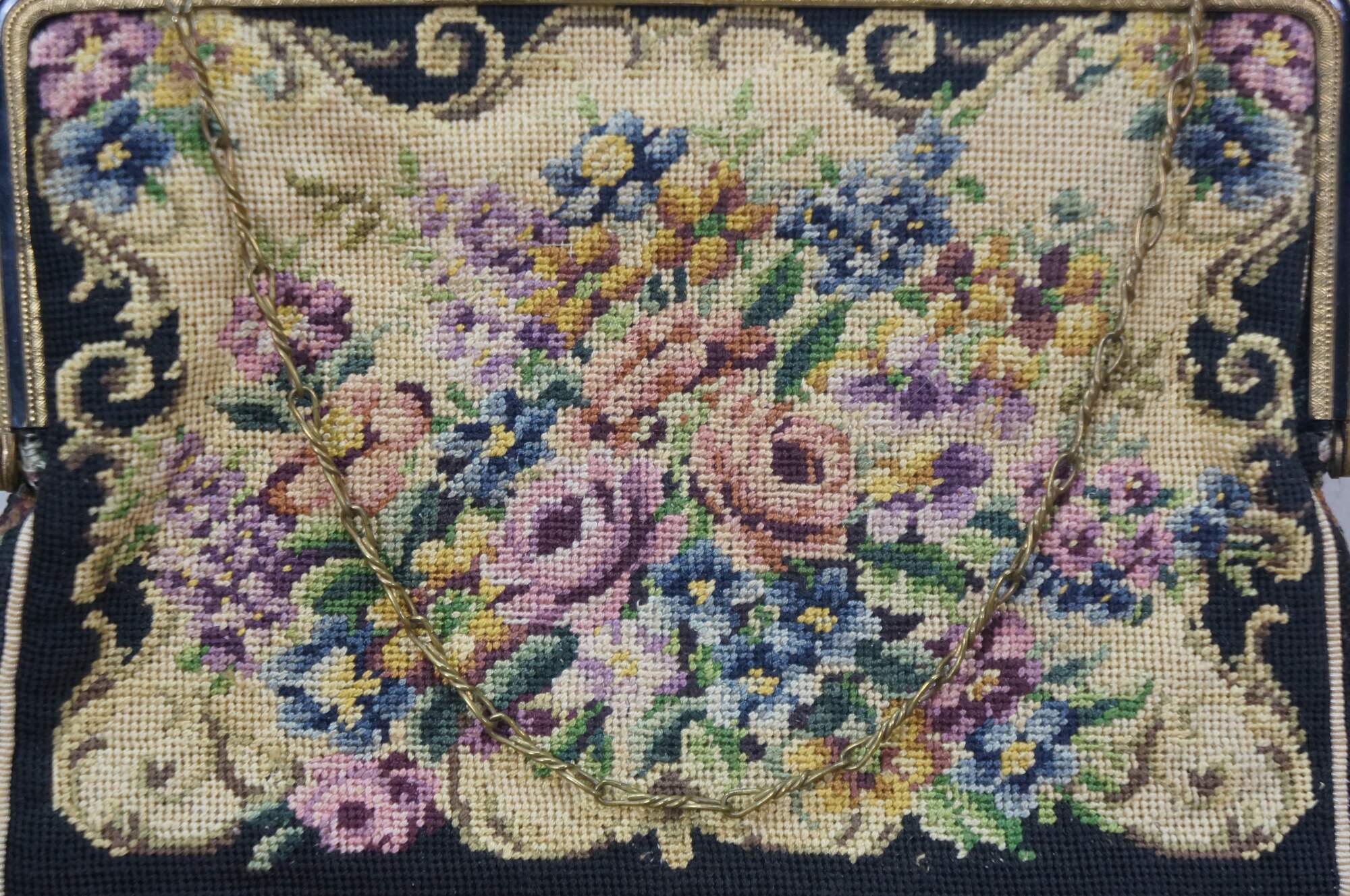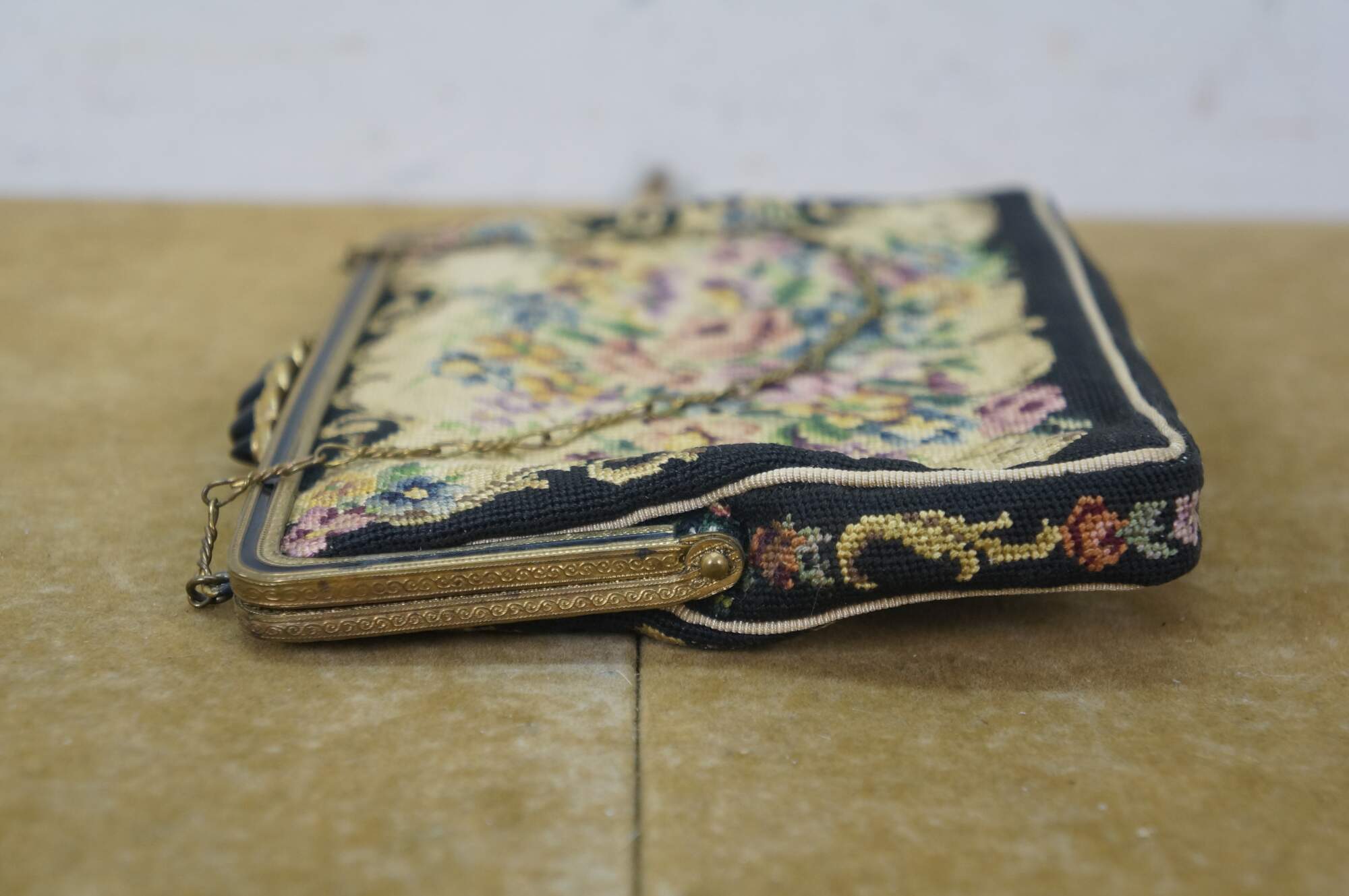 Mid Century Embroidered Floral Clutch Purse Evening Handbag 7"