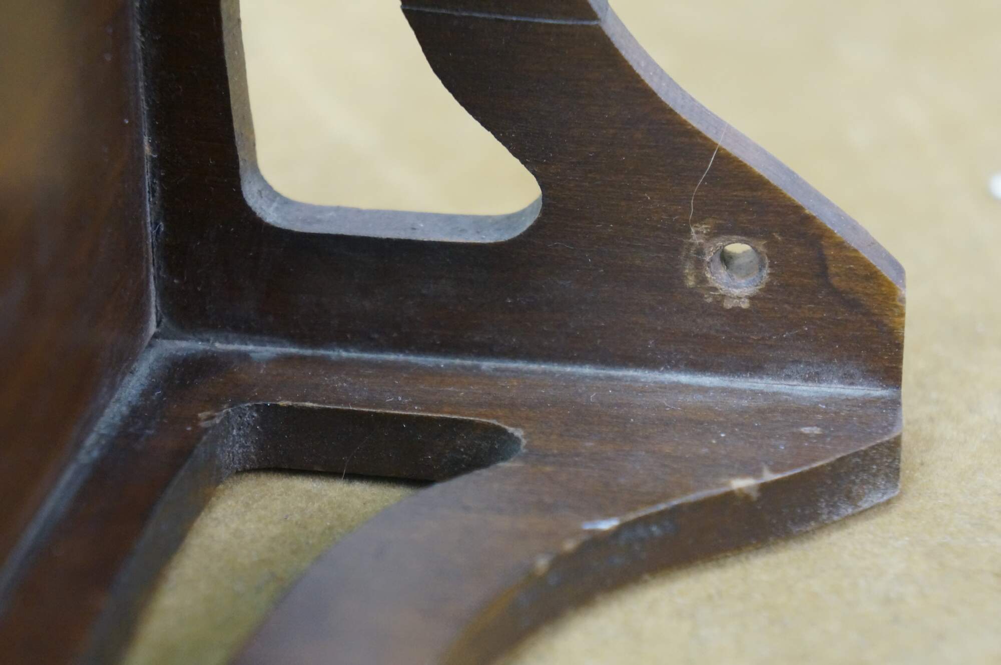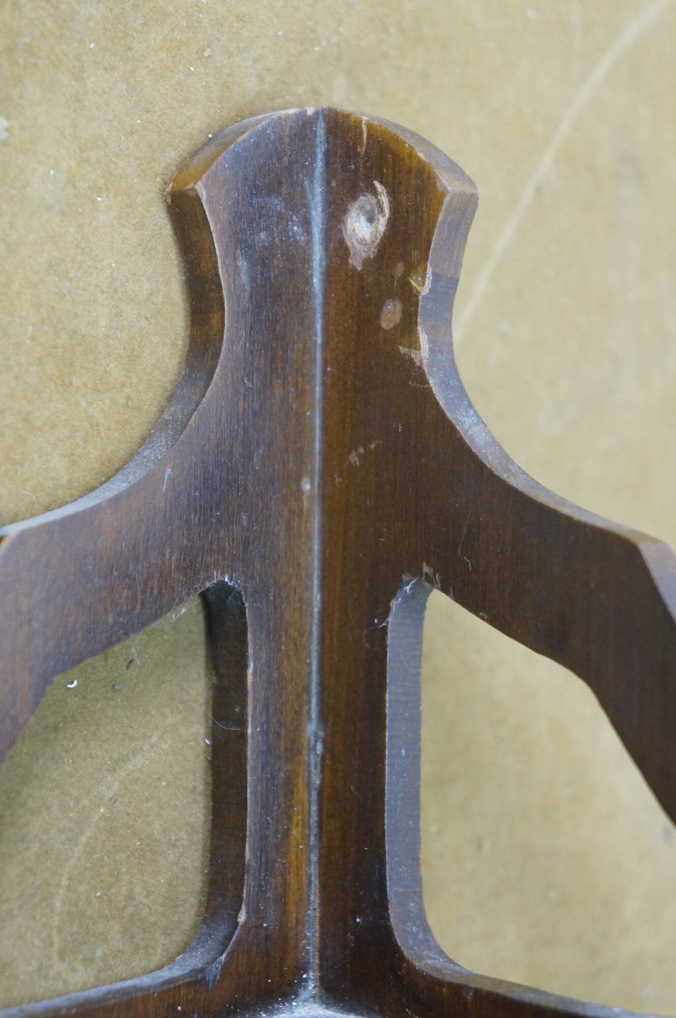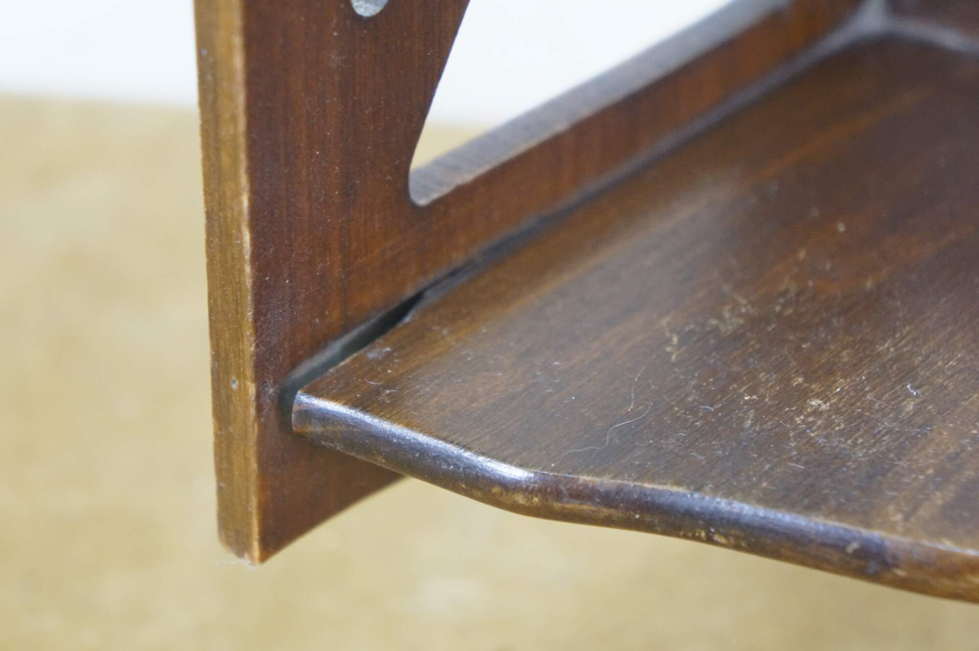 Vintage carved mahogany reticulated corner shelf featuring three tiers and fretwork accents.