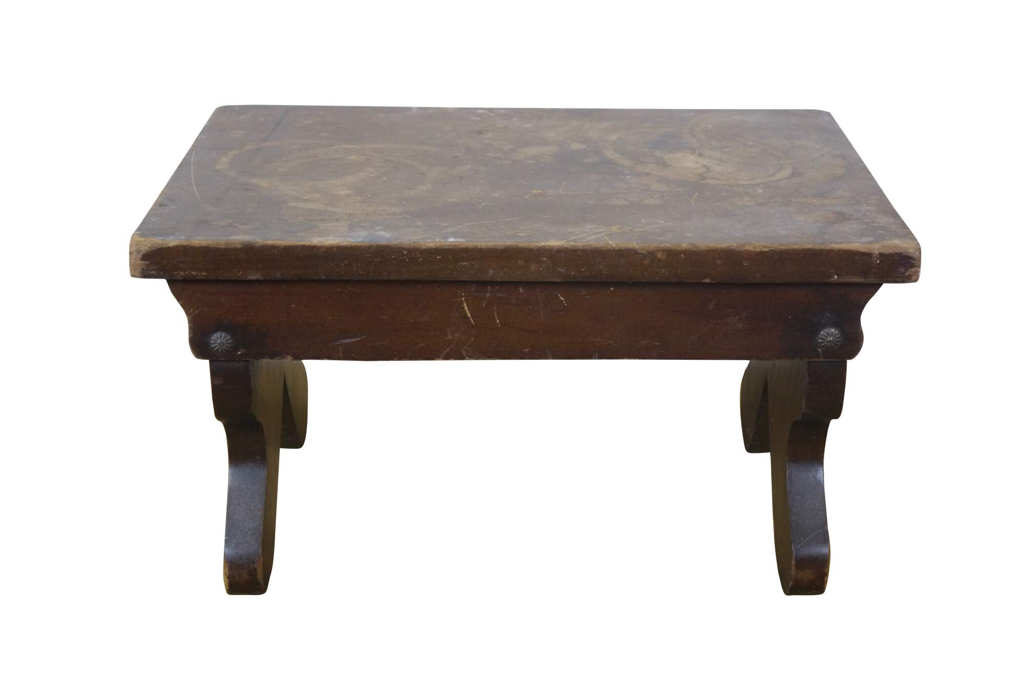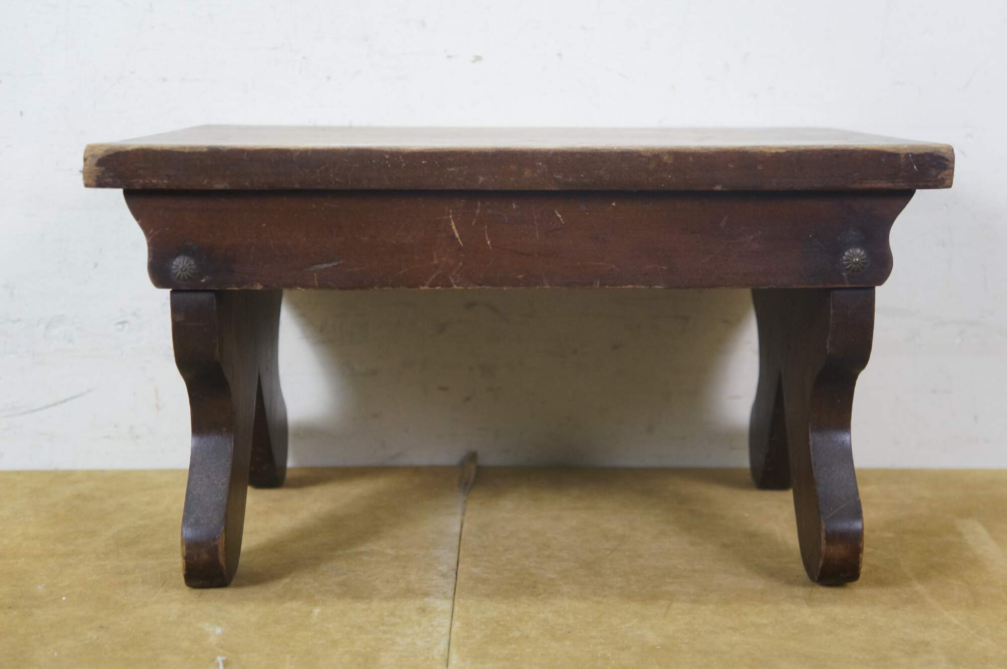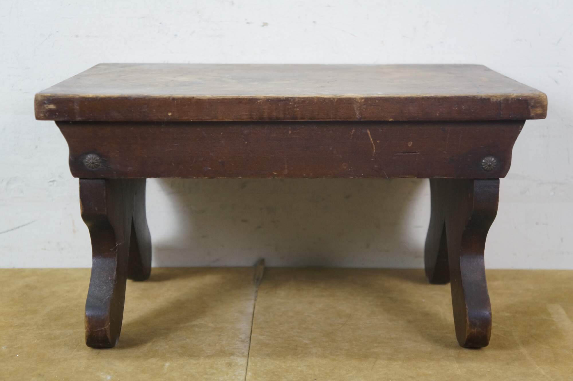 Antique Primitive Early American Oak Footstool Step Stool Rest Ottoman 16"