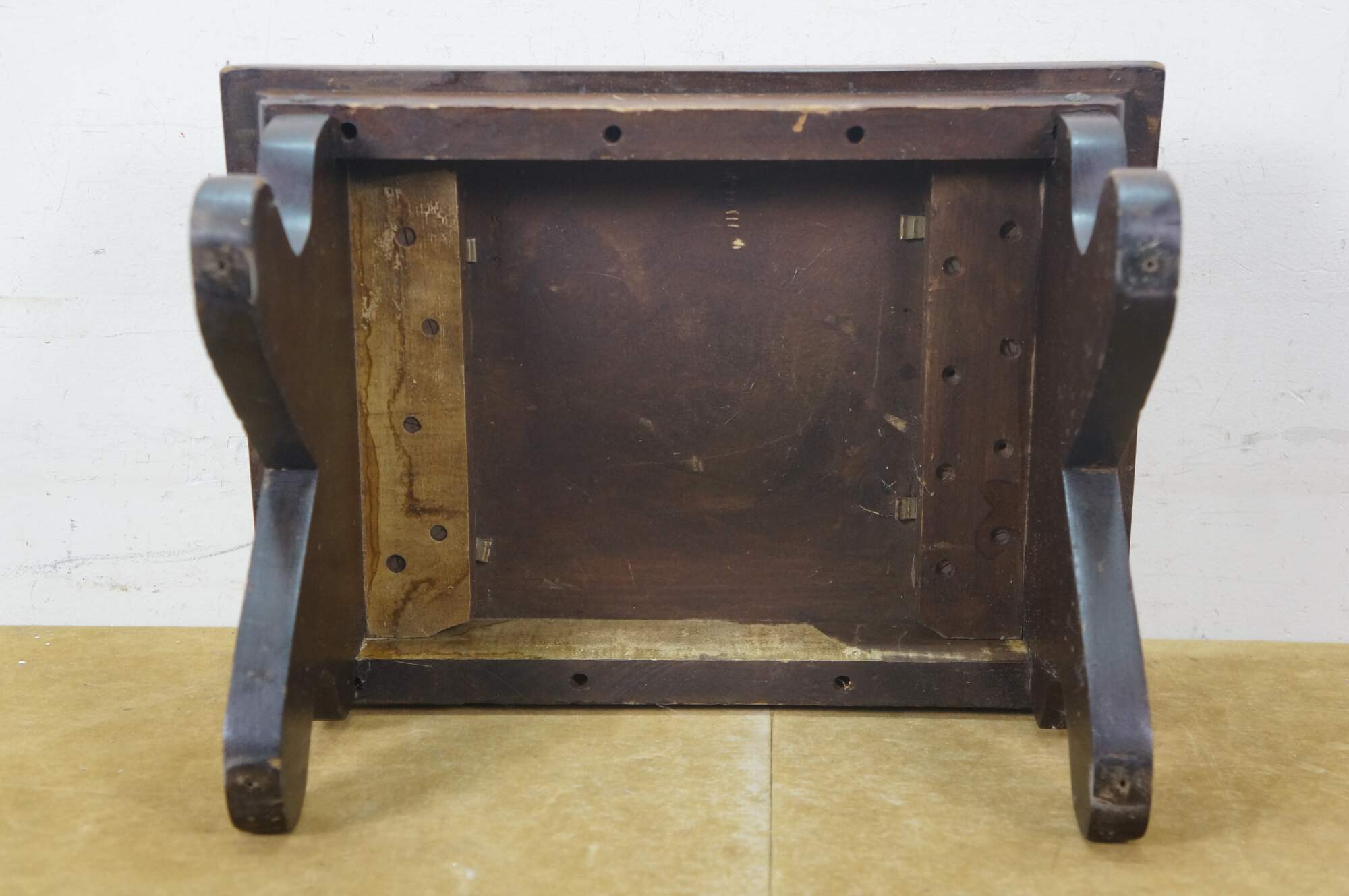 Antique primitive early American oak footstool / foot rest / step stool / ottoman.