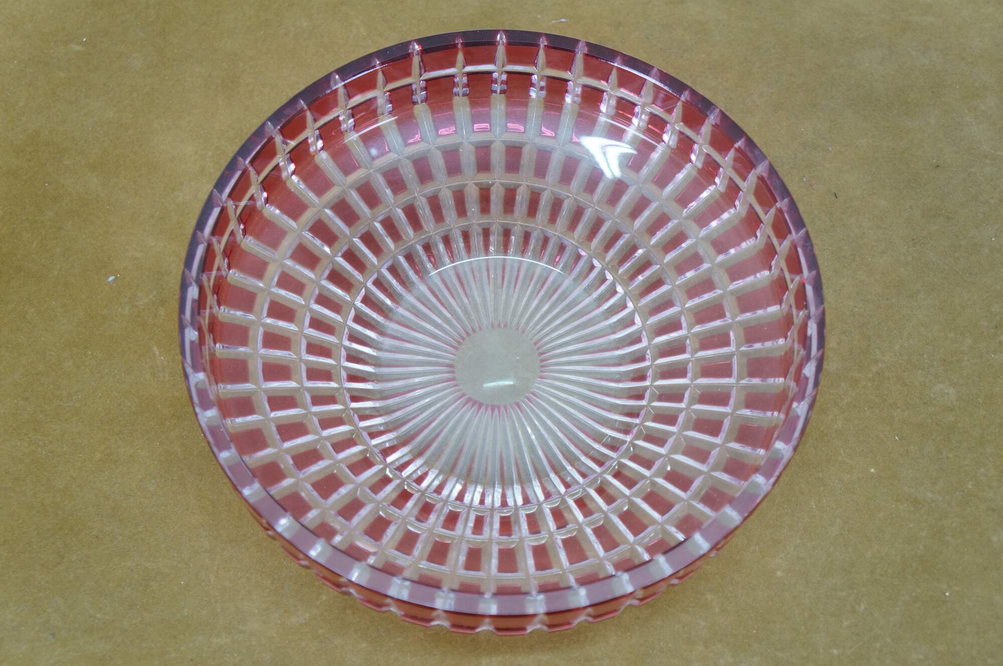 Antique American brilliant period cut glass ruby red / cranberry cut-to-clear Renaissance bowl or compote.