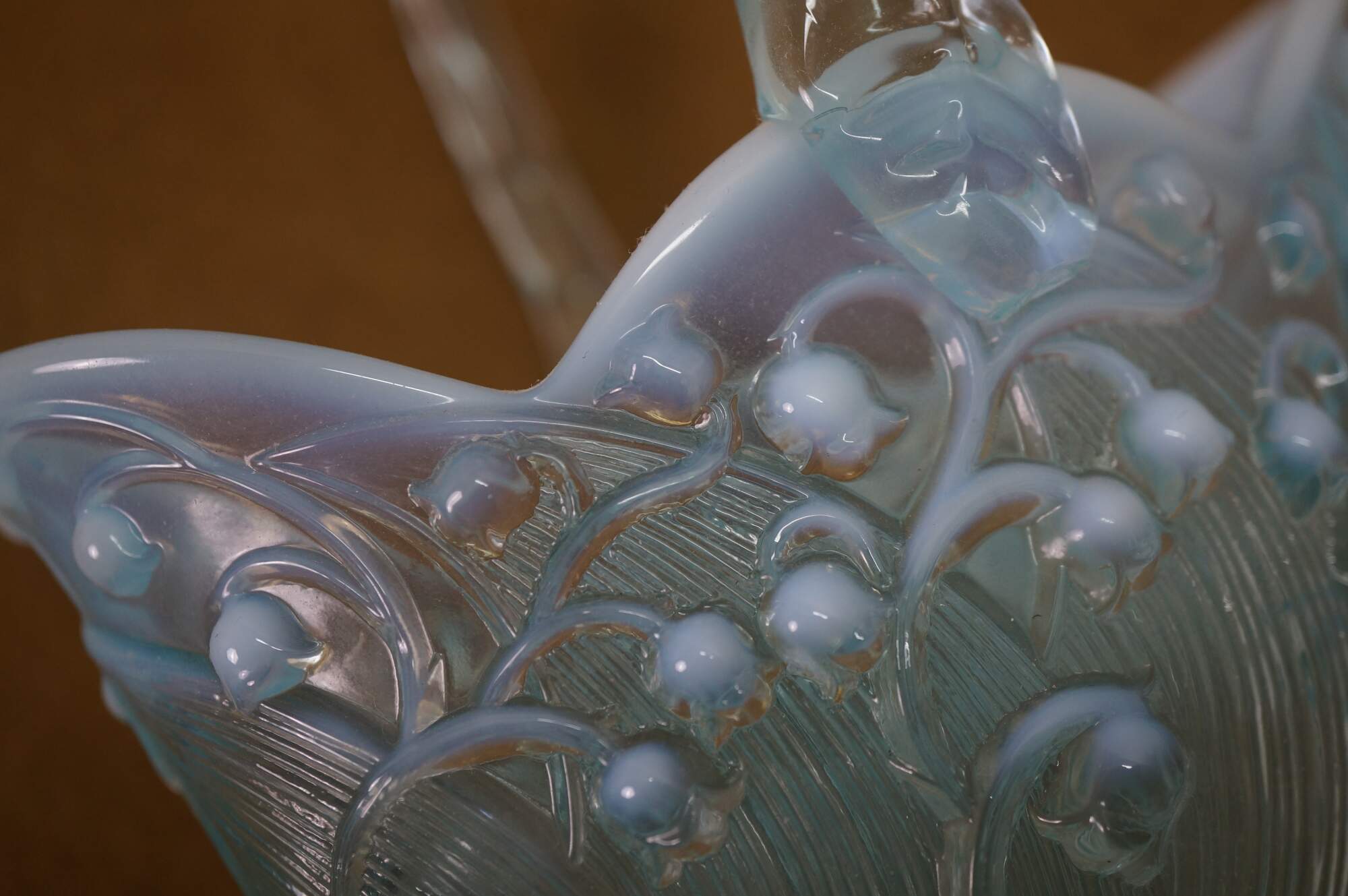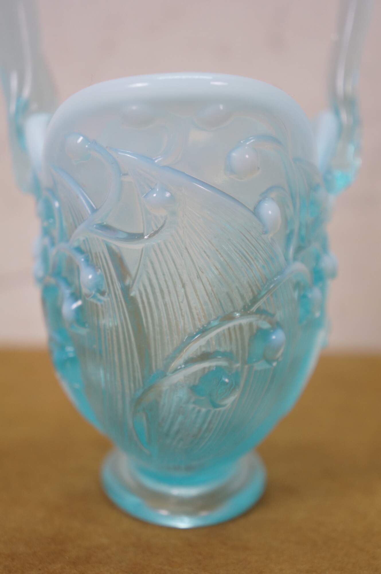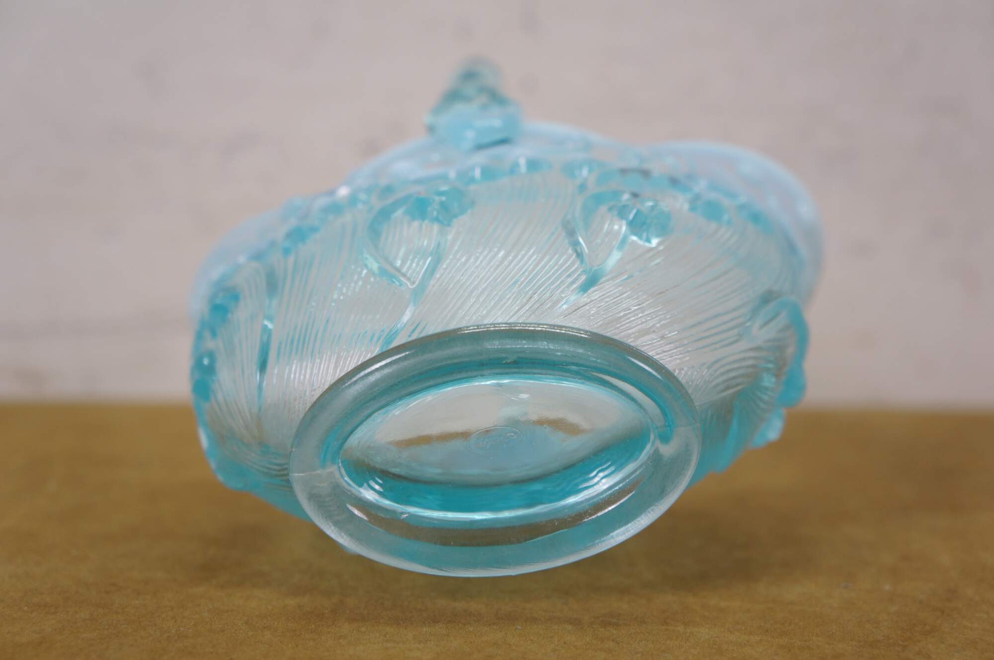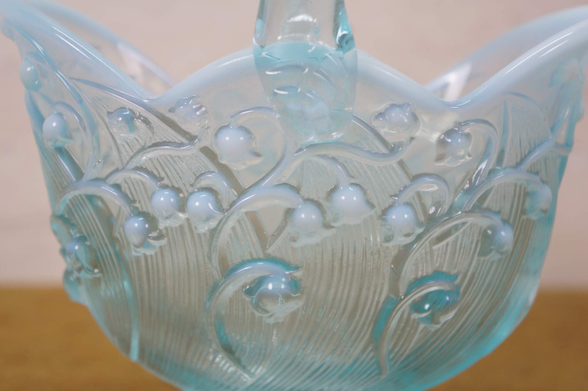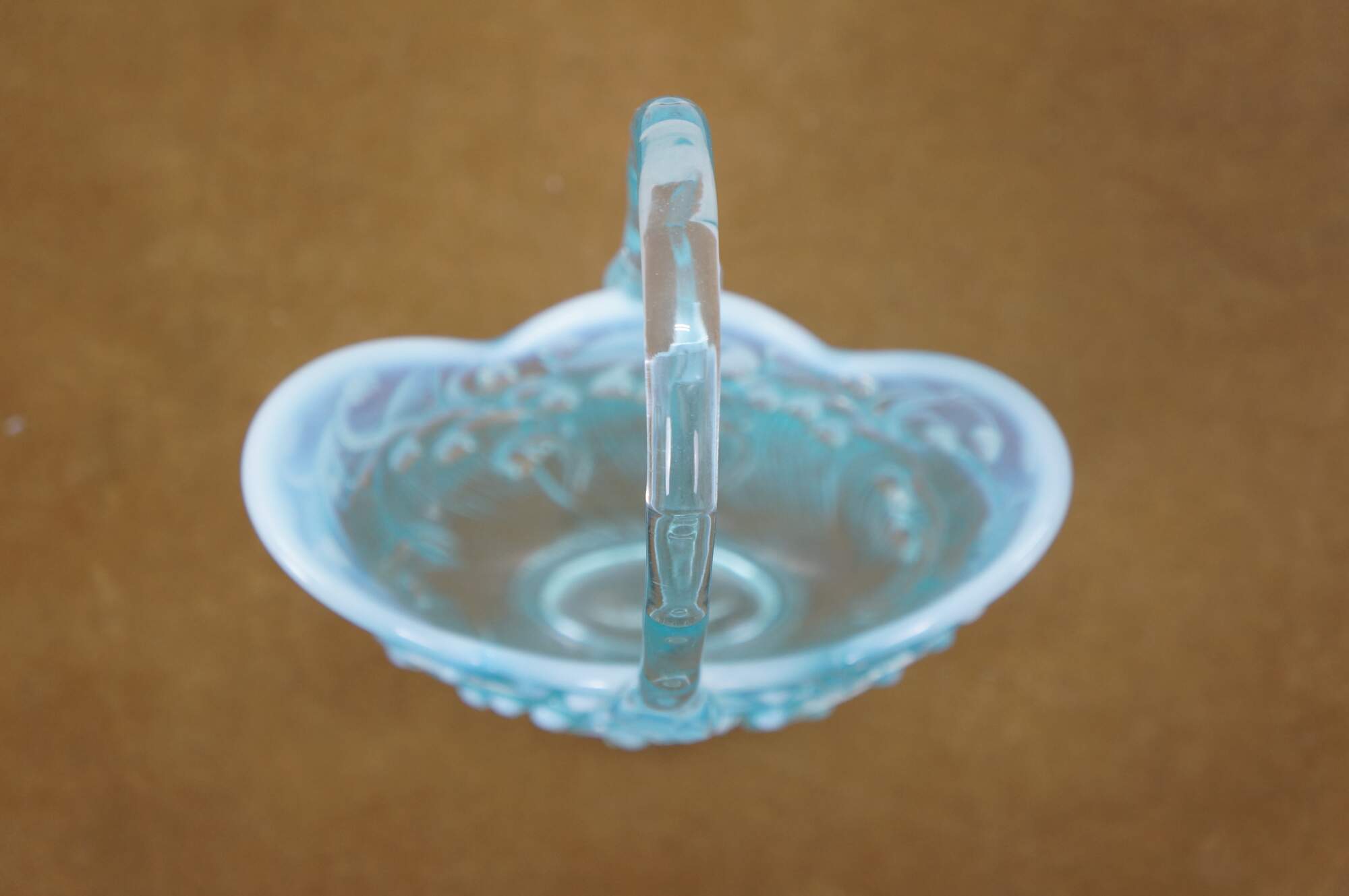 Vintage Fenton aqua blue opalescent Lily of the Valley compote basket bowl.