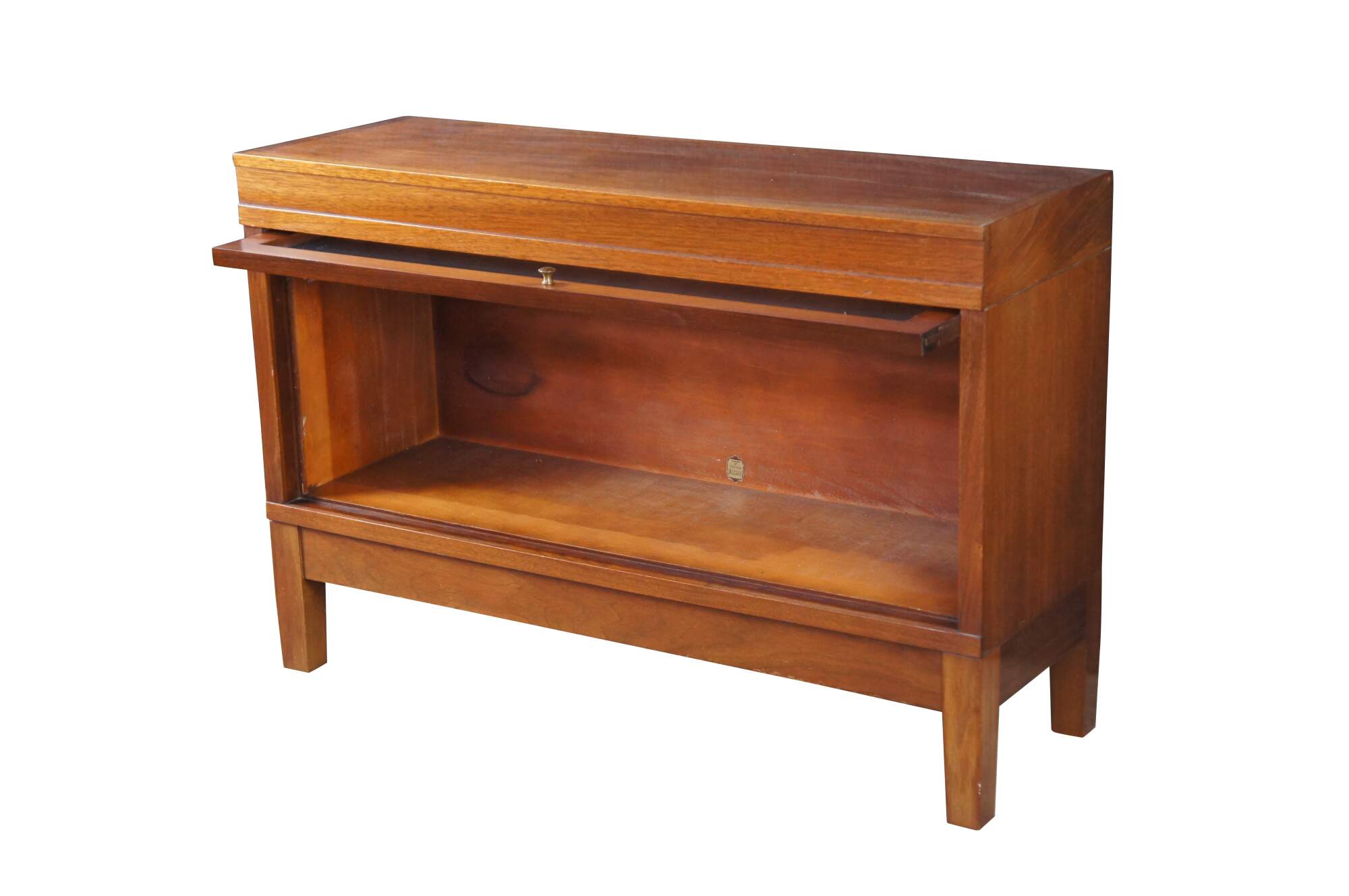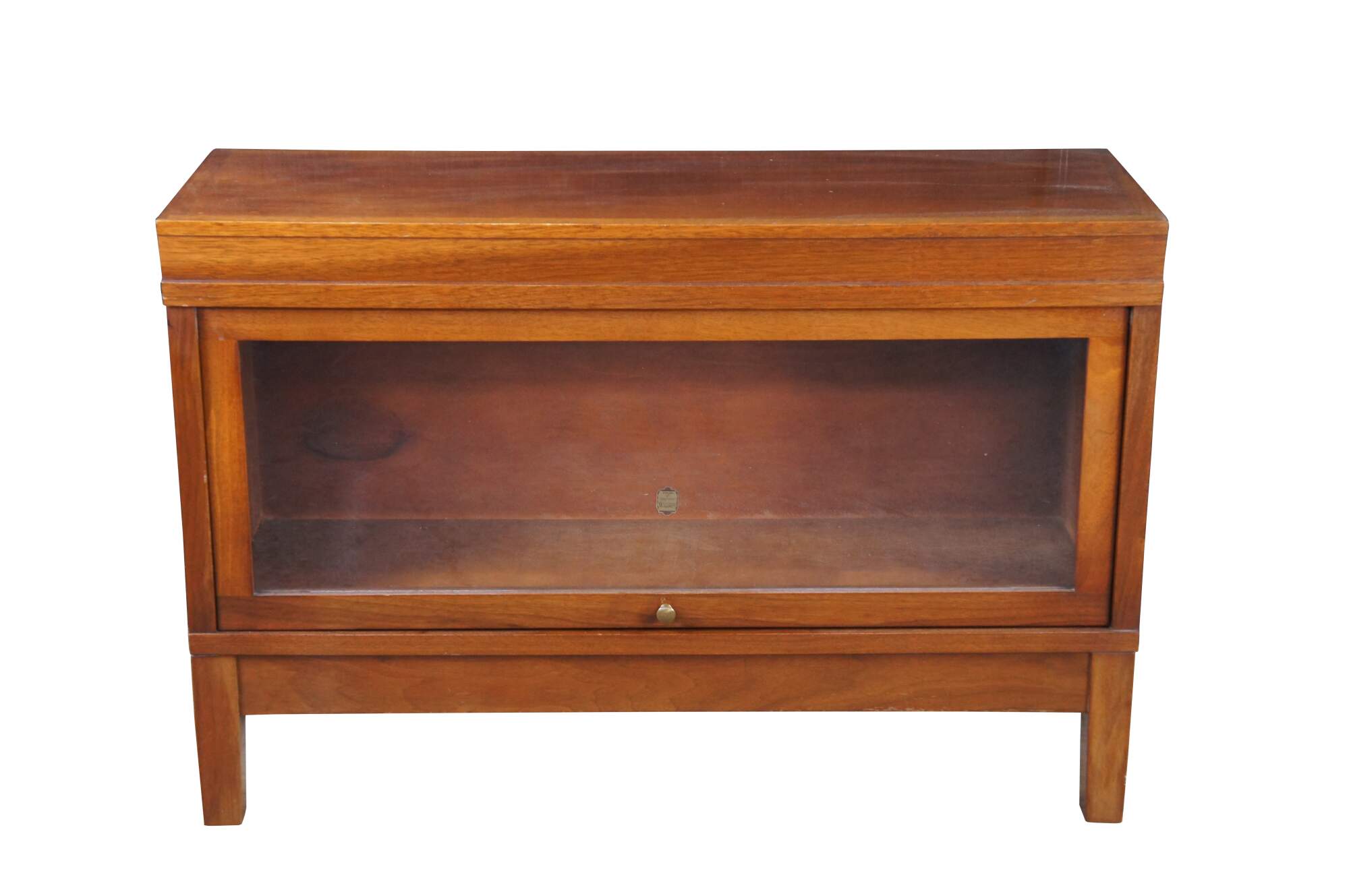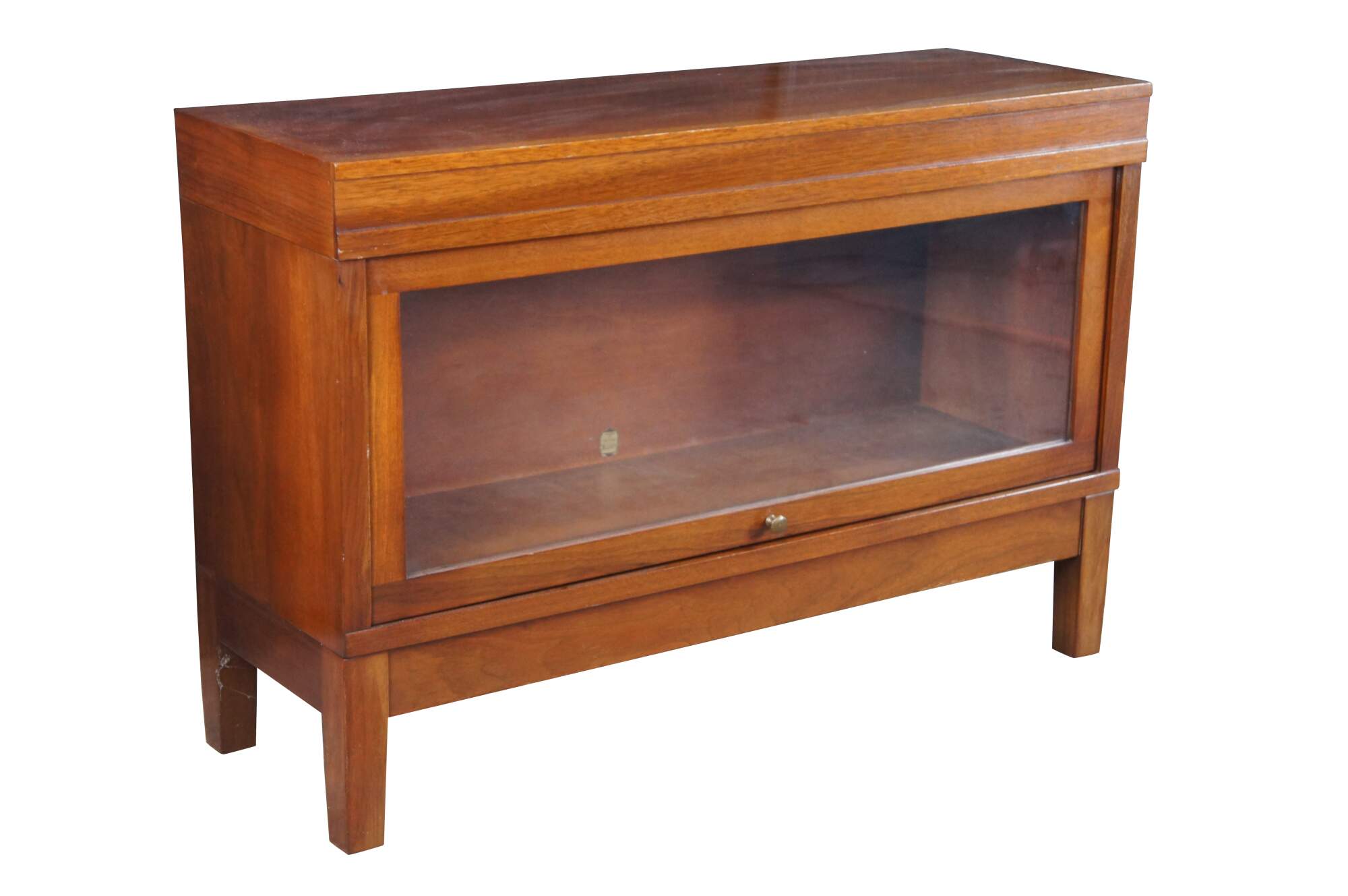Antique Globe Wernicke American Walnut Barrister Bookcase. Catalog no 811, Finish 4098. Features a glass front over straight leg base. Marked along inside.