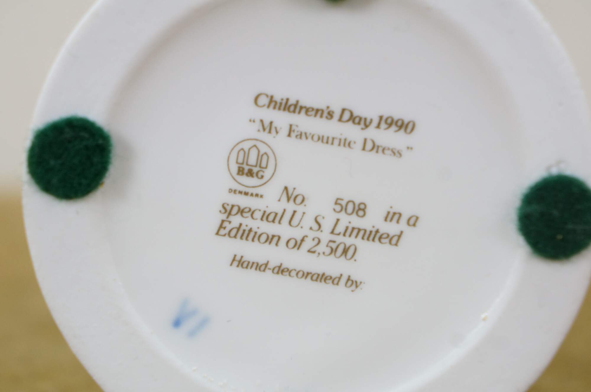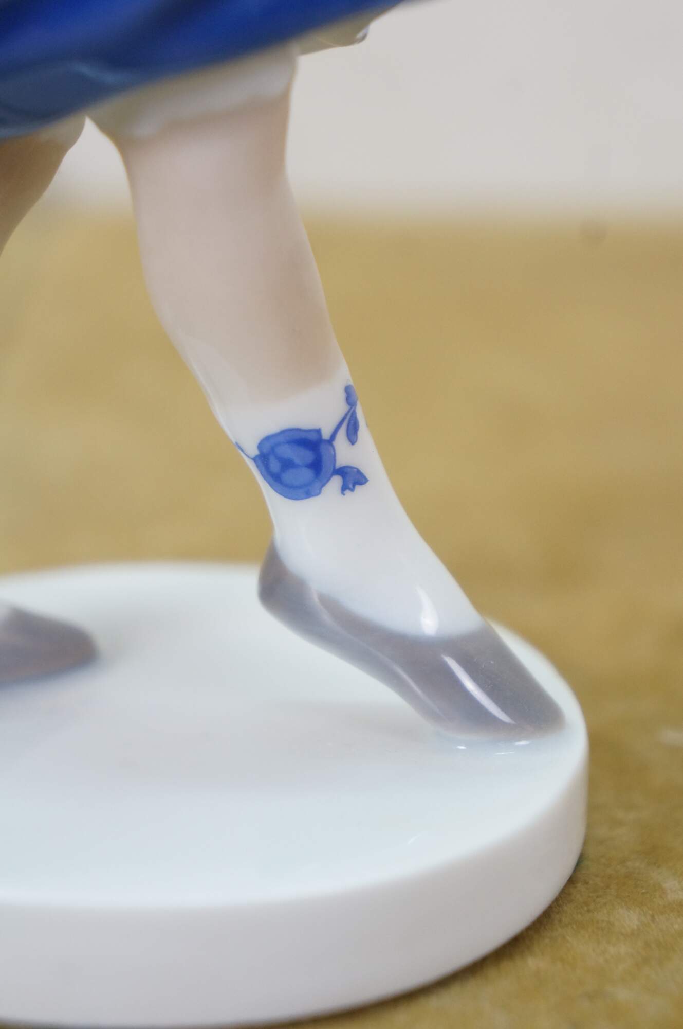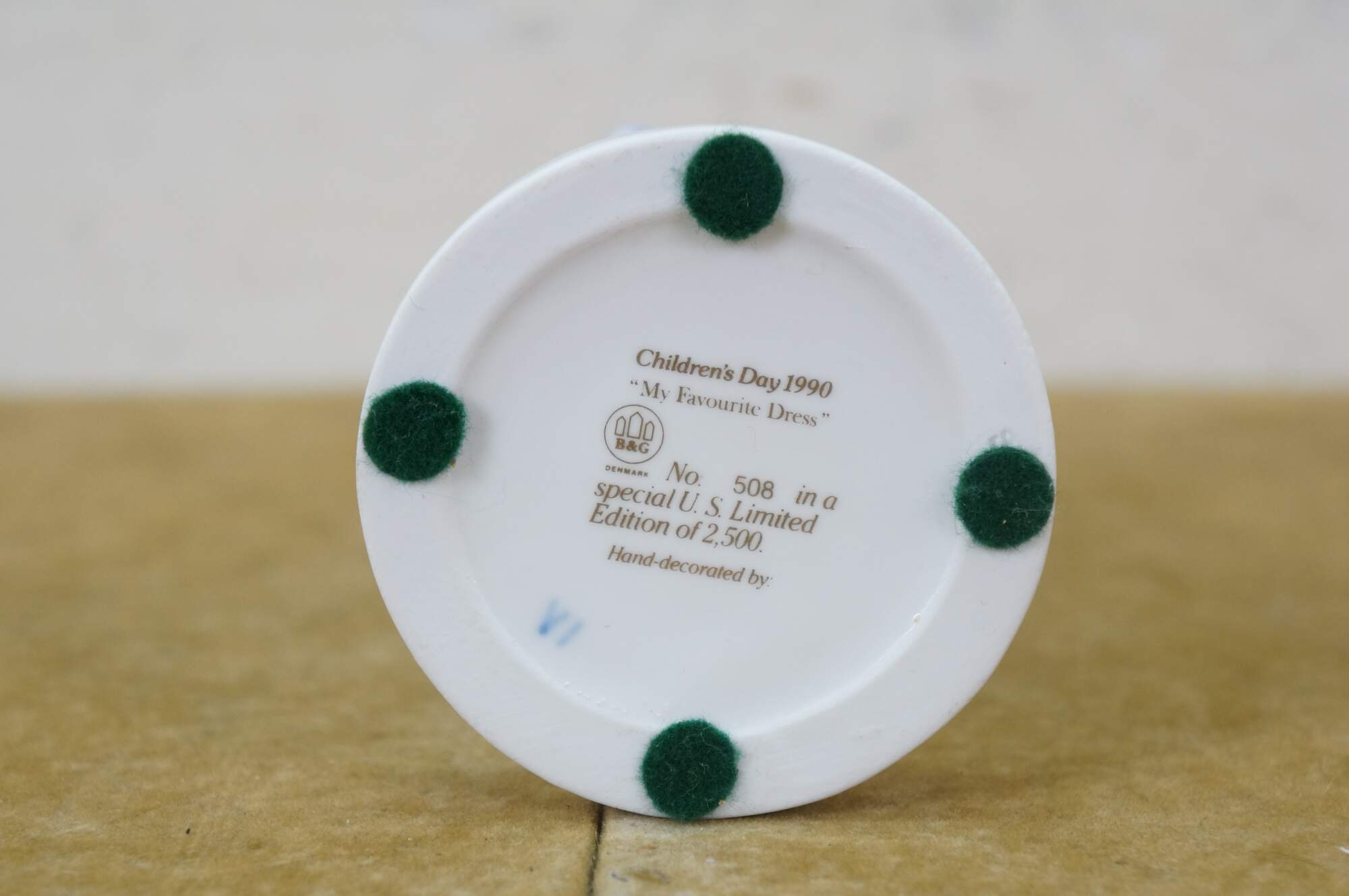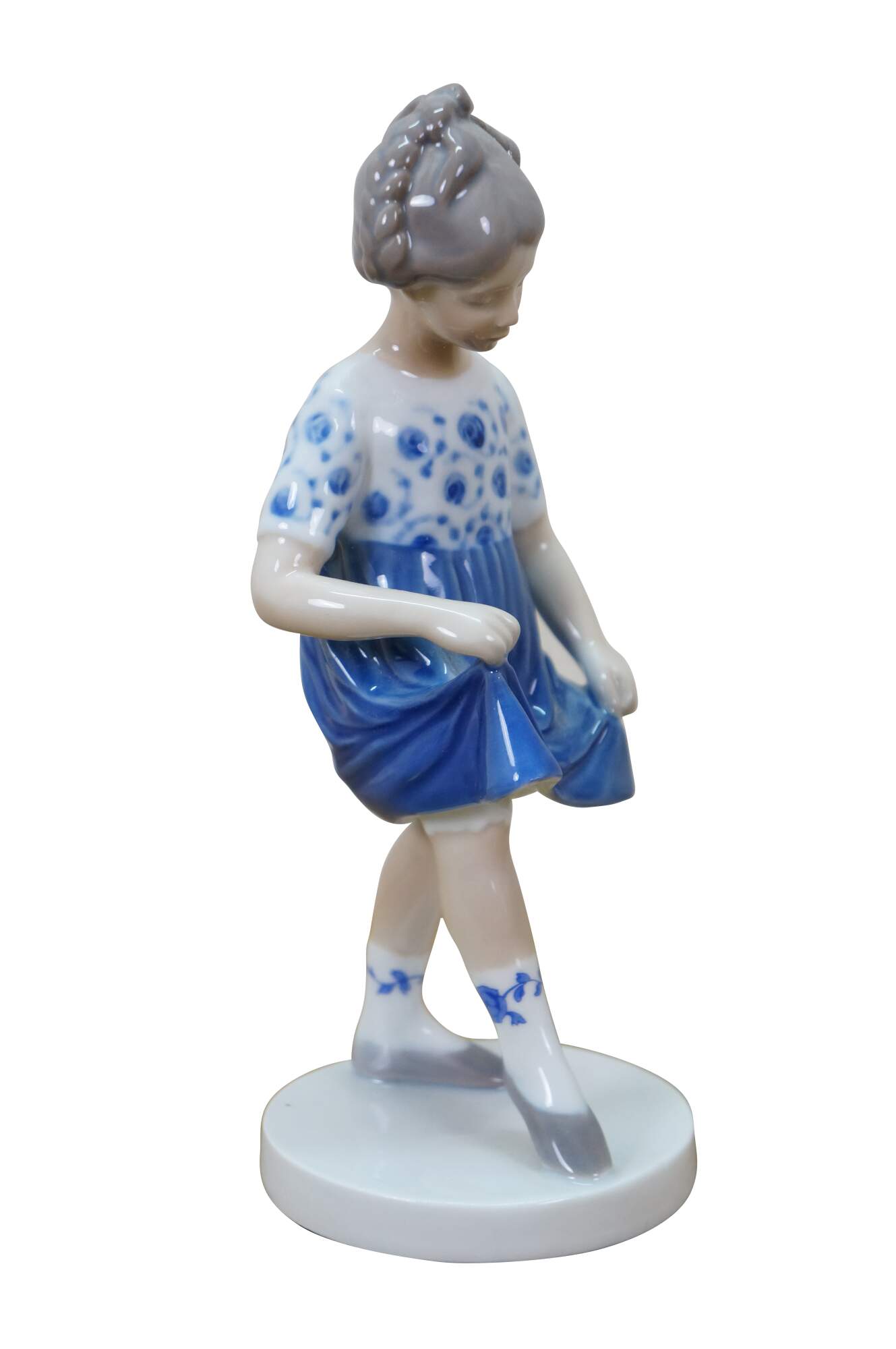 Rare 1990 Bing & Grøndahl porcelain figurine titled My Favourite Dress aka Girl dancing in Blue Shirt or Else in a Blue Dress, model number 2586. The figurine was designed by artist Ingeborg Plockross-Irminger. 508 of 2500.