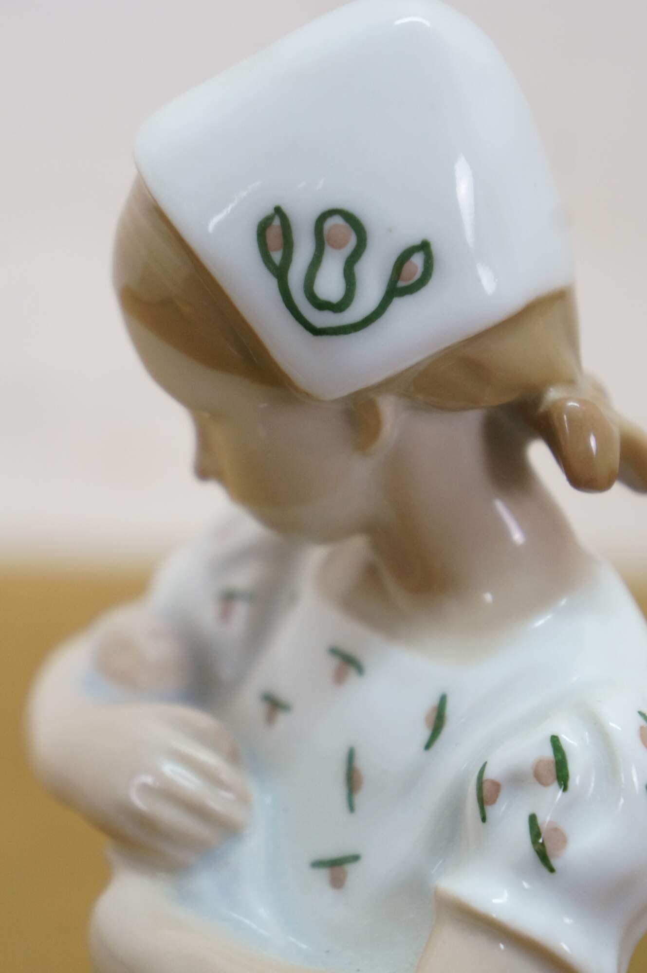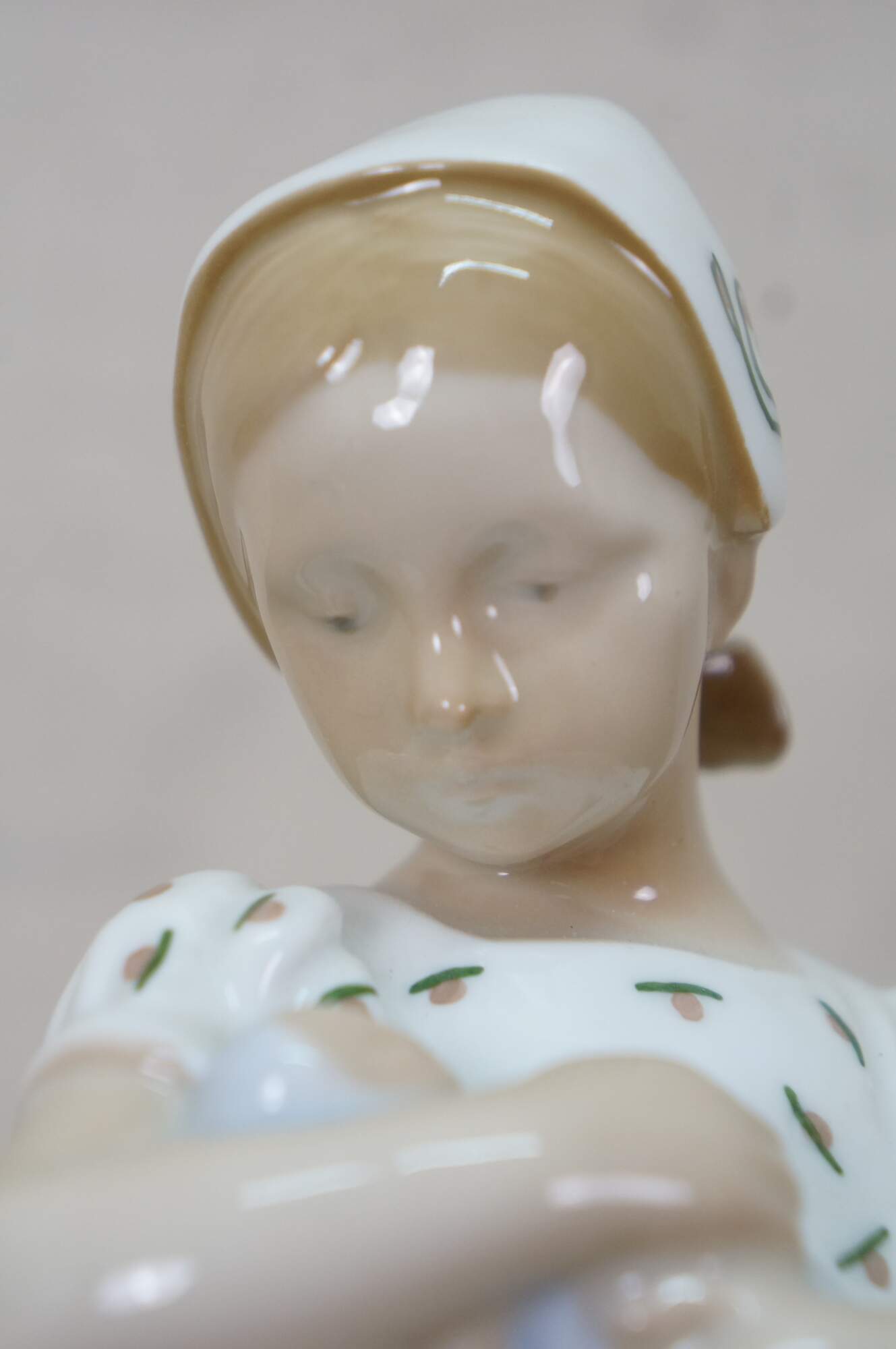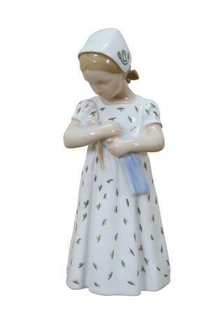 1970-1982 Bing & Grondahl porcelain figurine titled Mary with Doll, model 1721. The figurine was designed by Ingeborg Plockross Irminger.