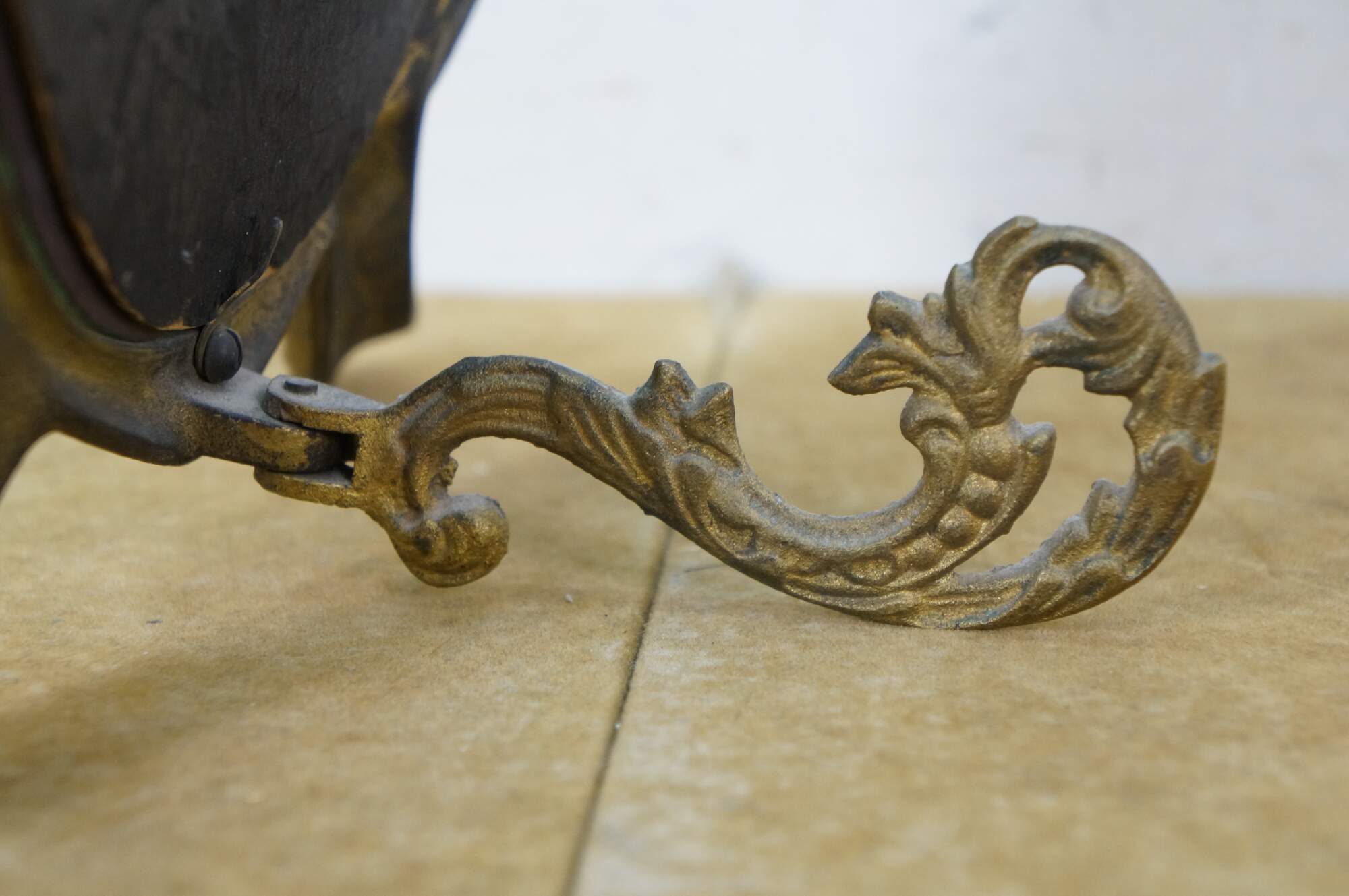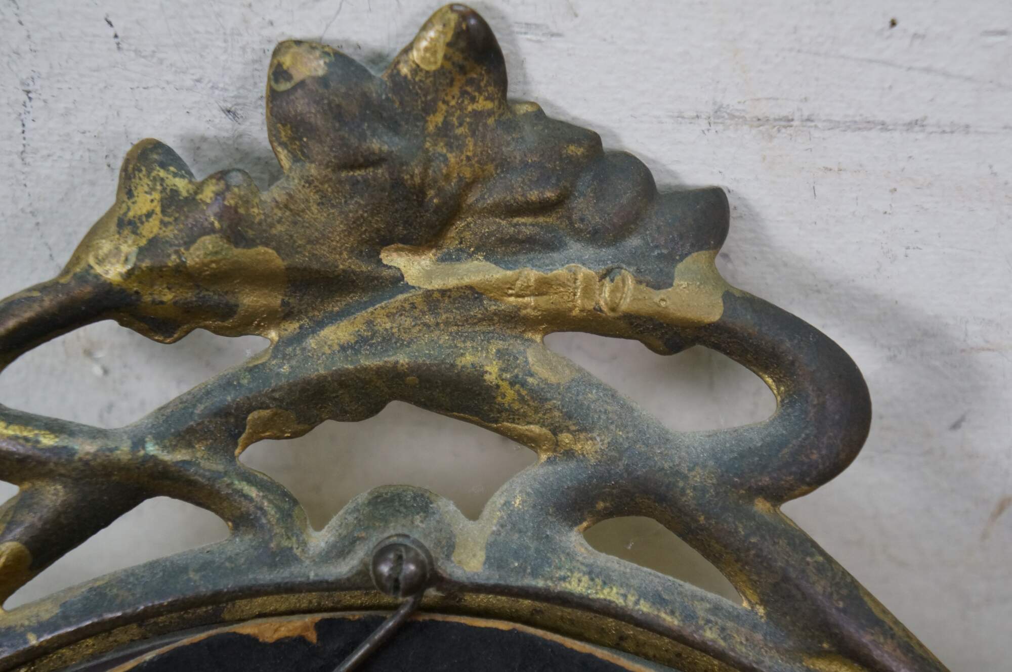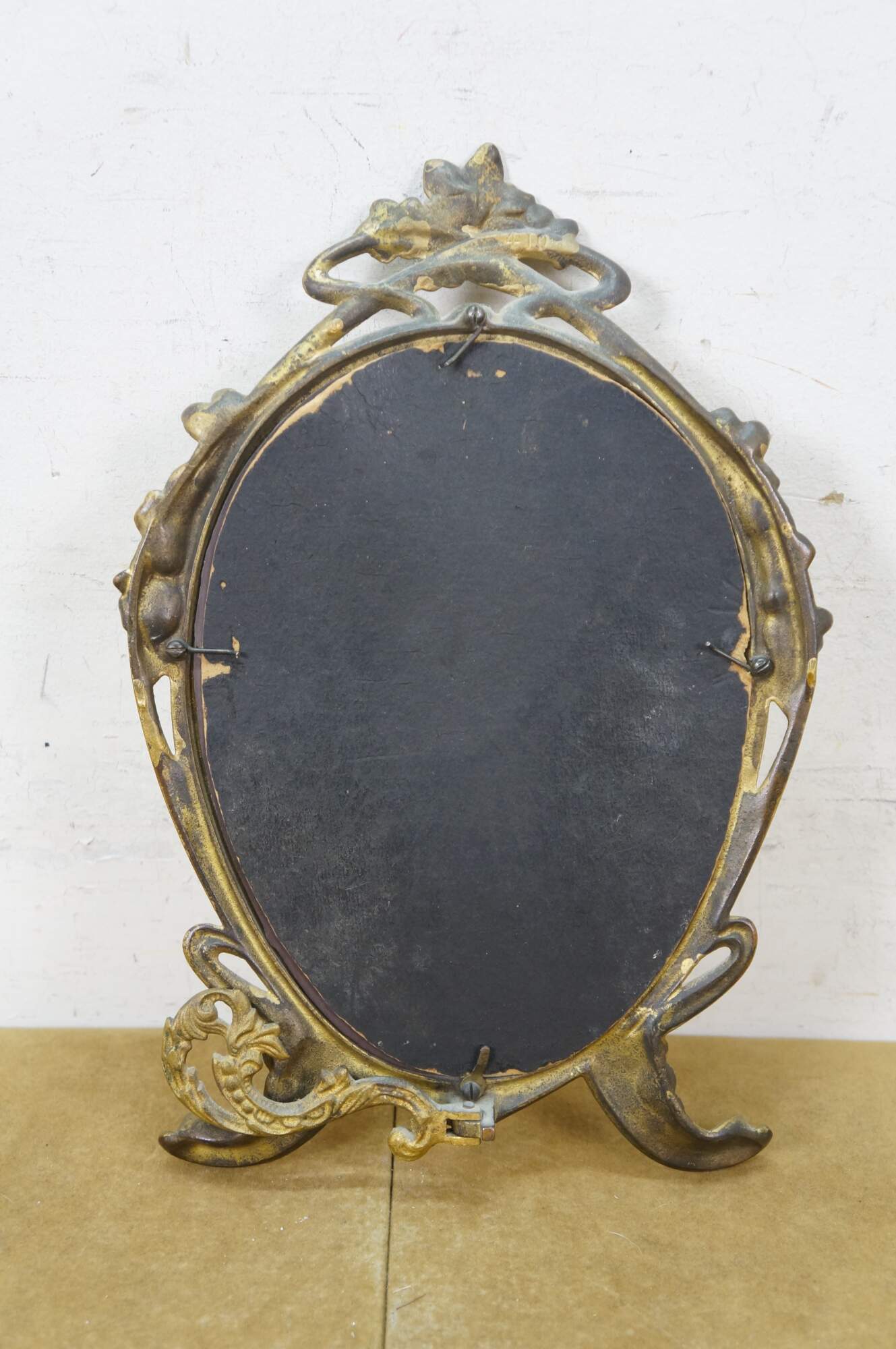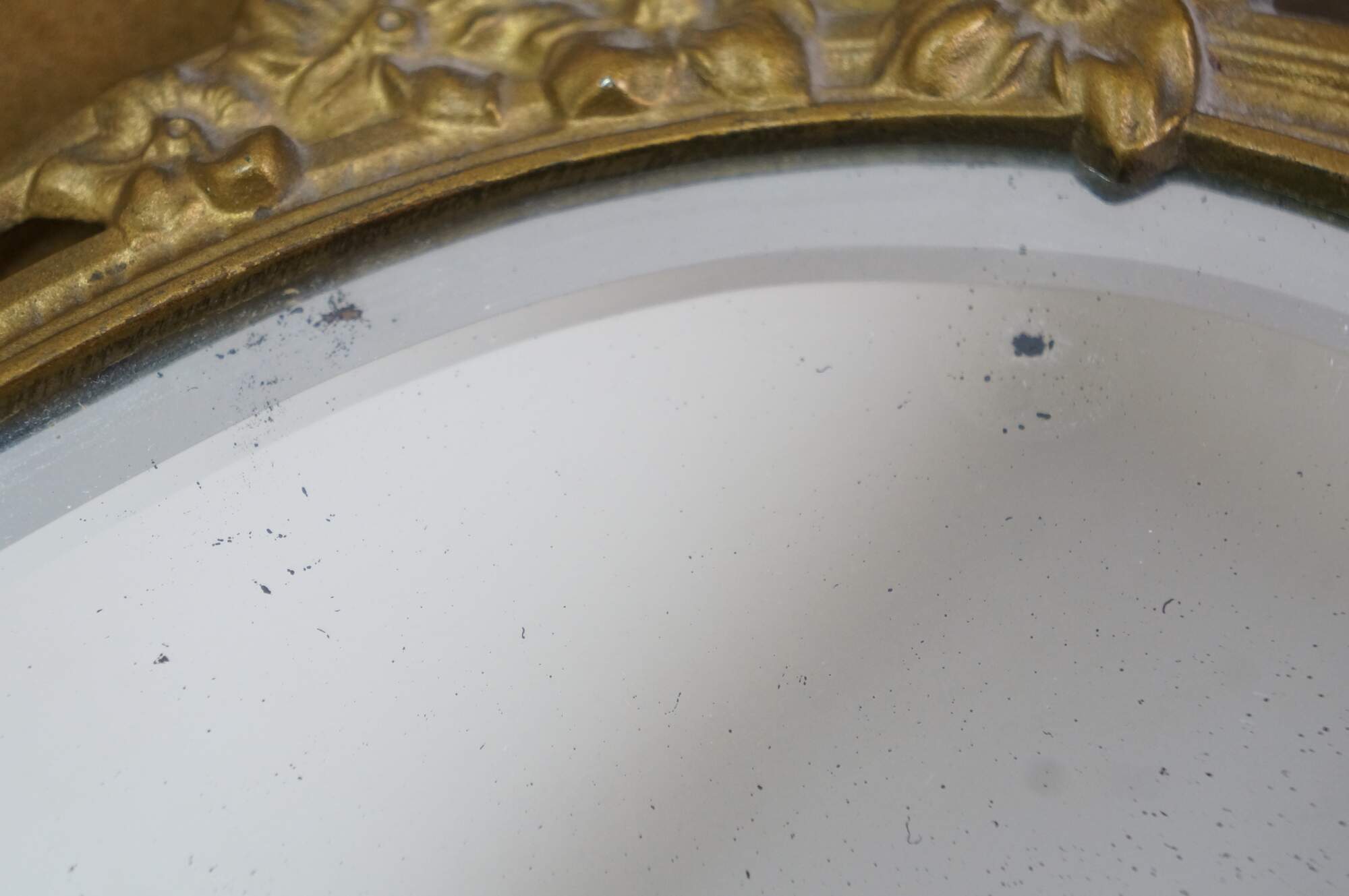 Antique Victorian Art Nouveau reticulated floral gilt brass beveled vanity mirror,