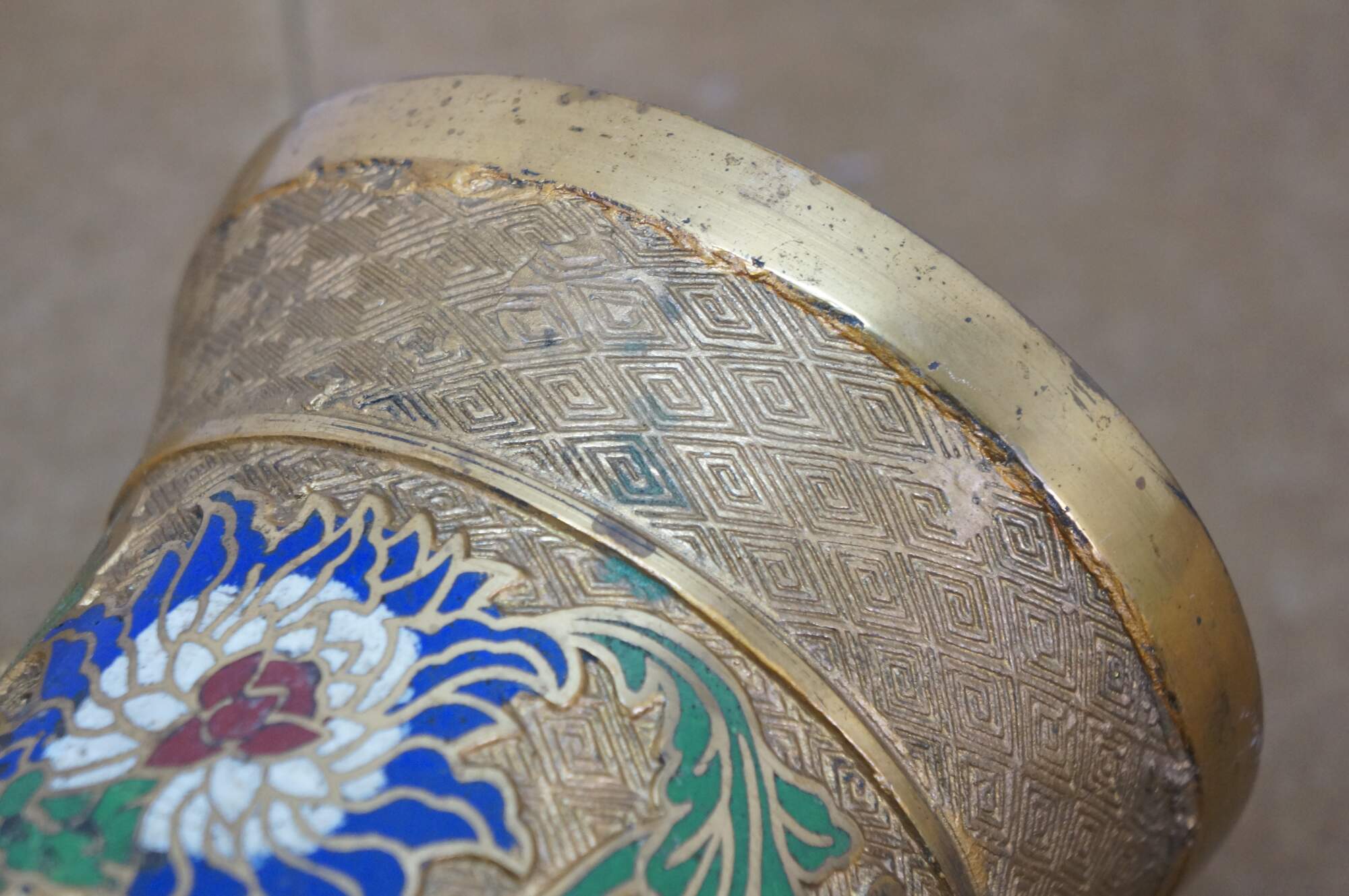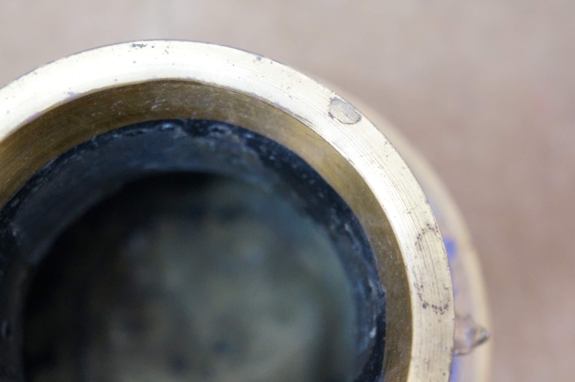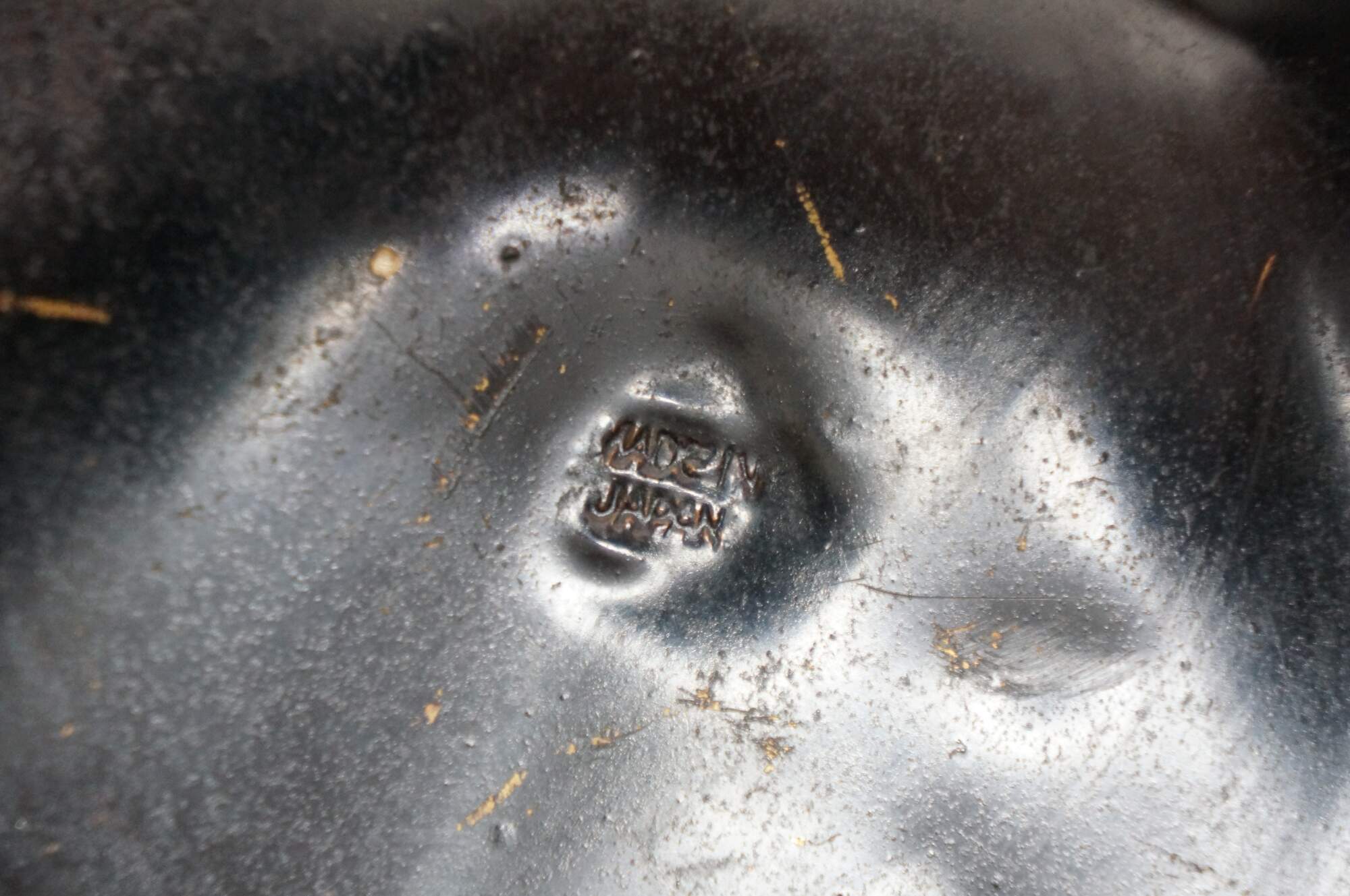 Wear from age, tarnish, dent.