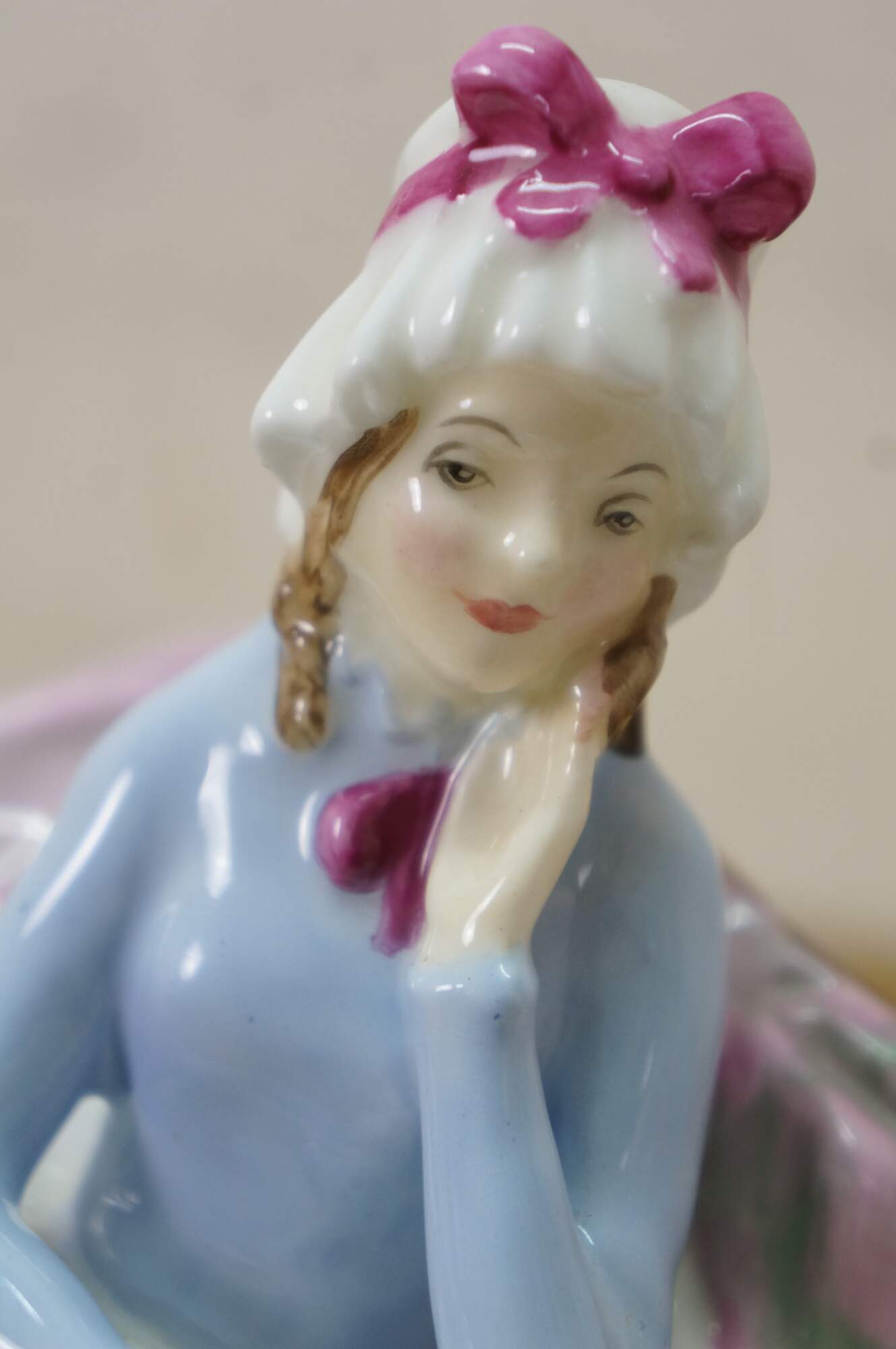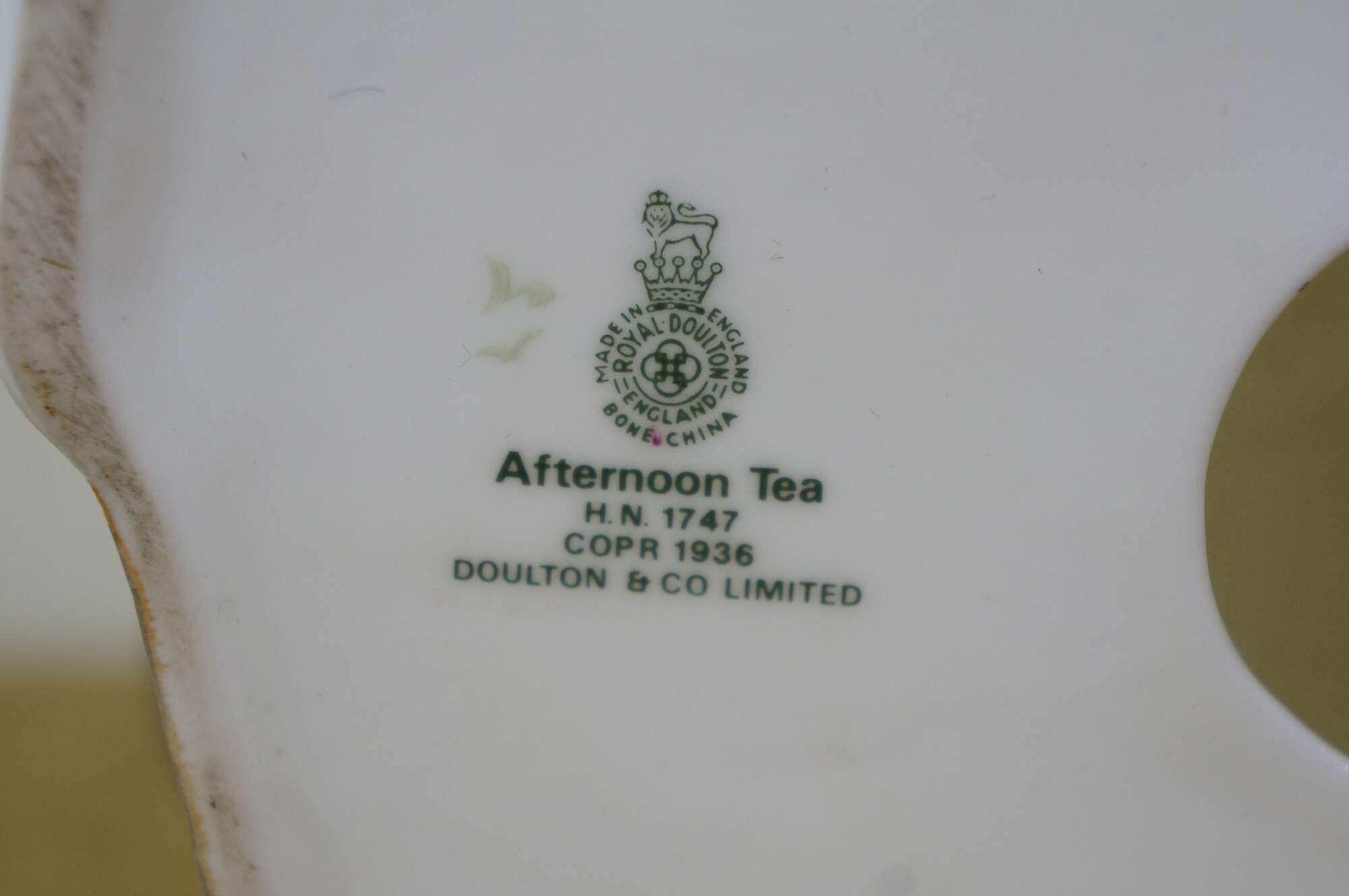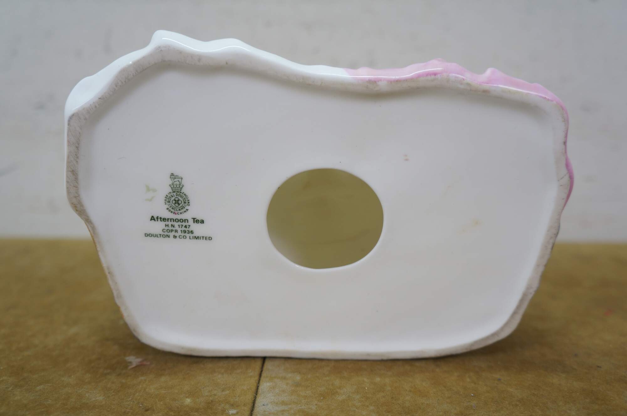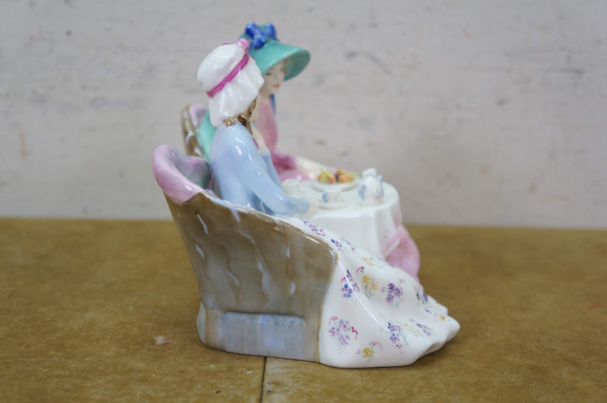Vintage Royal Doulton Afternoon Tea HN 1747 figurine designed by Peggy Railston. The figurine was issued from 1936 to 1982 and depicts two ladies in 19th-century clothing seated on a sofa, sharing tea and cakes.
