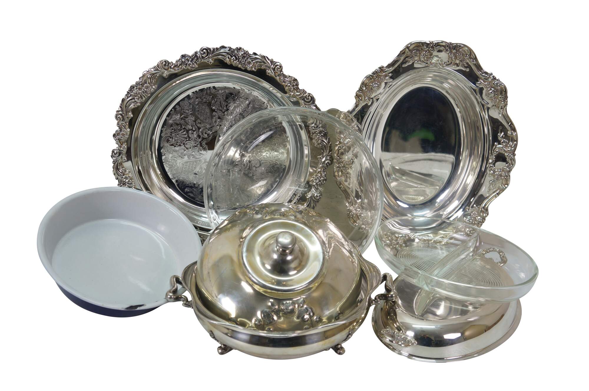3 Vintage Silverplate Casserole Vegetable Serving Tureens Lidded Dishes w Inserts