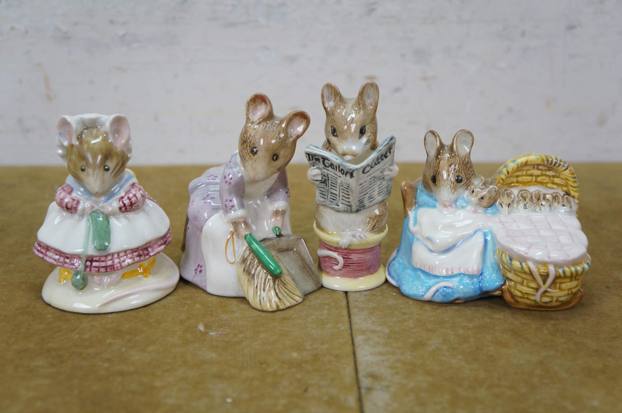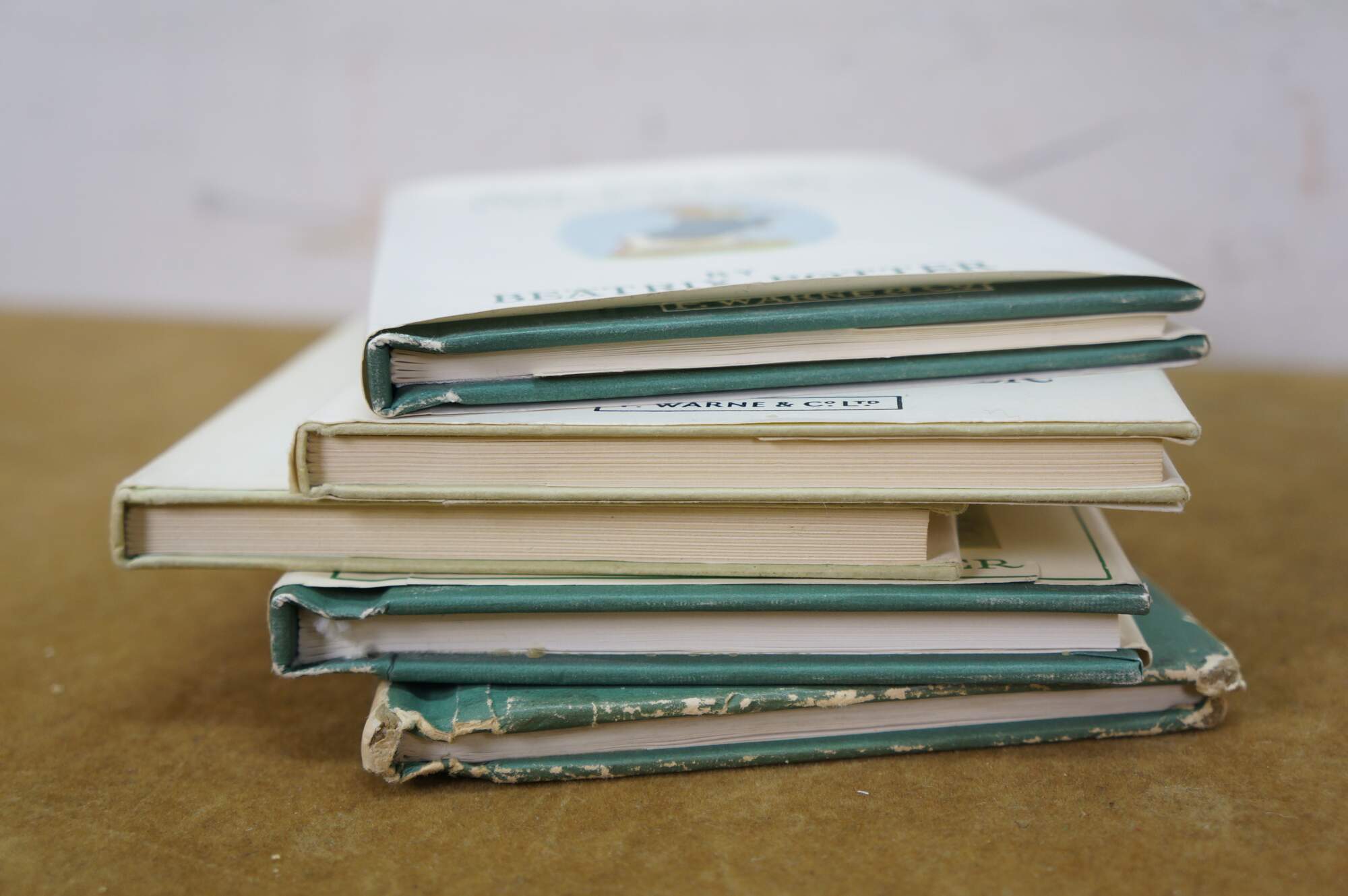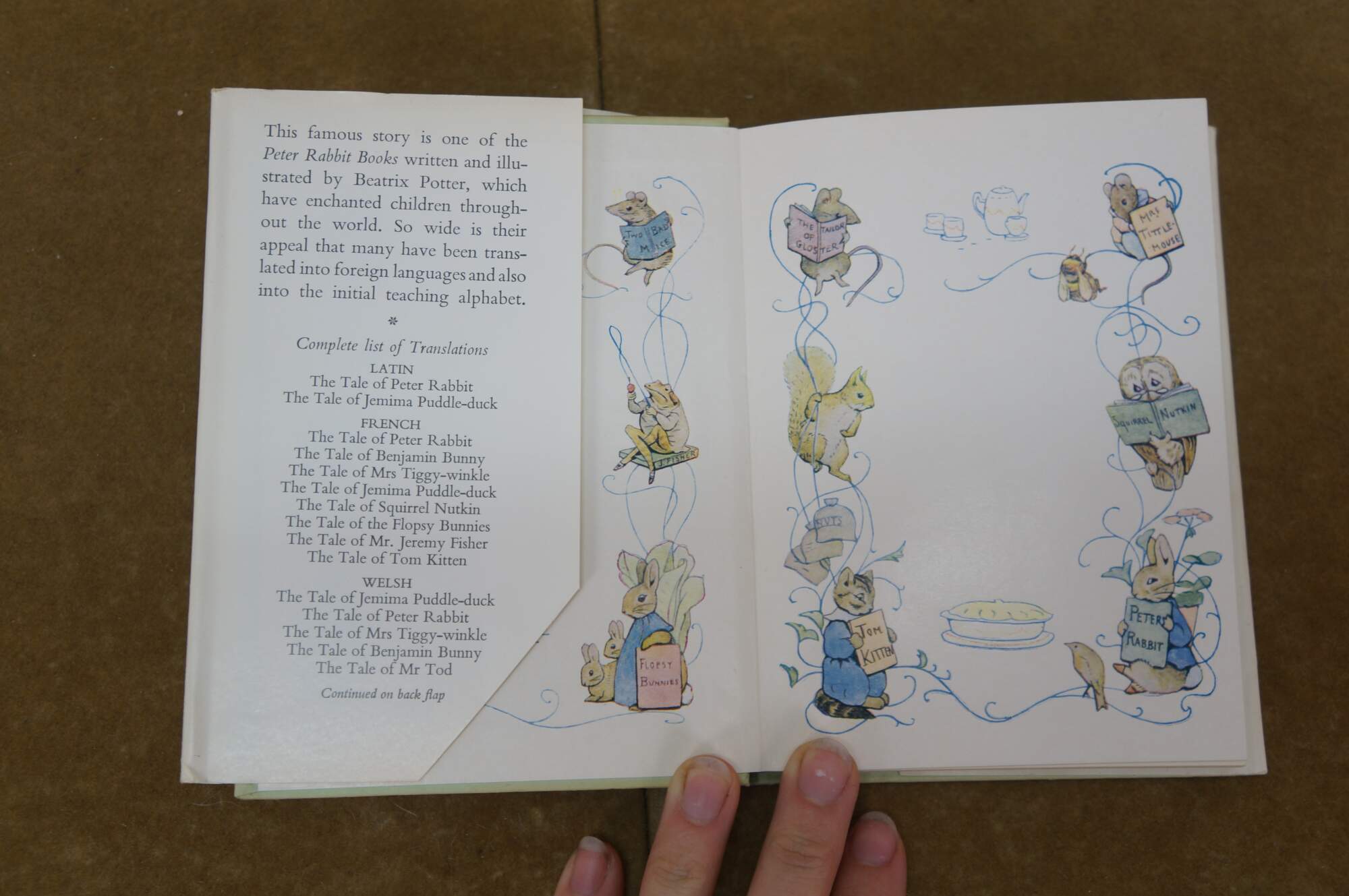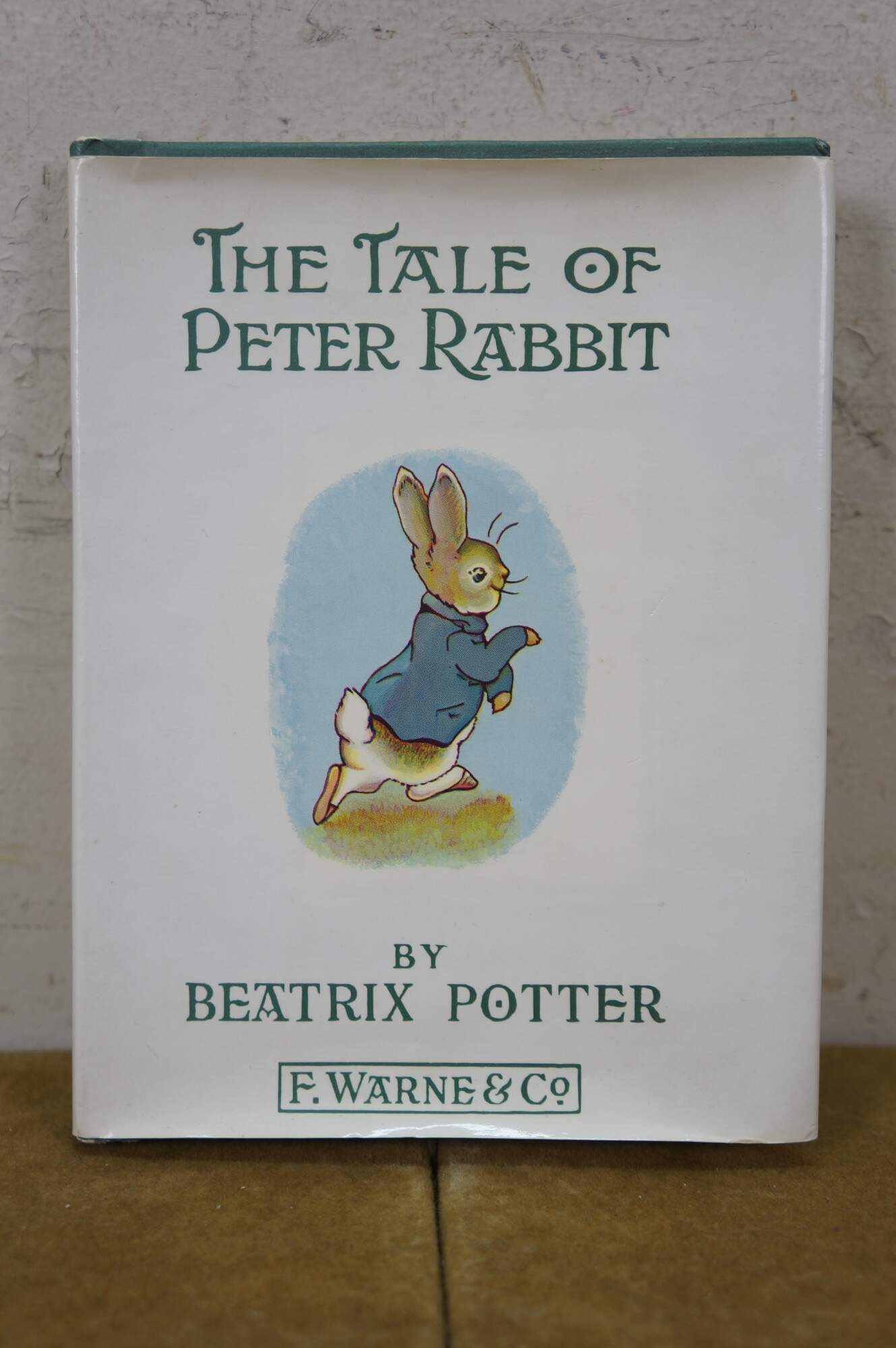 Collection of 13 Royal Albert Beatrix Potter figurines, accompanied by 5 of the author's classic children's books.
