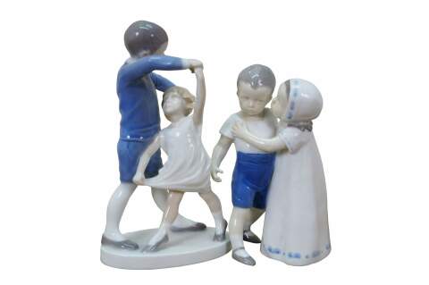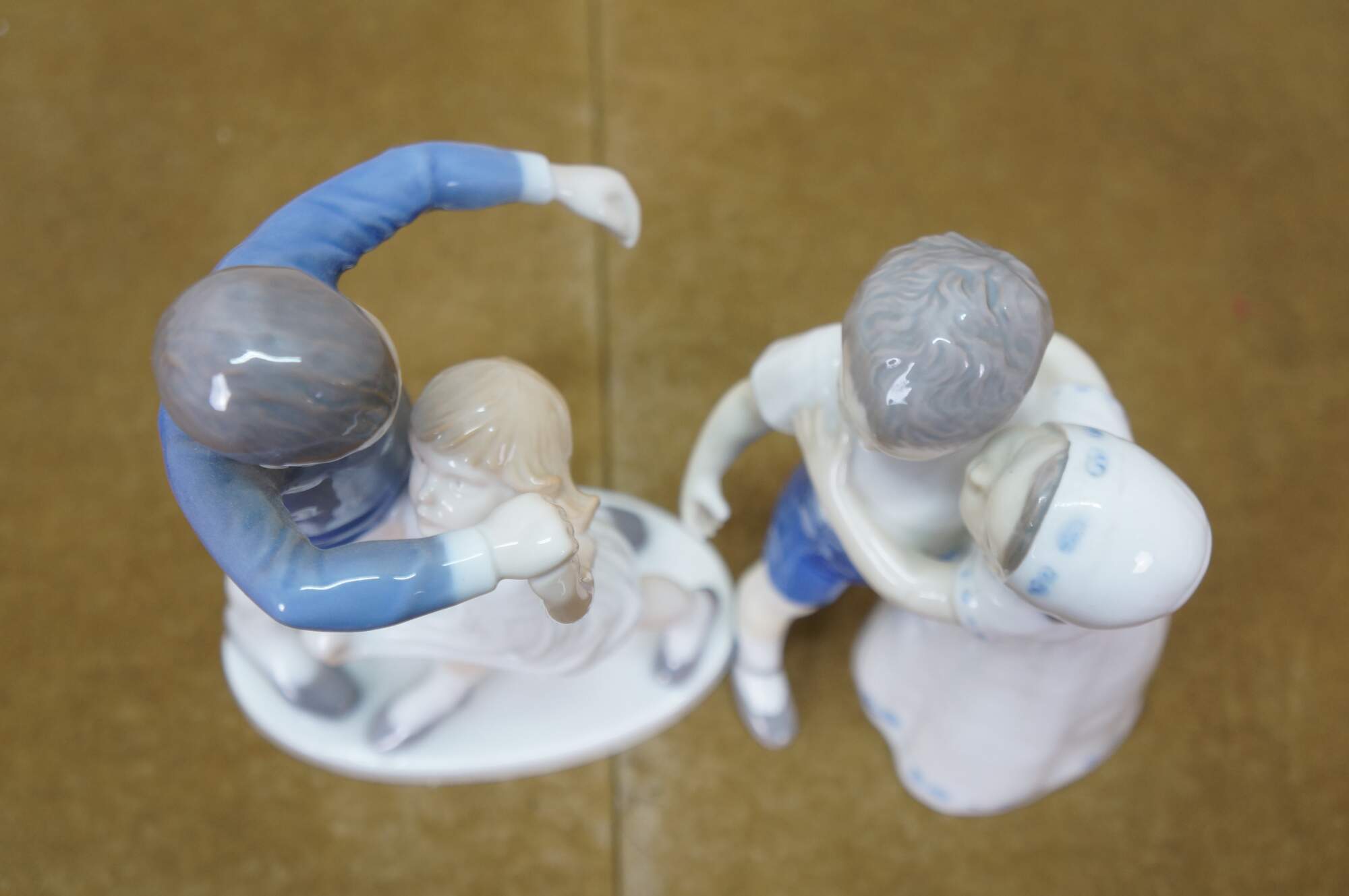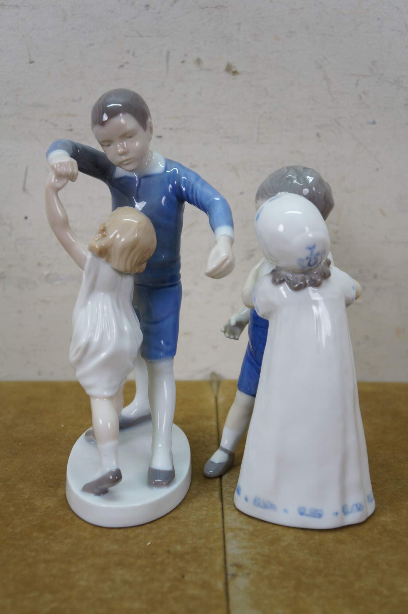 Vintage Bing & Grøndahl porcelain figurines, Dancing School or Dancing Children 1845 & Love Refused or Love Scorned 1614. Both created by Danish artist Ingeborg Plockross Irminger.