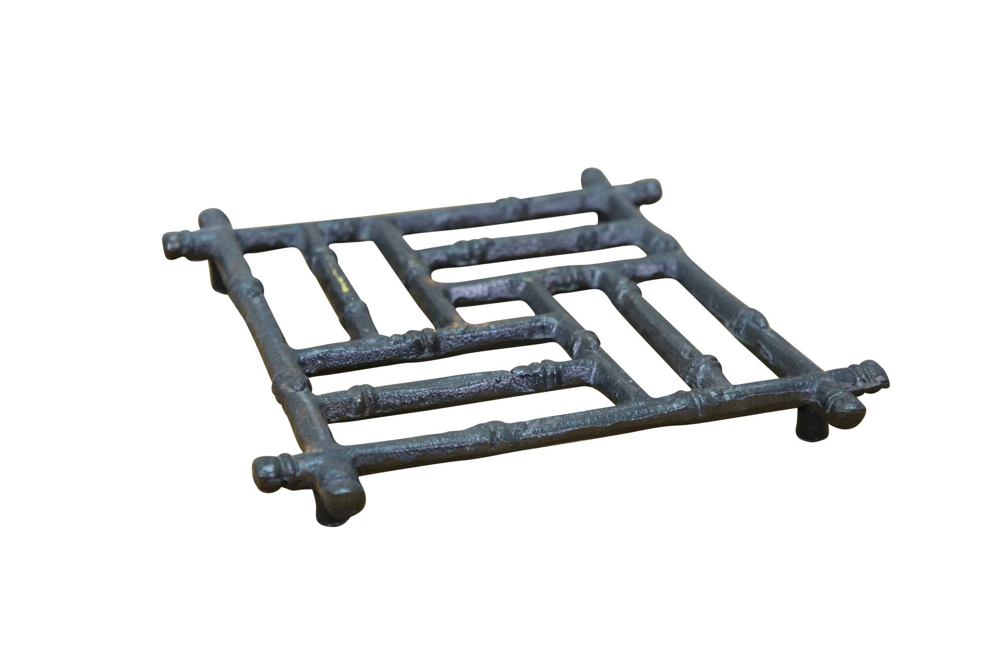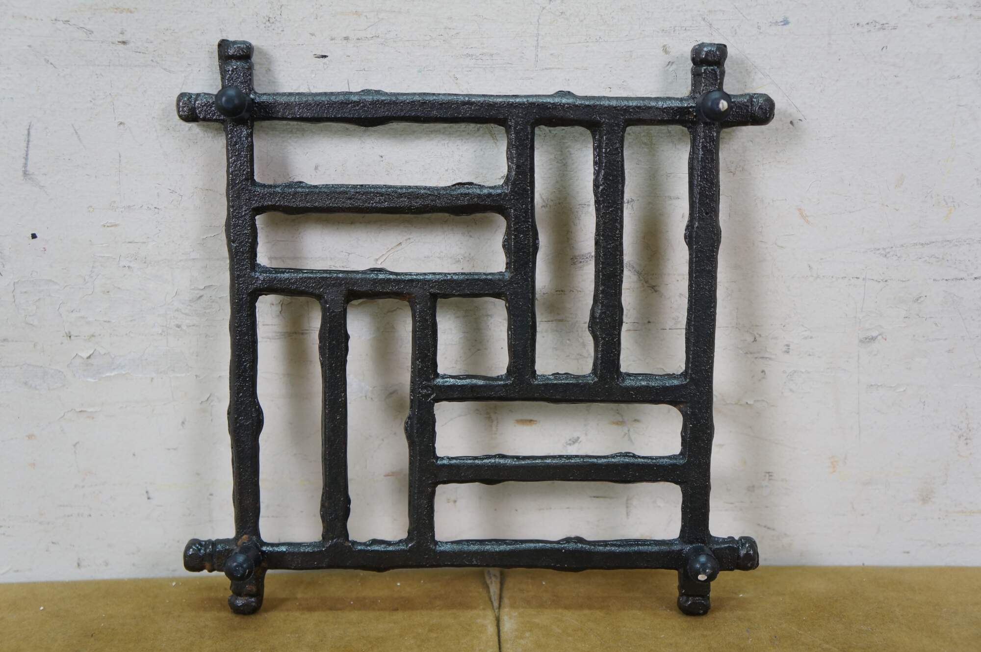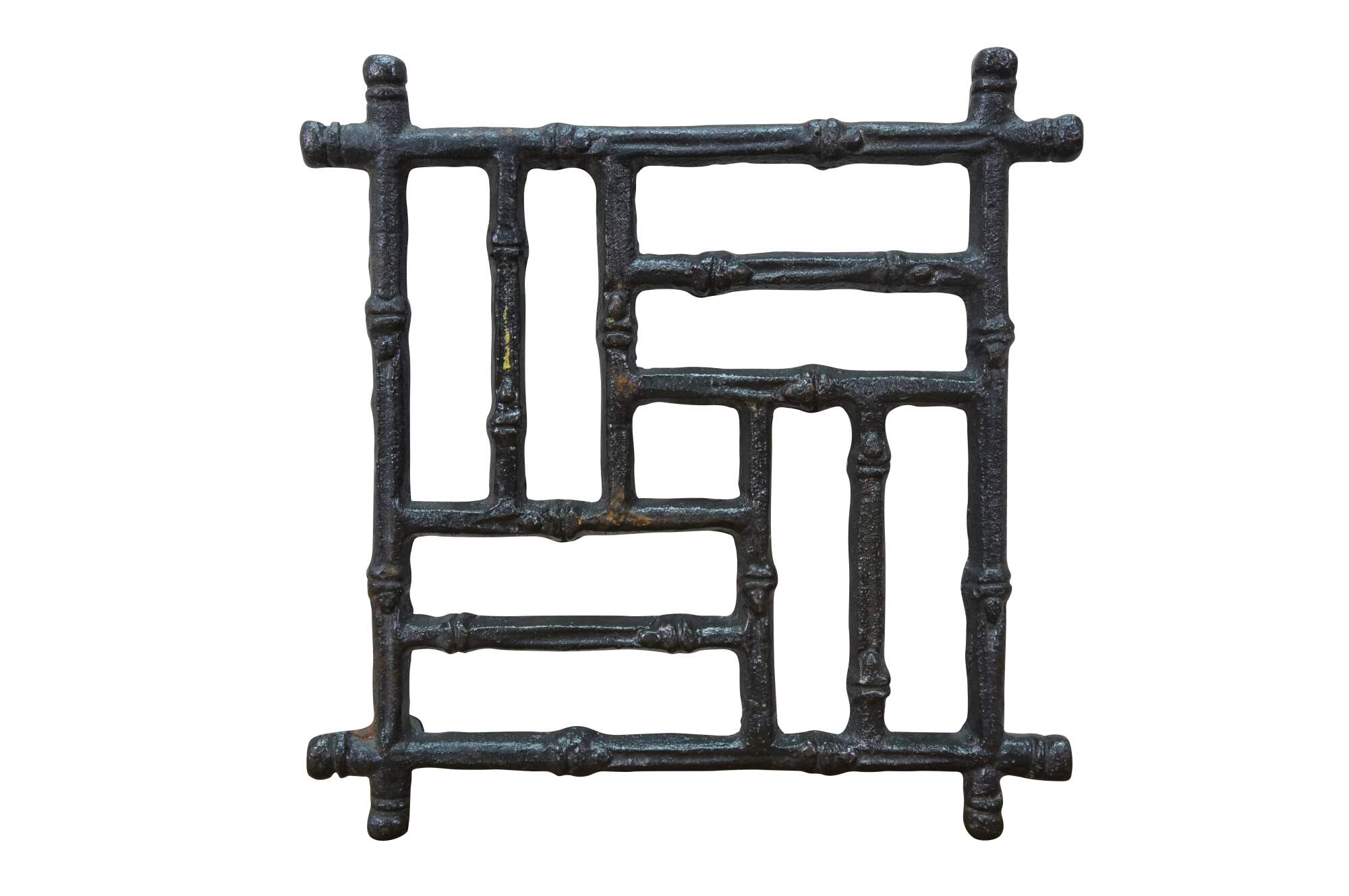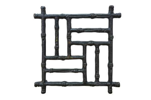 Vintage cast iron fretwork panel designed to resemble bamboo, commonly used as a decorative element in Chinese Chippendale style furniture or architectural applications.