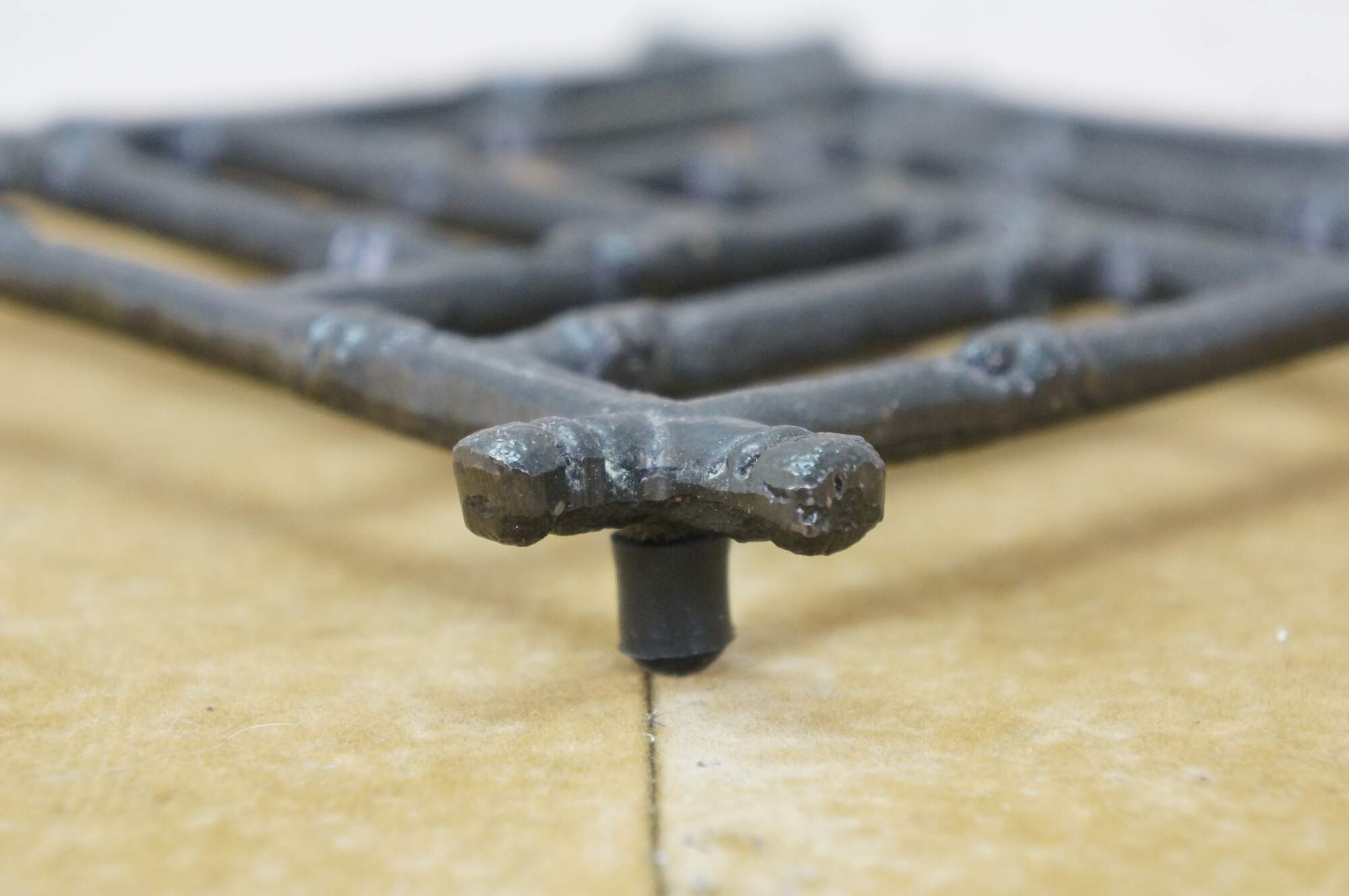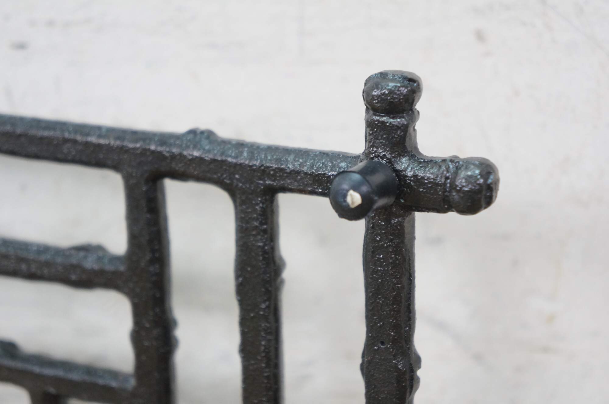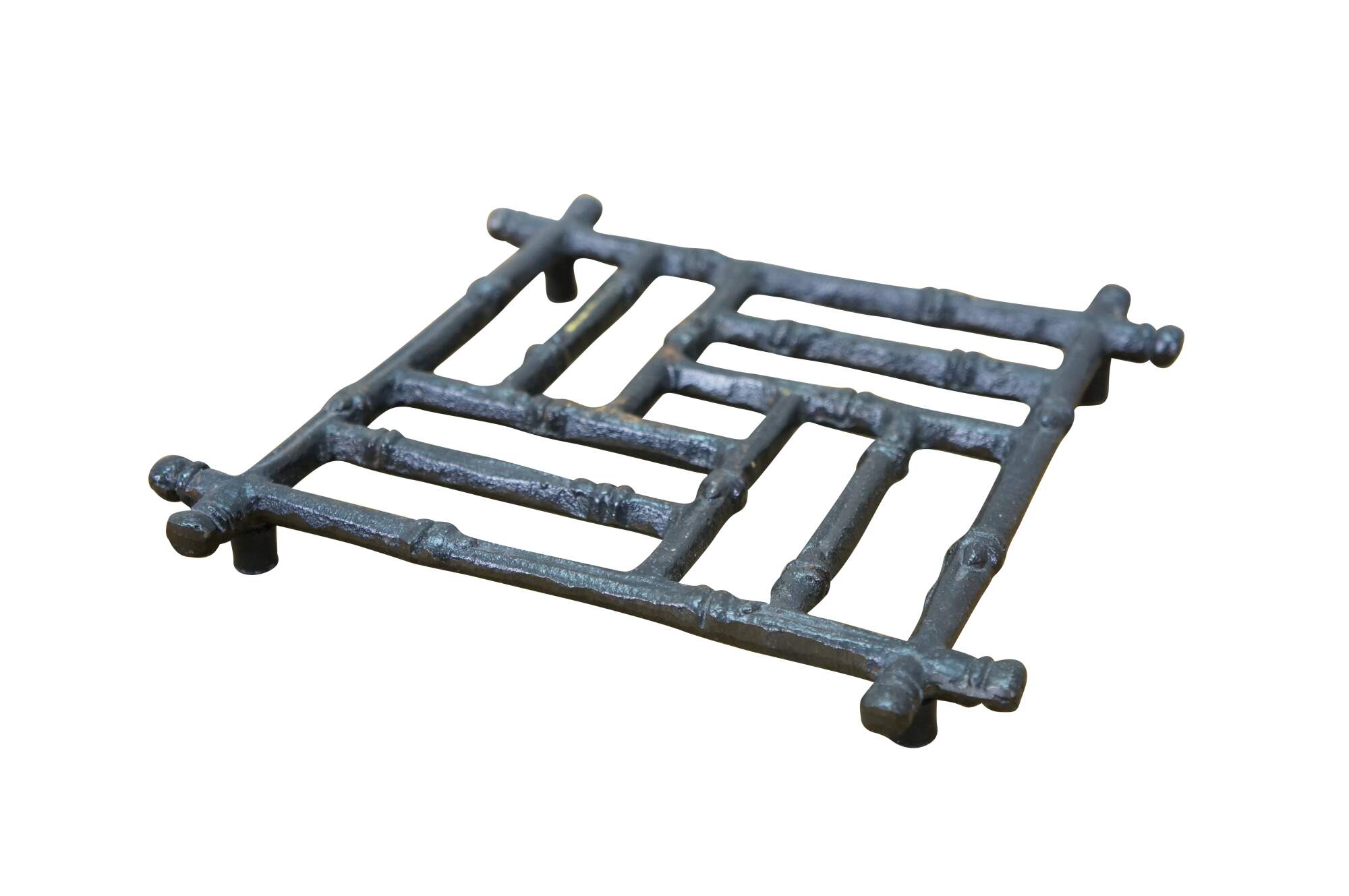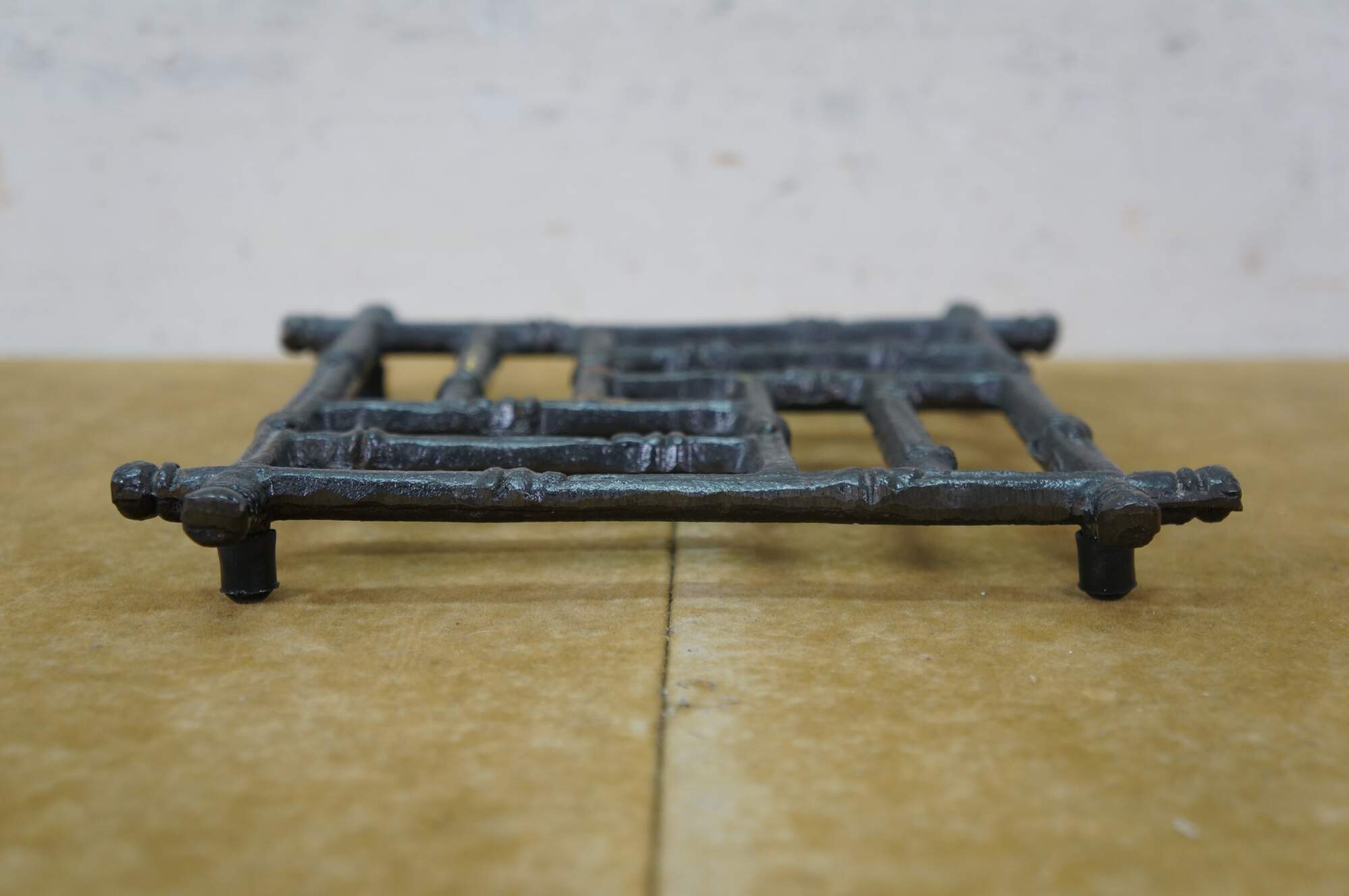 Vintage cast iron fretwork panel designed to resemble bamboo, commonly used as a decorative element in Chinese Chippendale style furniture or architectural applications.
