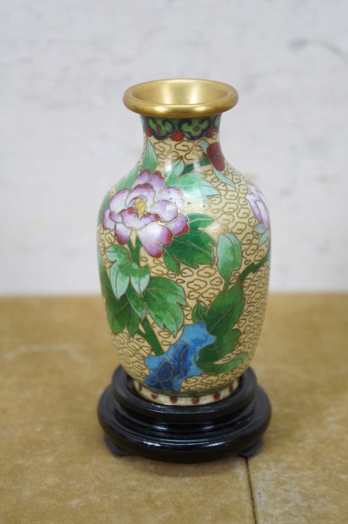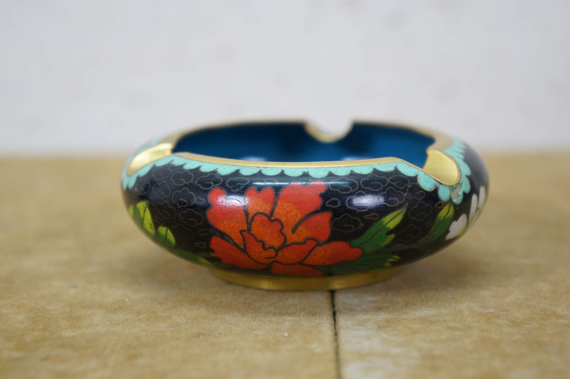6 Chinese Brass Cloisonne Enameled Floral Vases Brush Bowls Ashtray Dishes