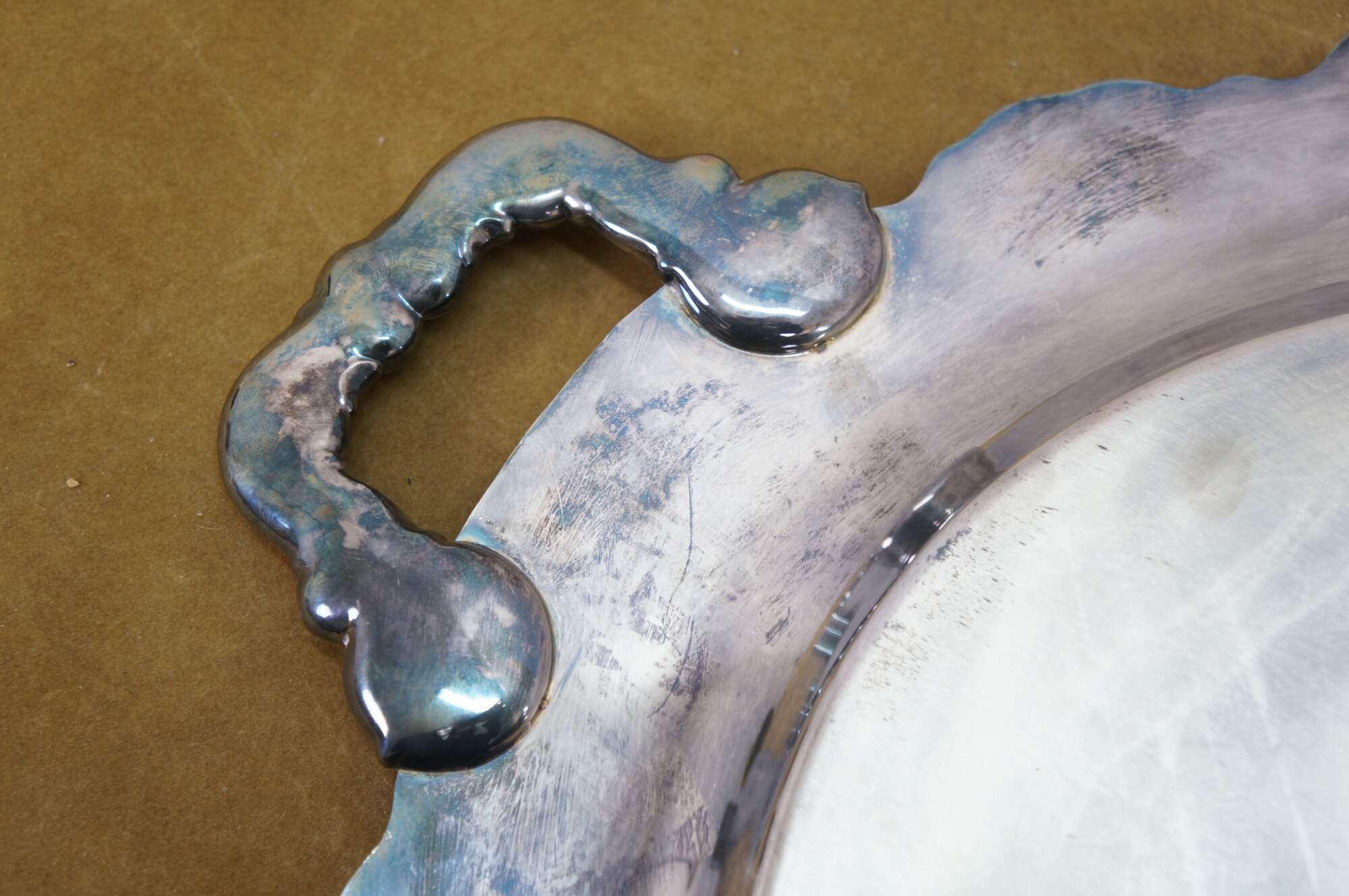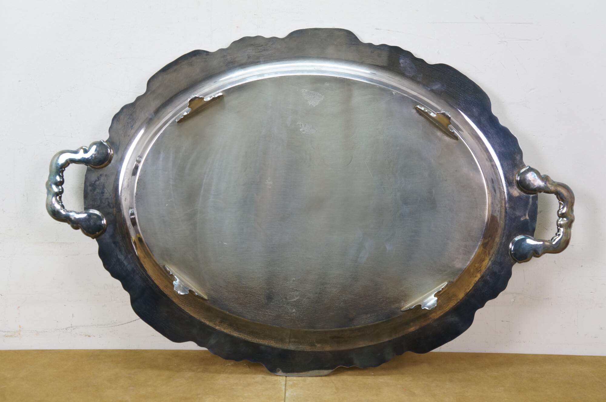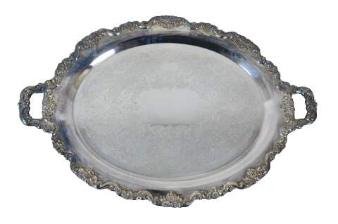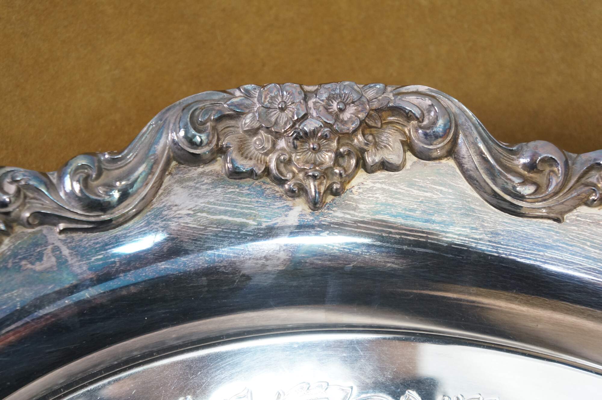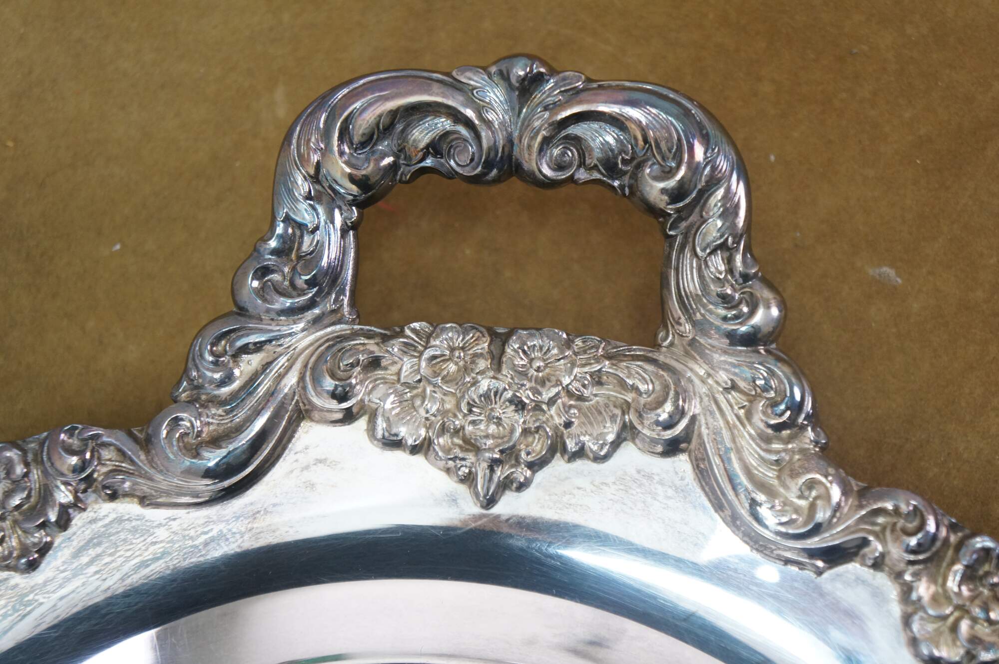 Very large Towle 6955 Grand Duchess scalloped Victorian floral silver plate handled bar / butler / waiter serving tray or platter.