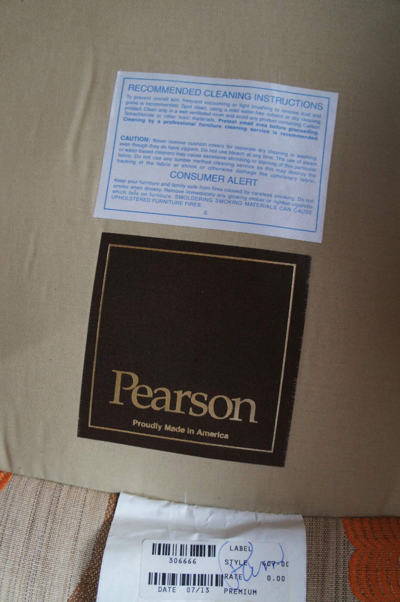 Vintage Pearson Furniture club / lounge / arm chair and ottoman / footrest / stool featuring a floral acanthus design.