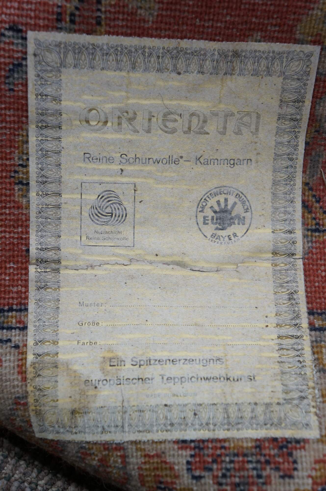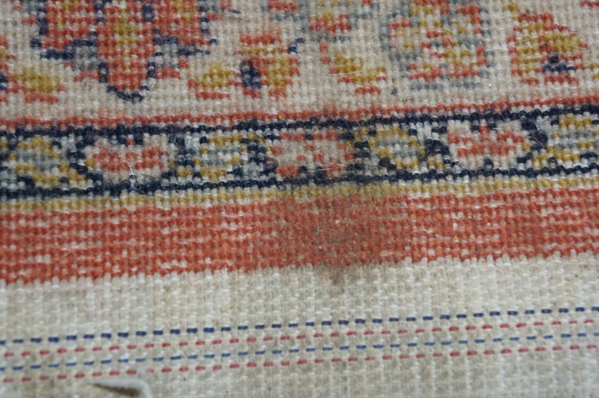 wear; unraveled / missing edging / fraying.