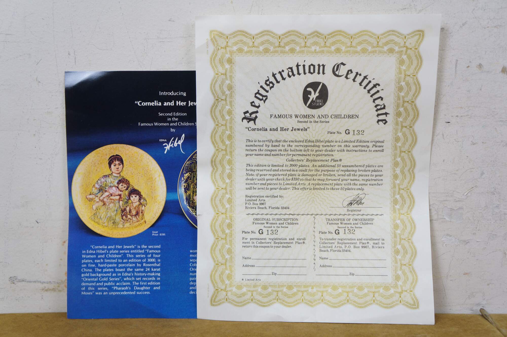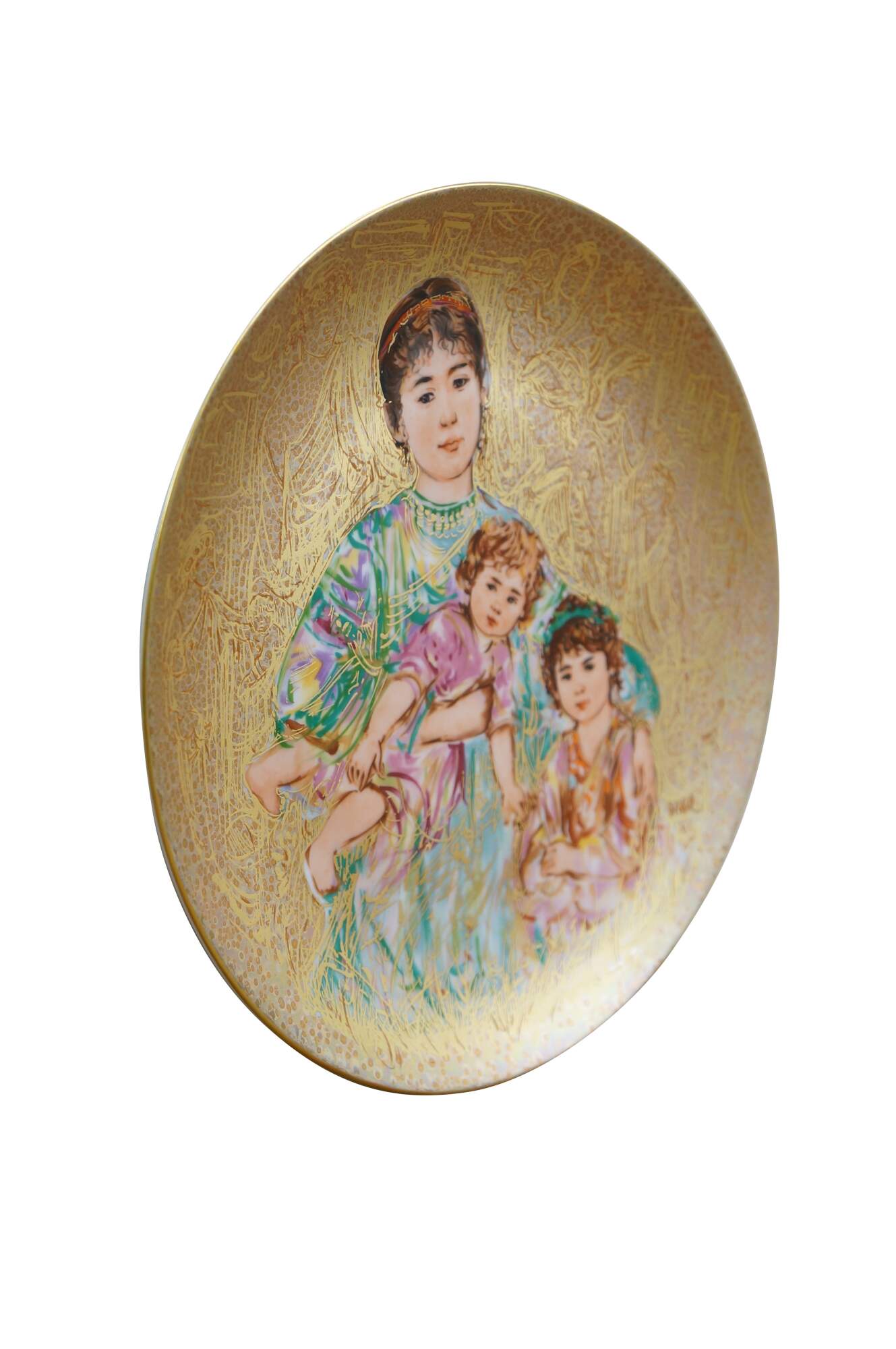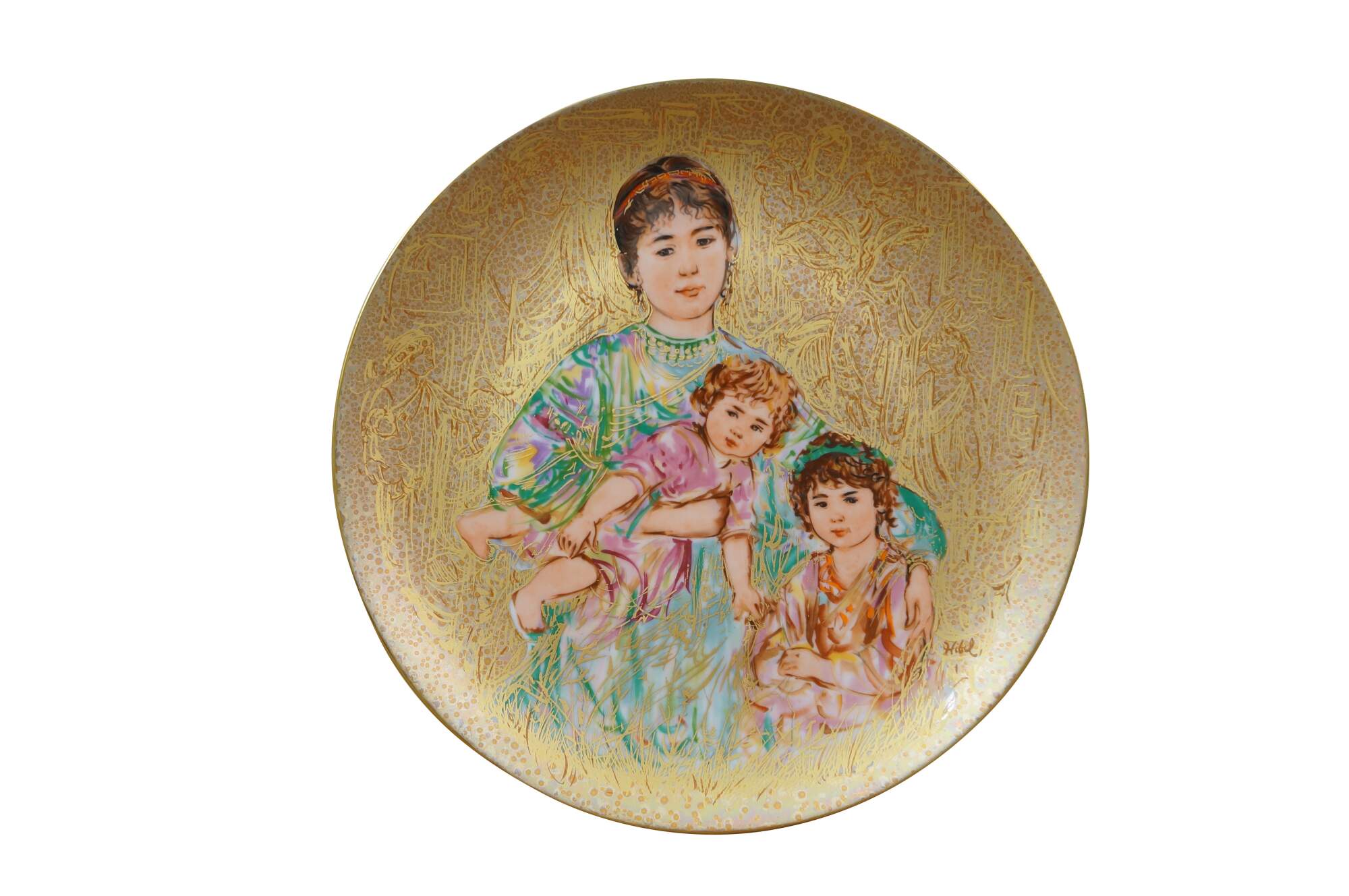 Vintage limited edition collector's plate titled Cornelia and Her Jewels from the Famous Women and Children series by artist Edna Hibel.
