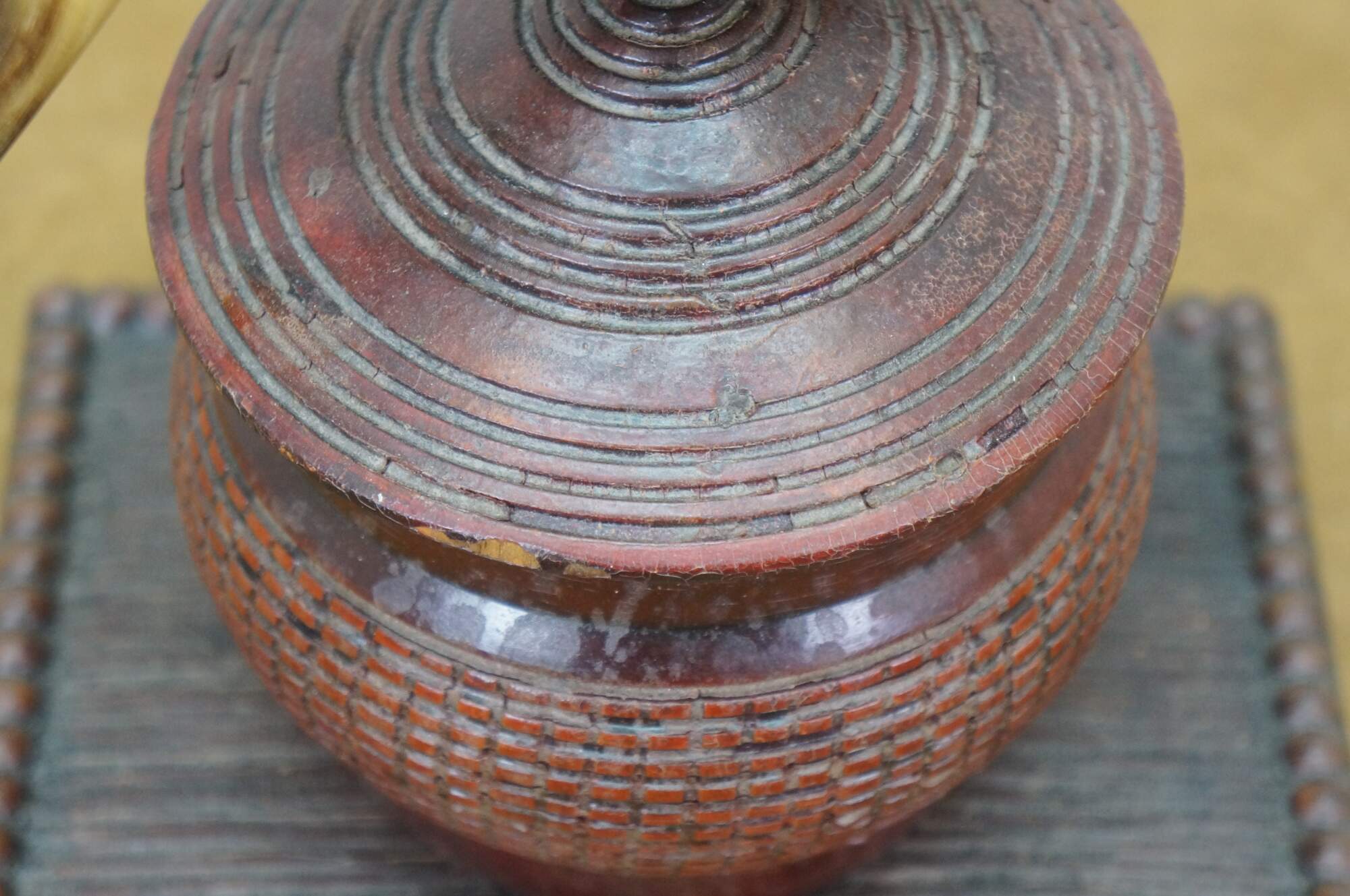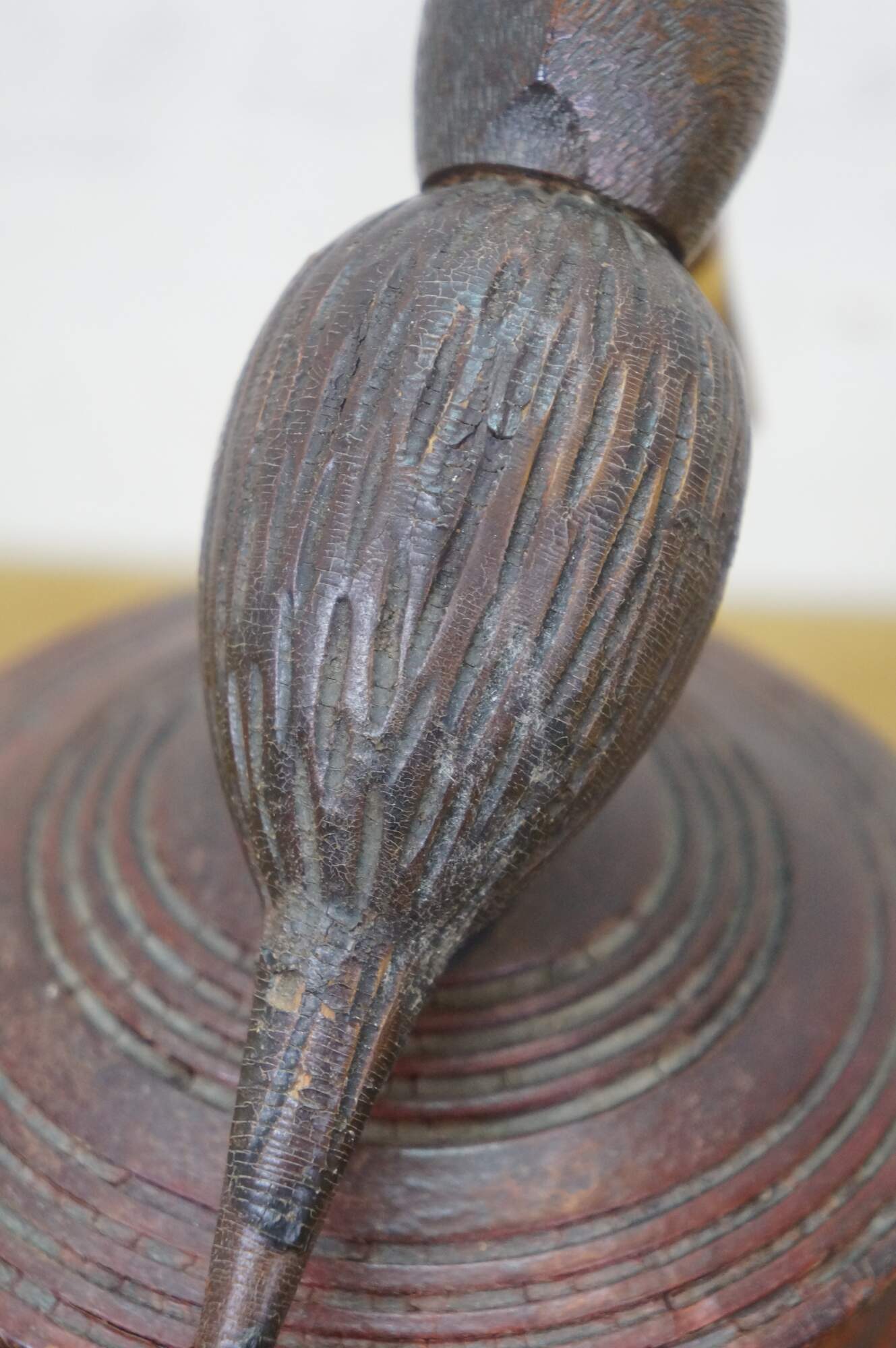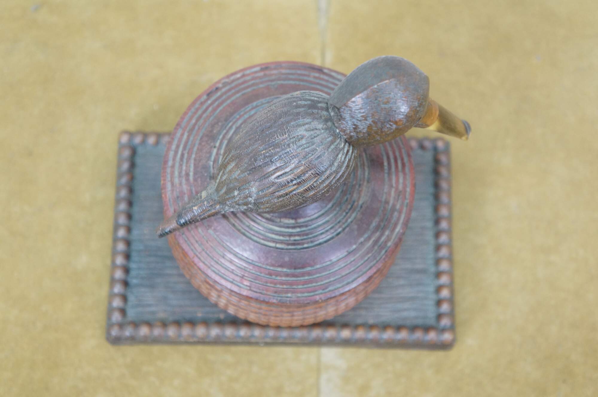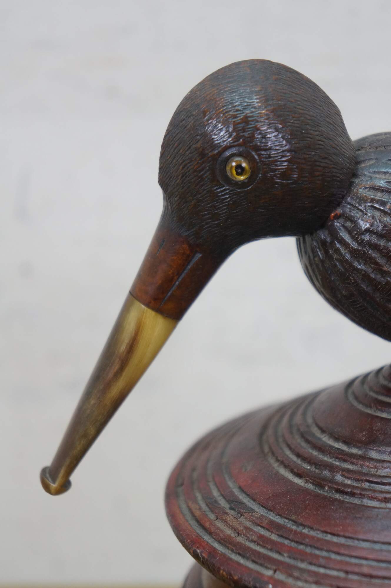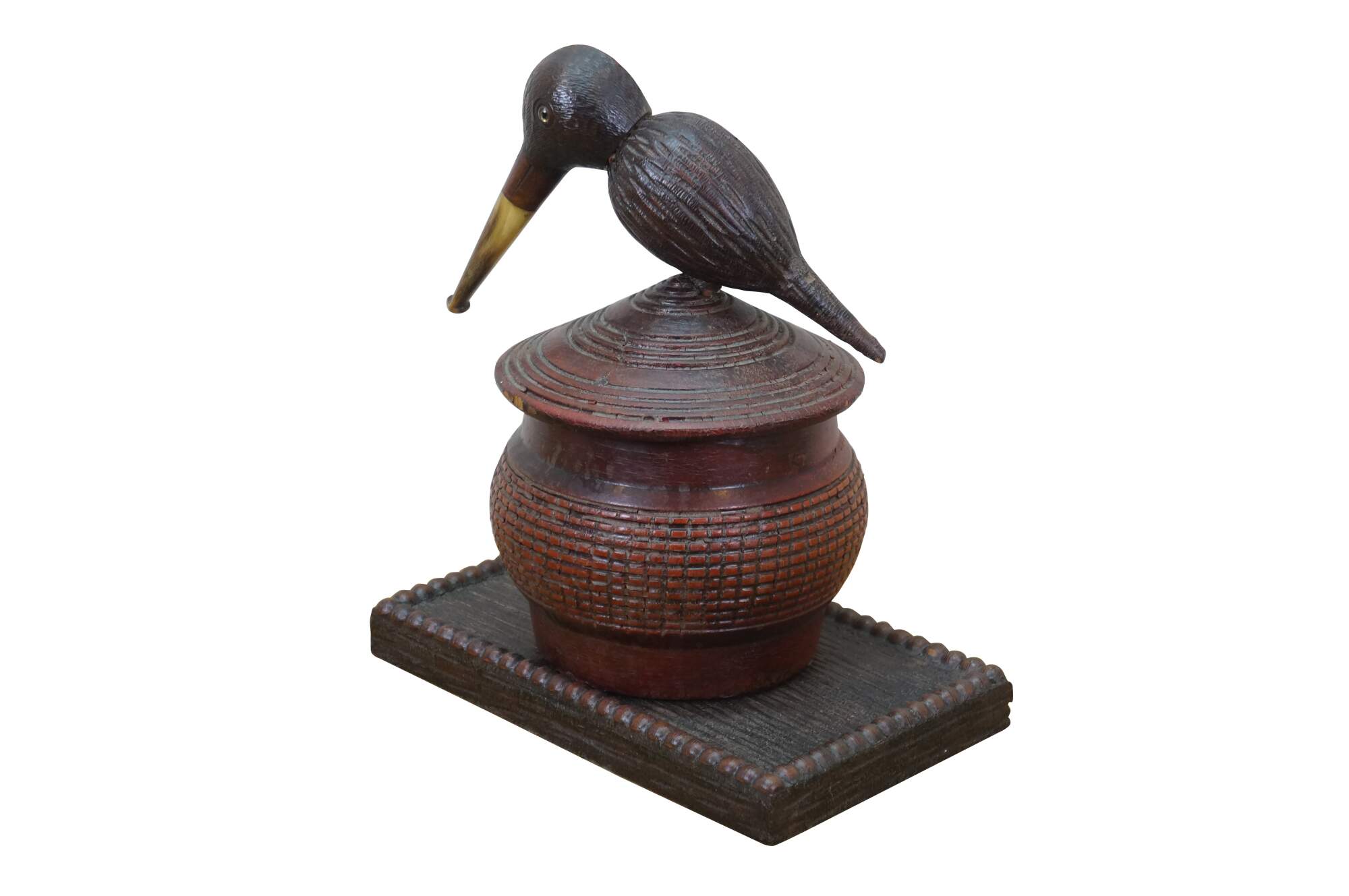 Antique Danish folk art lidded tea / tobacco box featuring a bird pipe used for the head and beak.