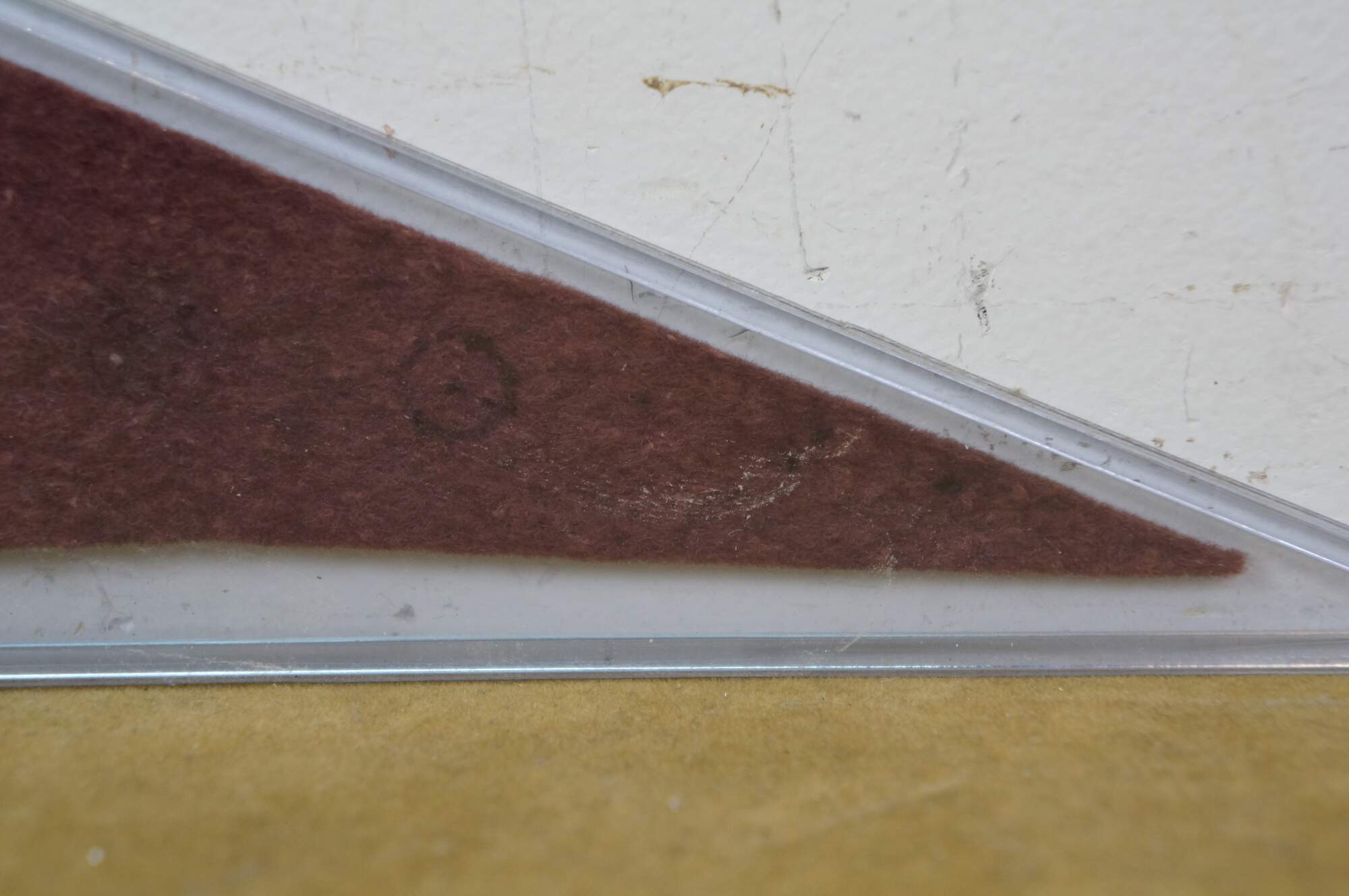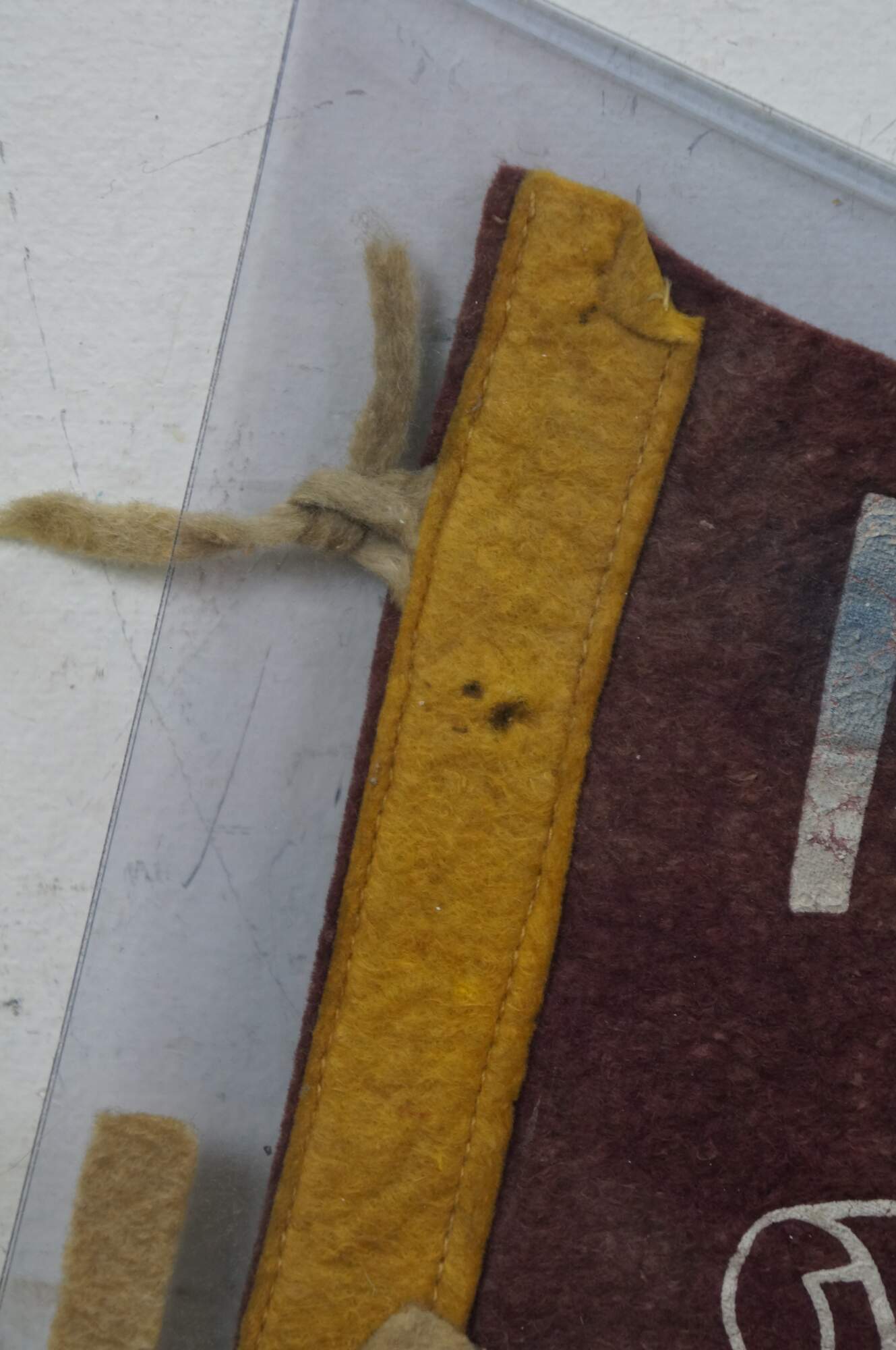 wear; some discoloration/pinholes/creasing, damaged upper tassels.