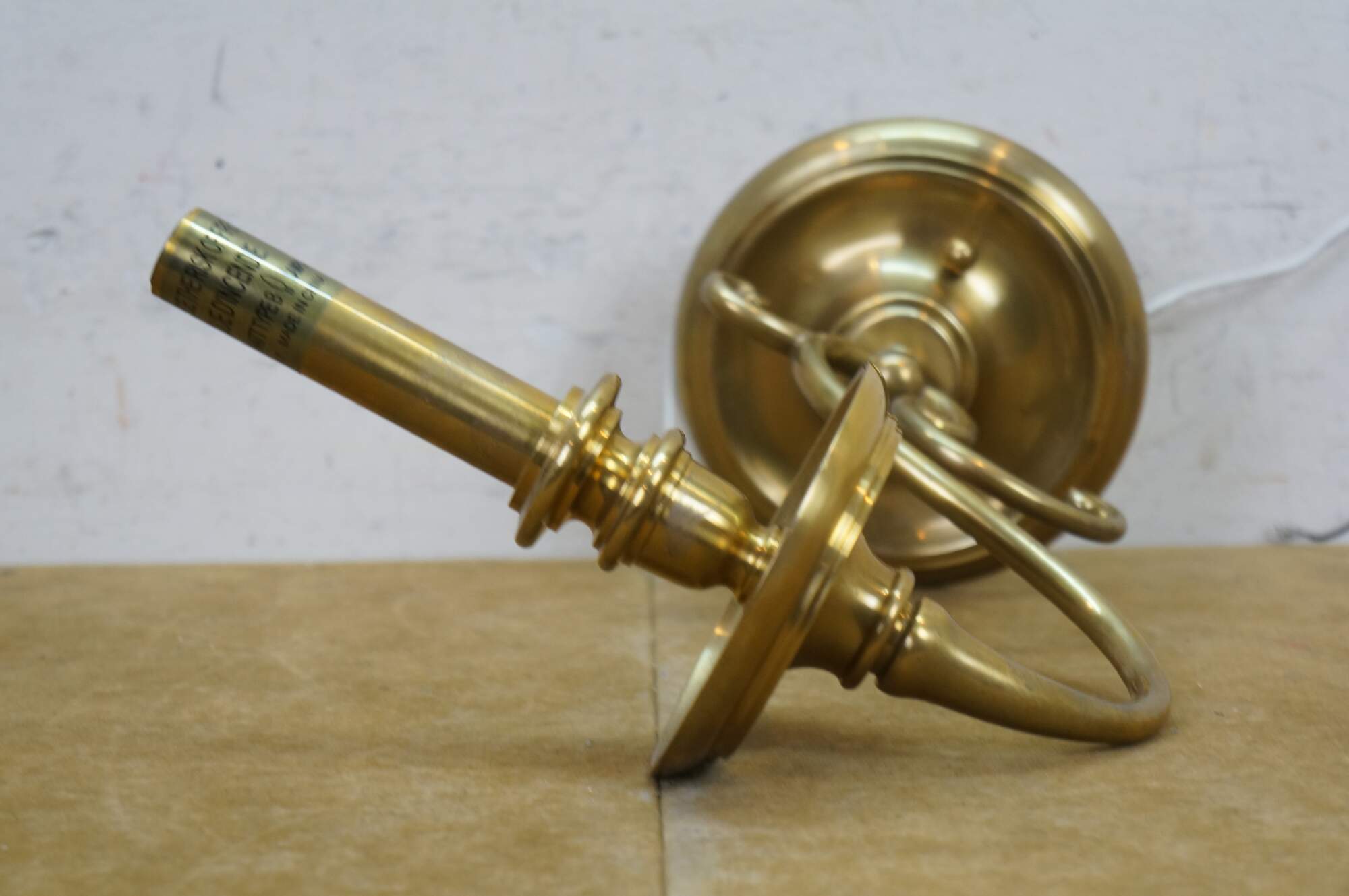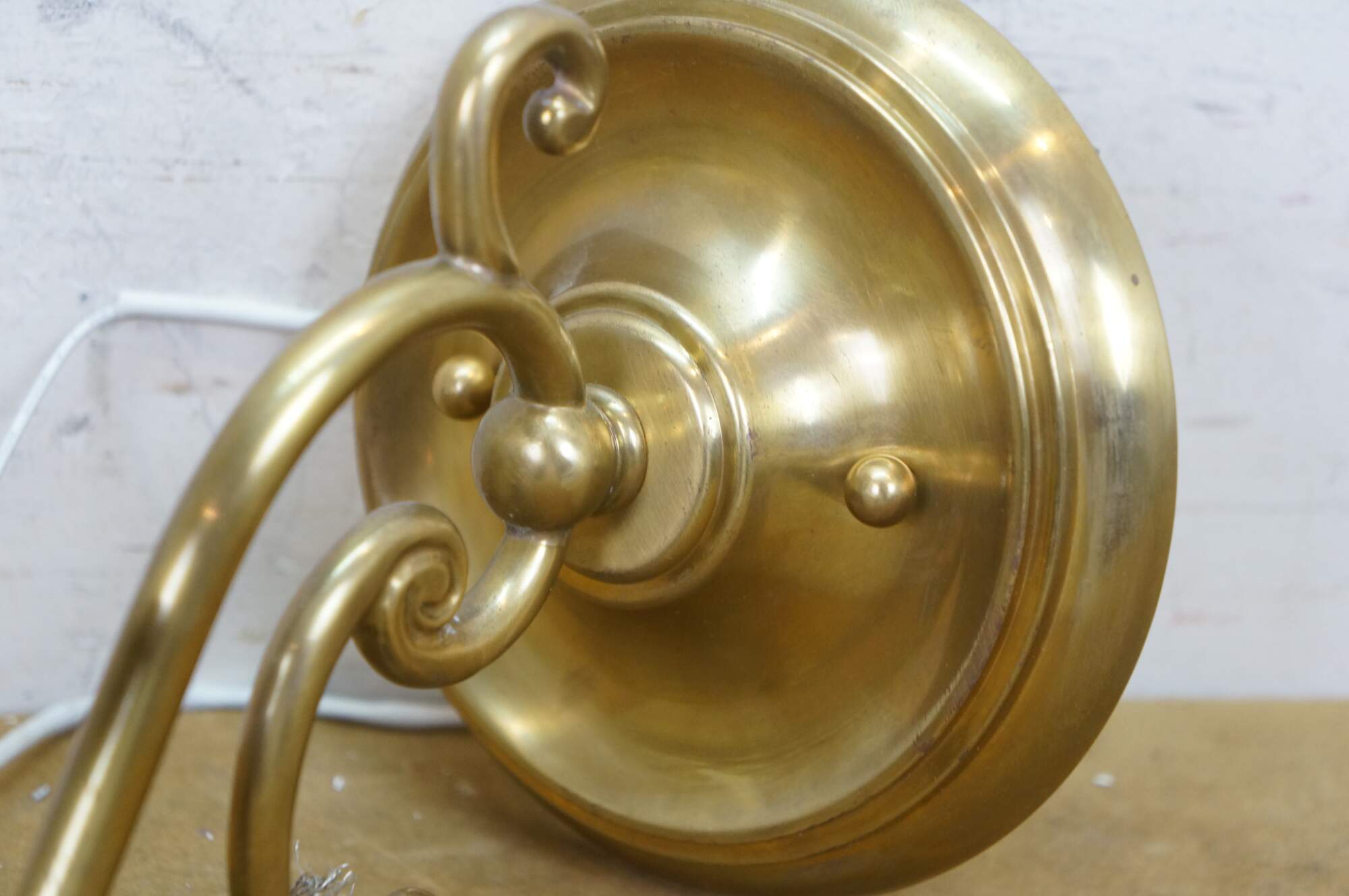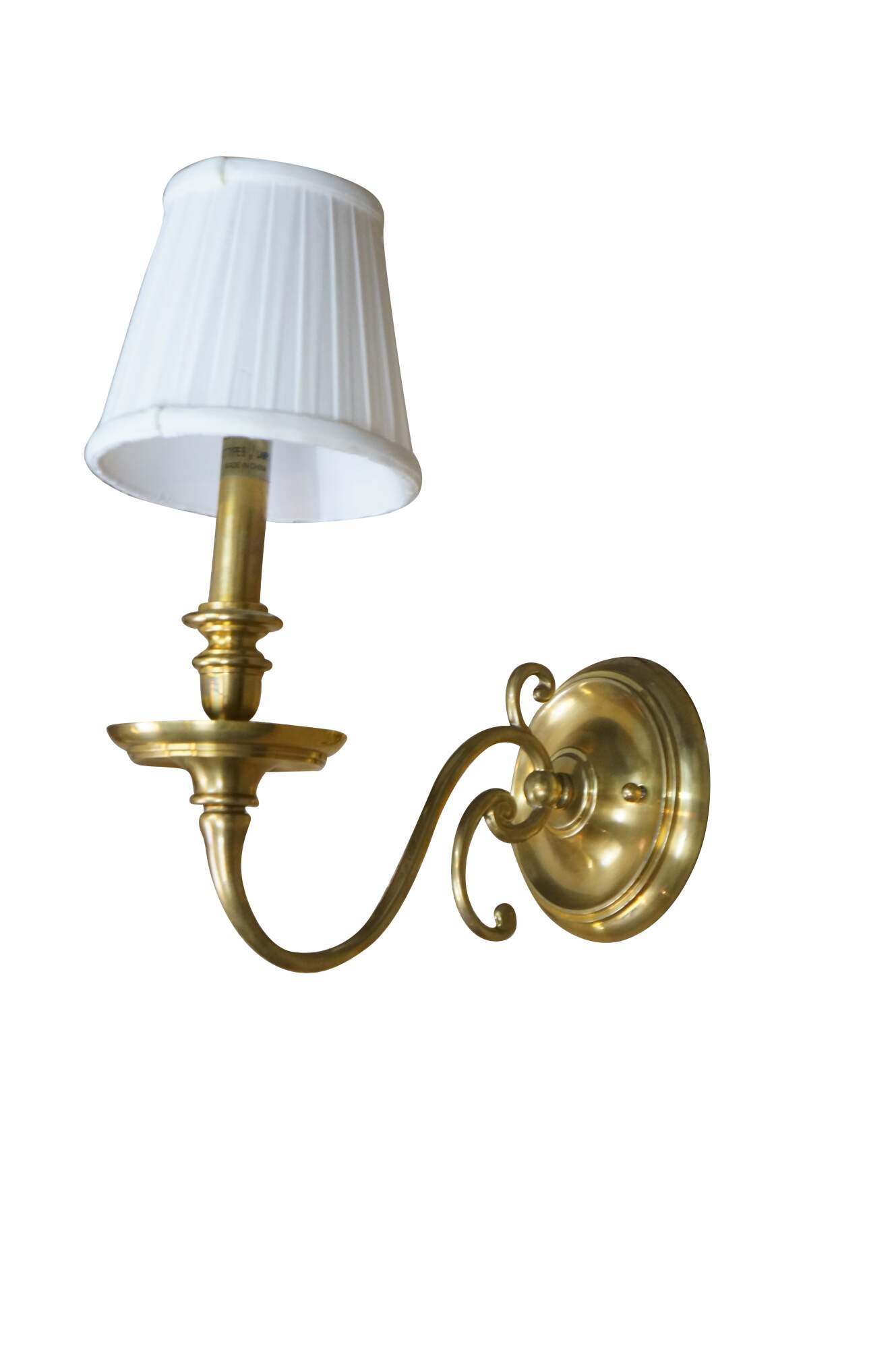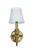 Vintage Hudson Valley Charleston brass traditional candle stick wall sconce featuring serpentine form with white tapered shade.