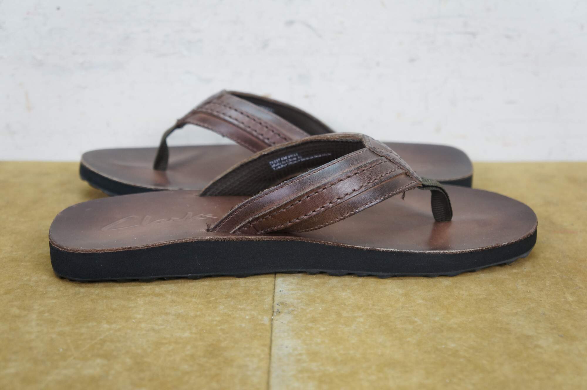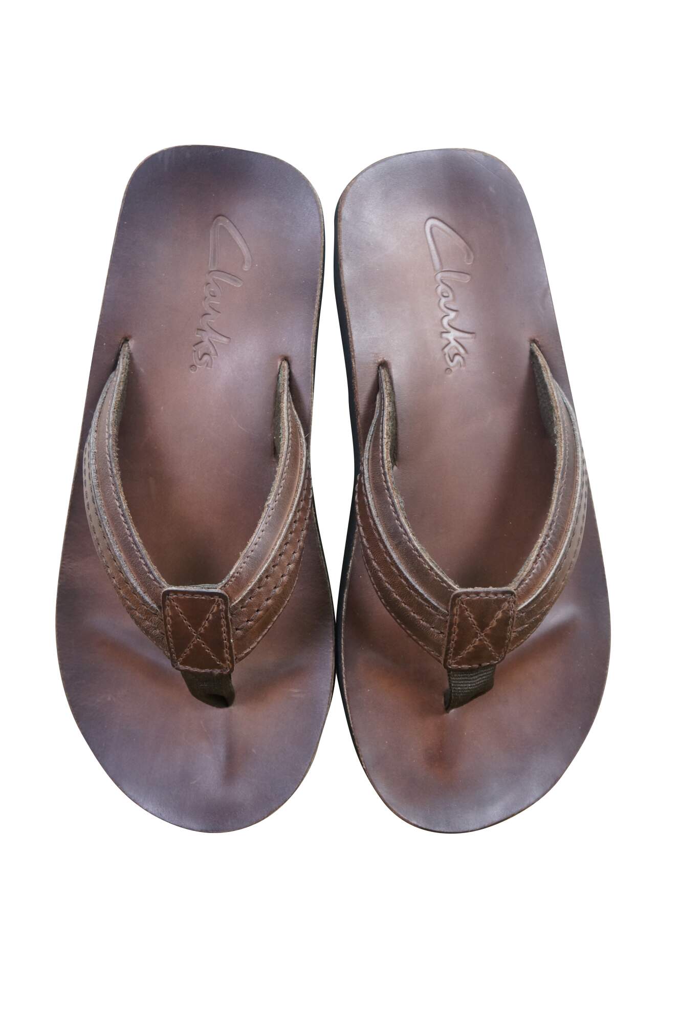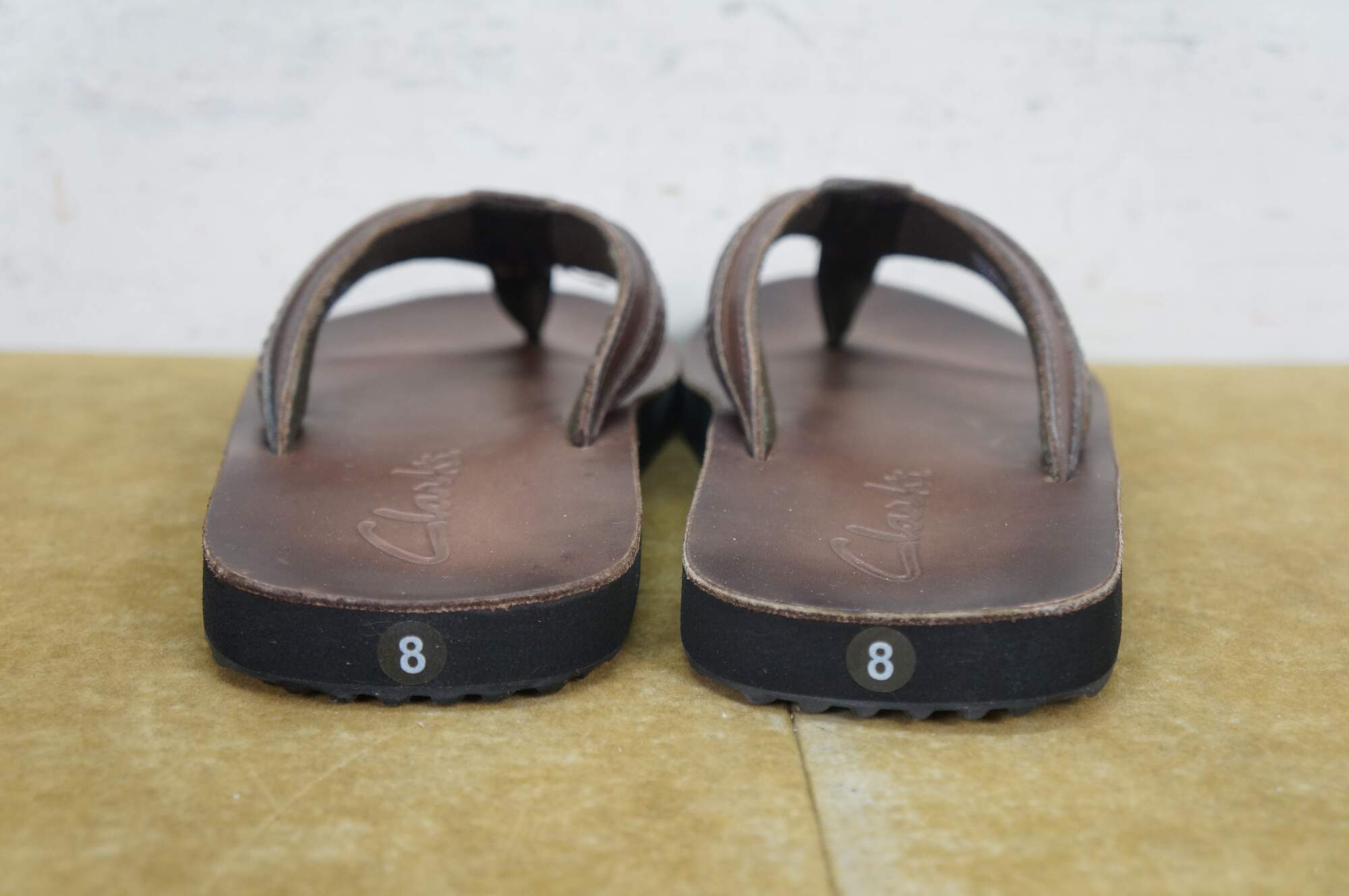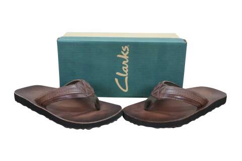 Vintage Clarks Jay brown smooth leather flip flops / tongs, mens size 8.