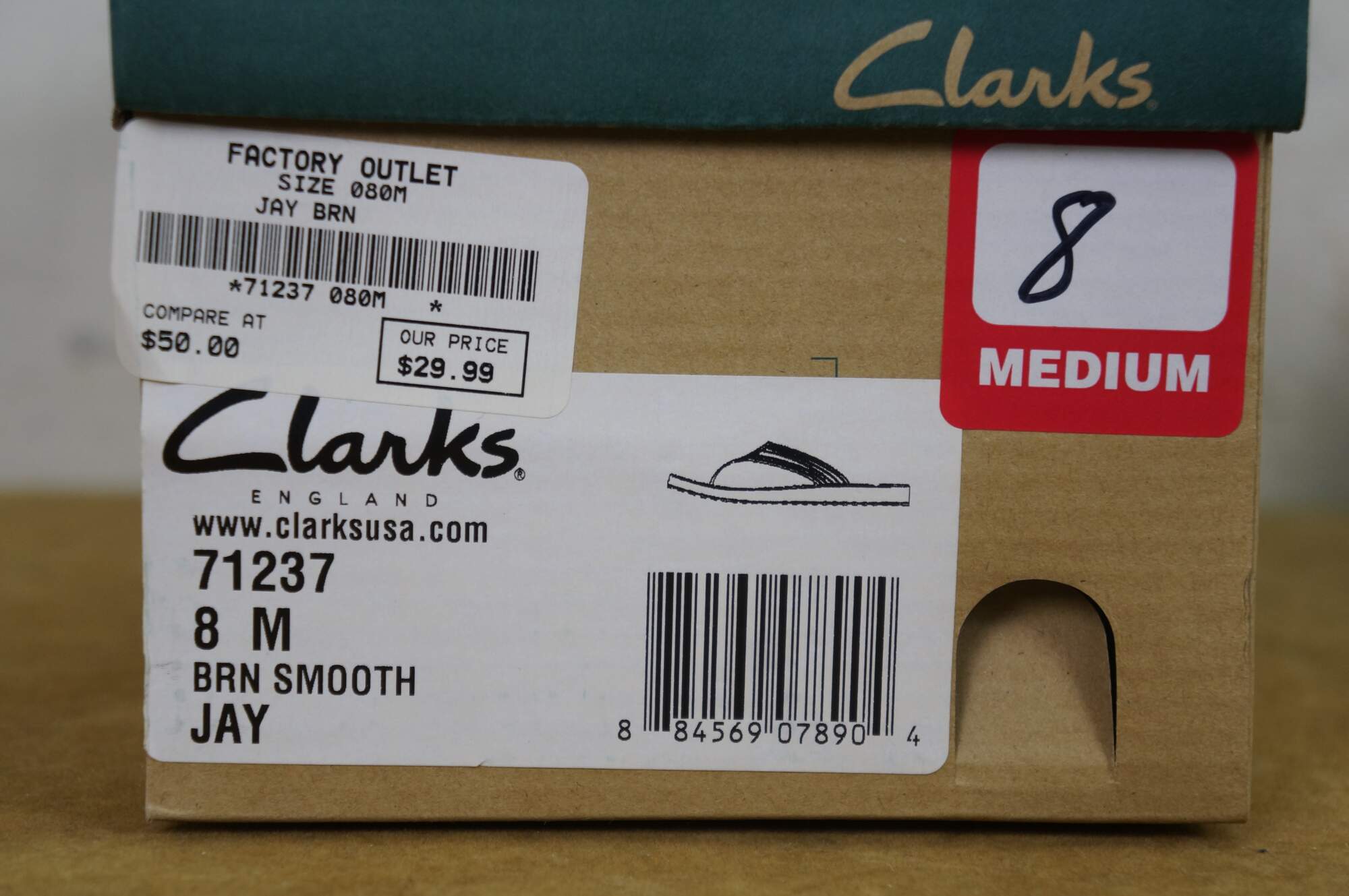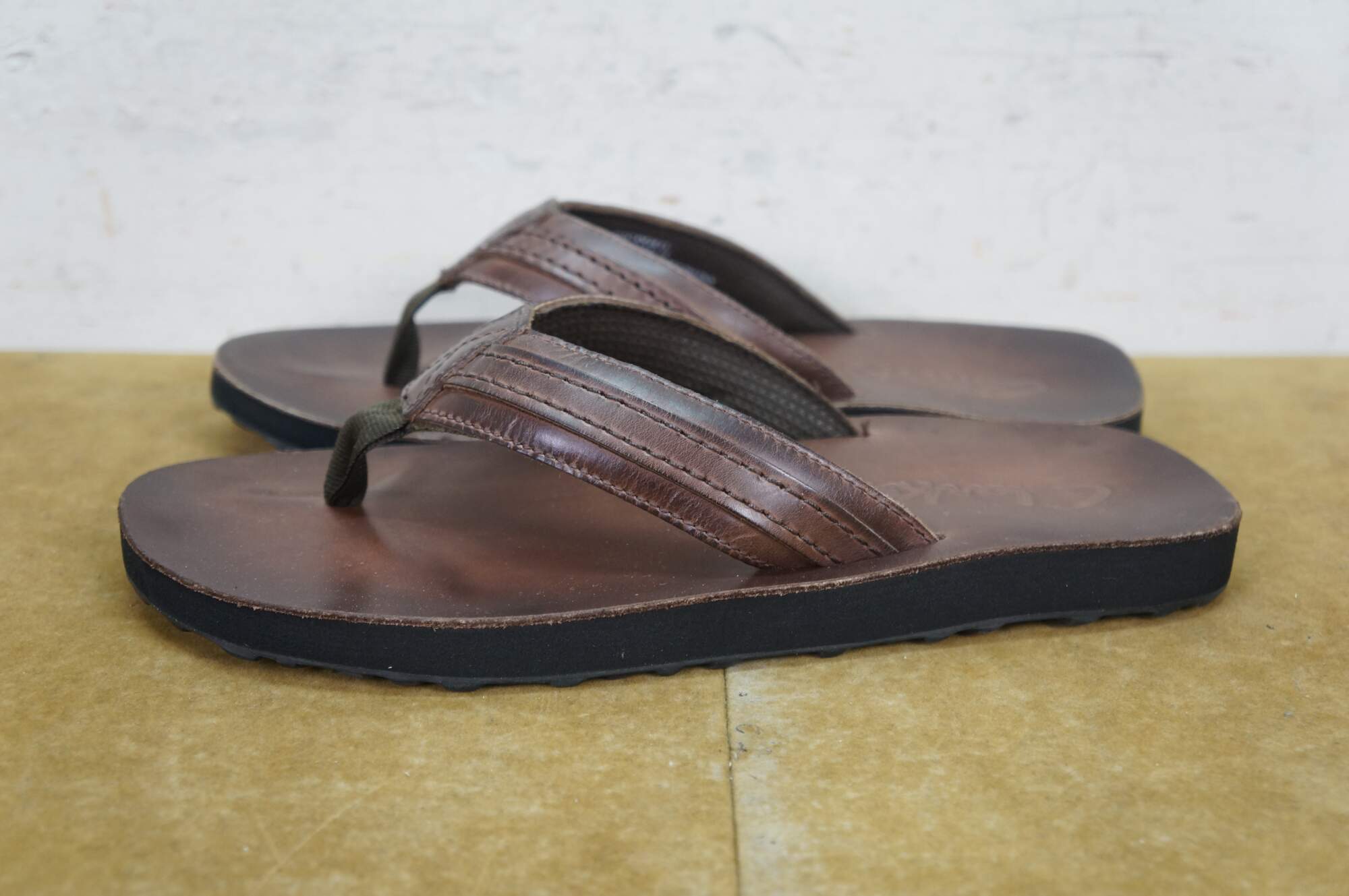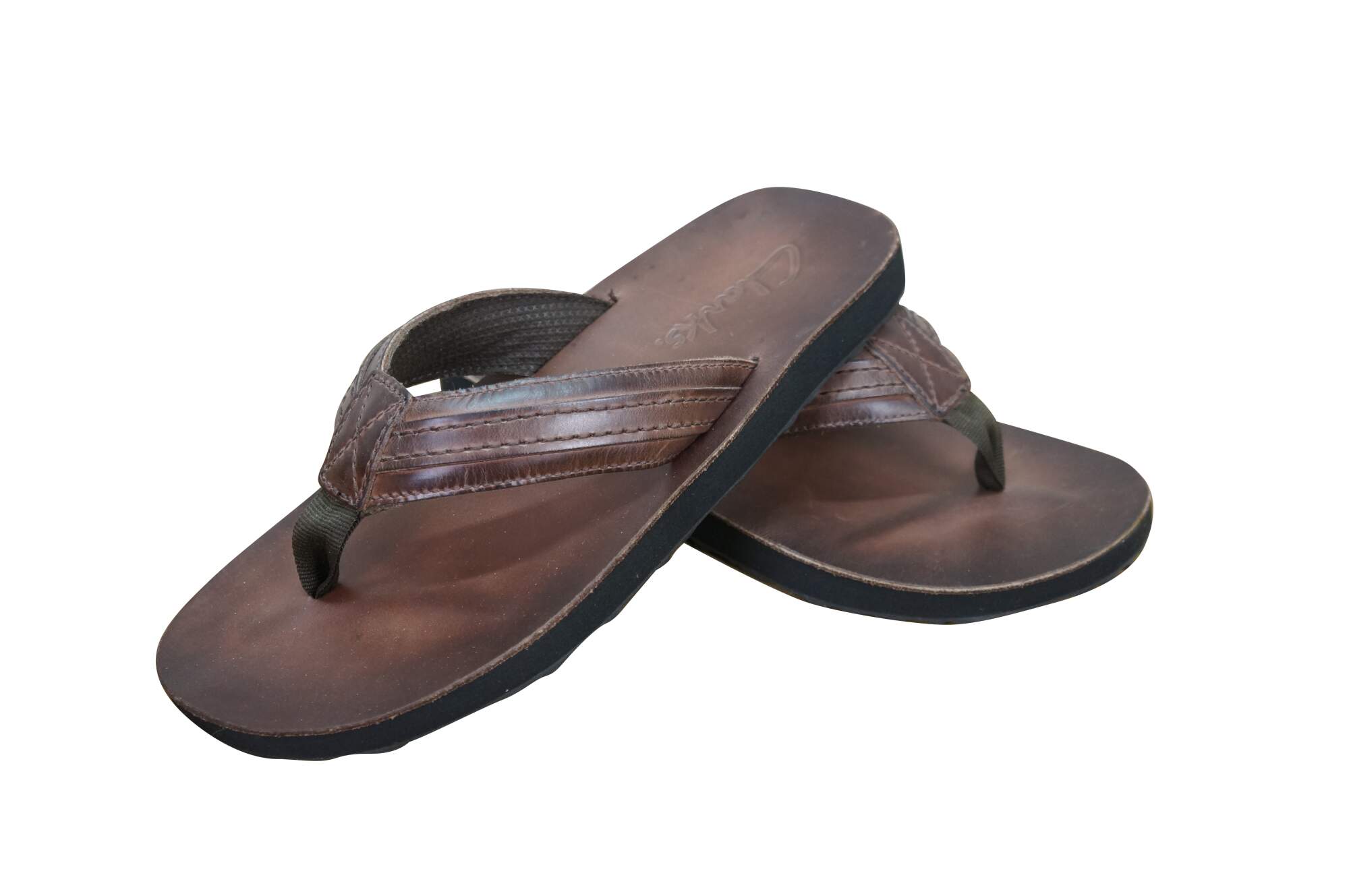 Vintage Clarks Jay brown smooth leather flip flops / tongs, mens size 8.