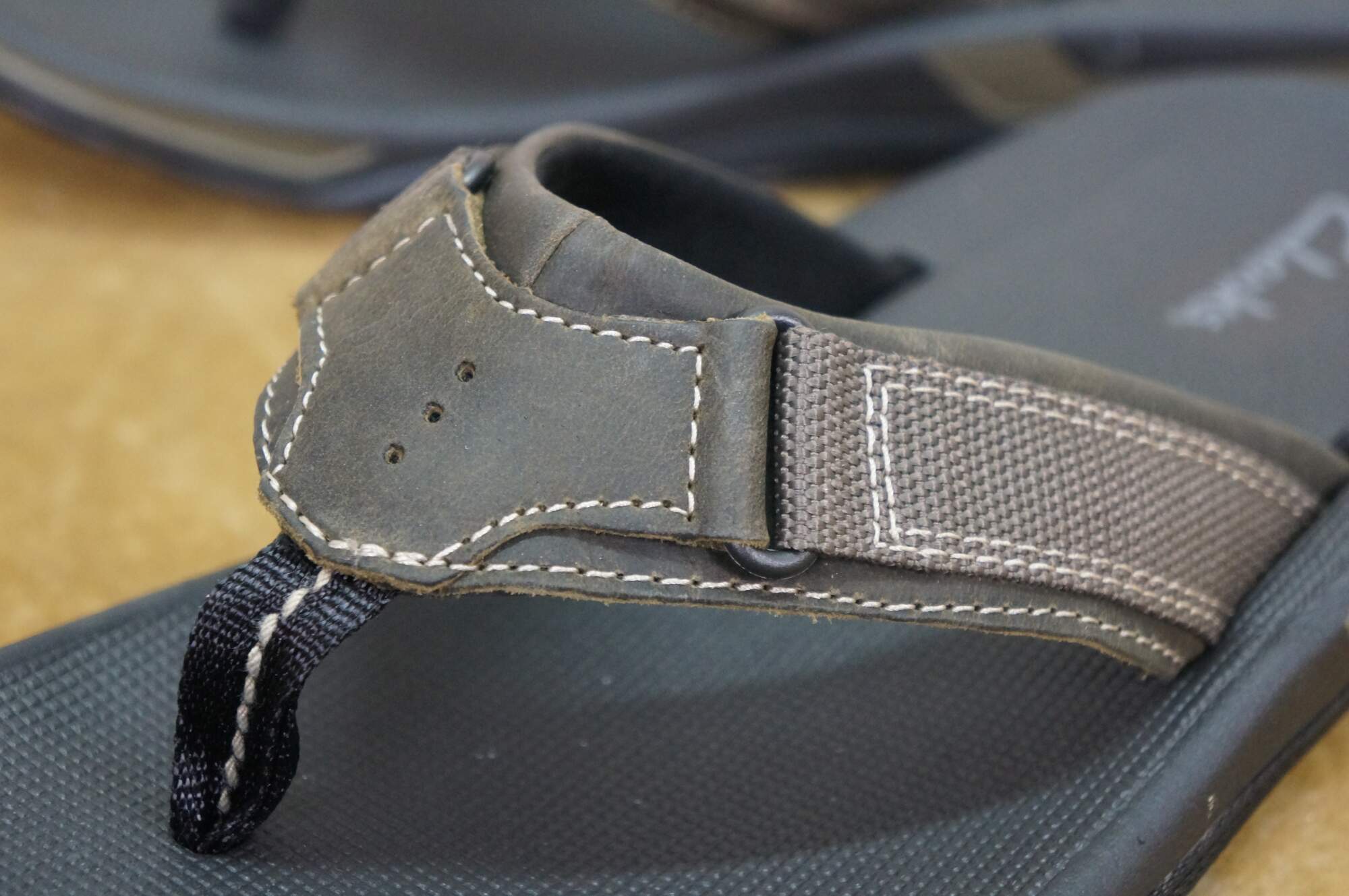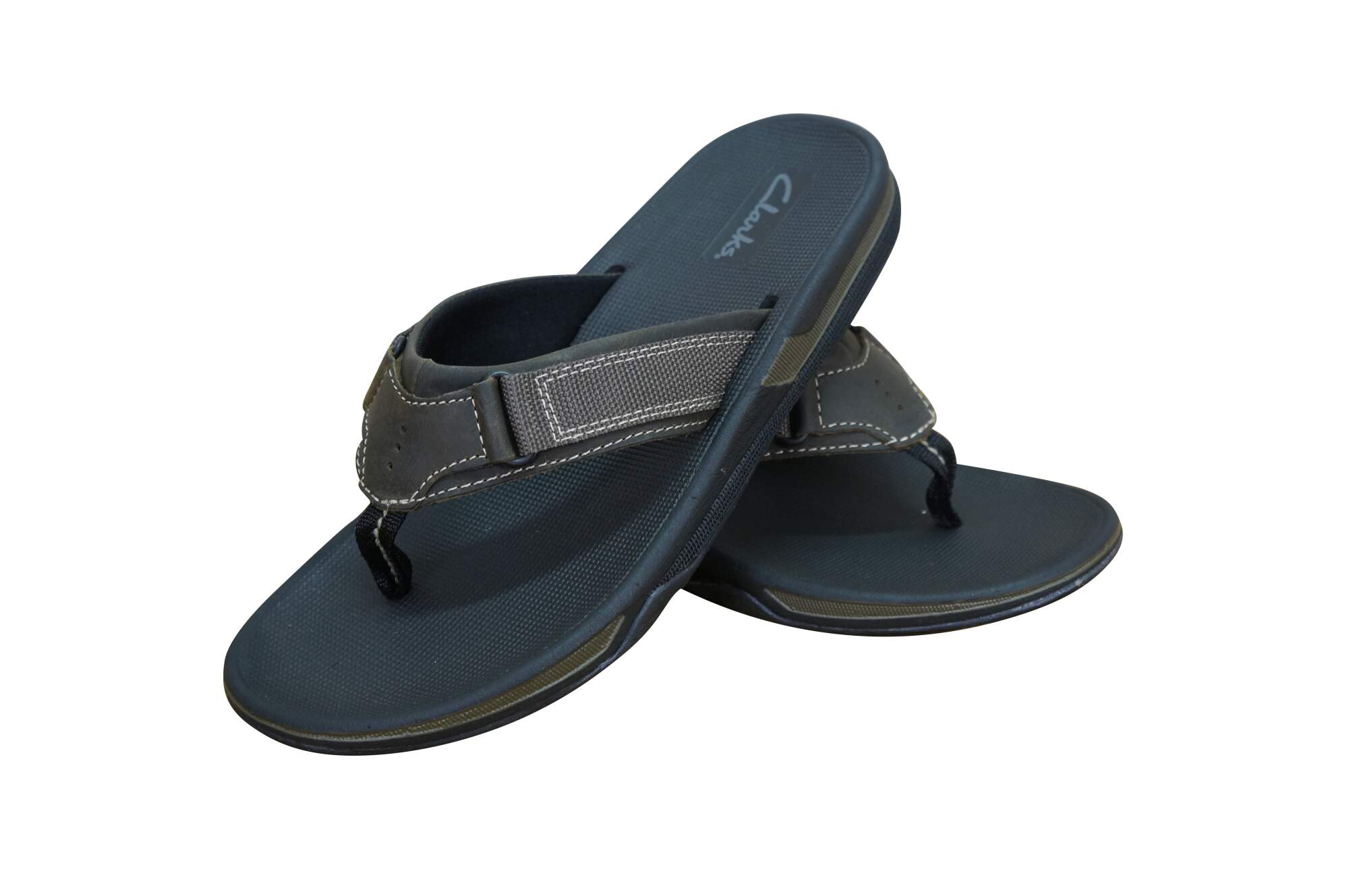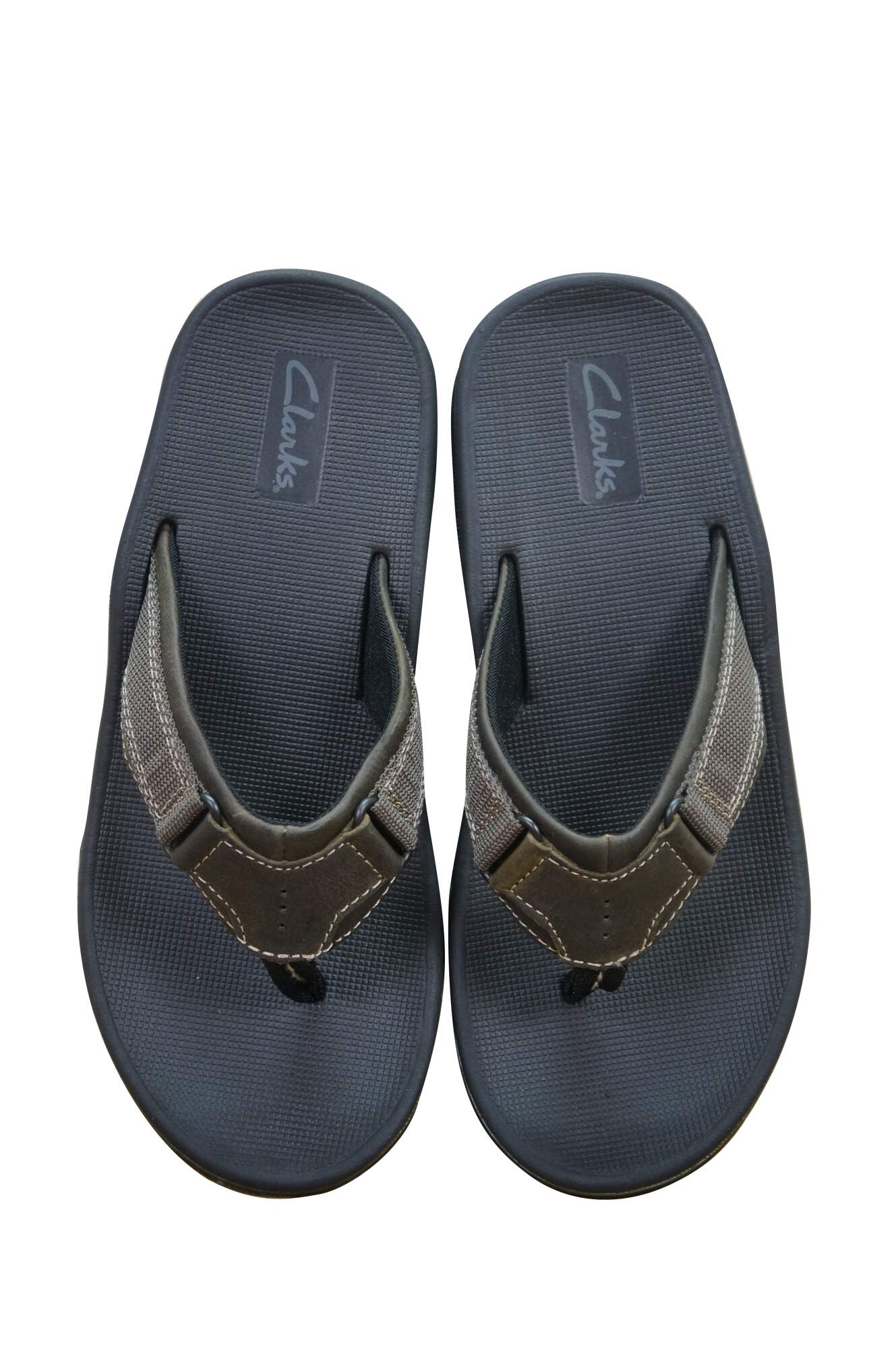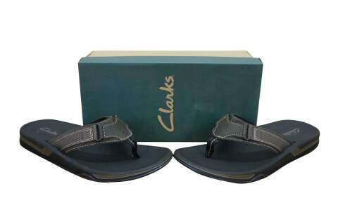 Slip into these smooth men's flip flops and you'll be ready for a day at the beach or for a night out on the harbor. The Clarks Stoli is set in a leather upper with fabric strap detailing and contrast stitching. This sporty Clarks thong features all the comfort of Clarks with summer style you'll find as flexible as your vacation plans. Slip on the Clarks Stoli and you'll be ready for summer fun.