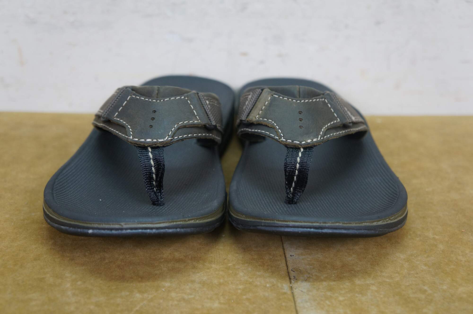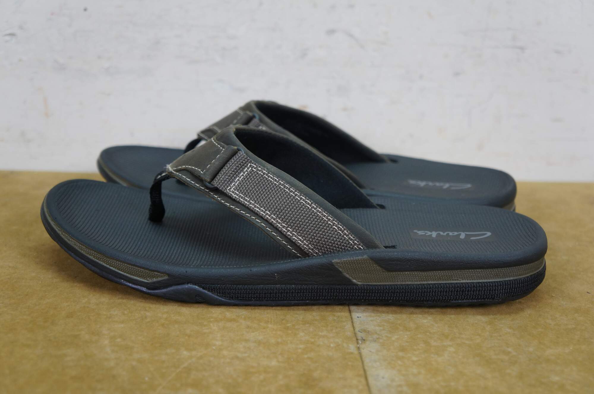 Vintage Clarks Stoli olive nubuck flip flops / tongs / clogs, mens size 8, UK 7.5, EU 41. 72448.