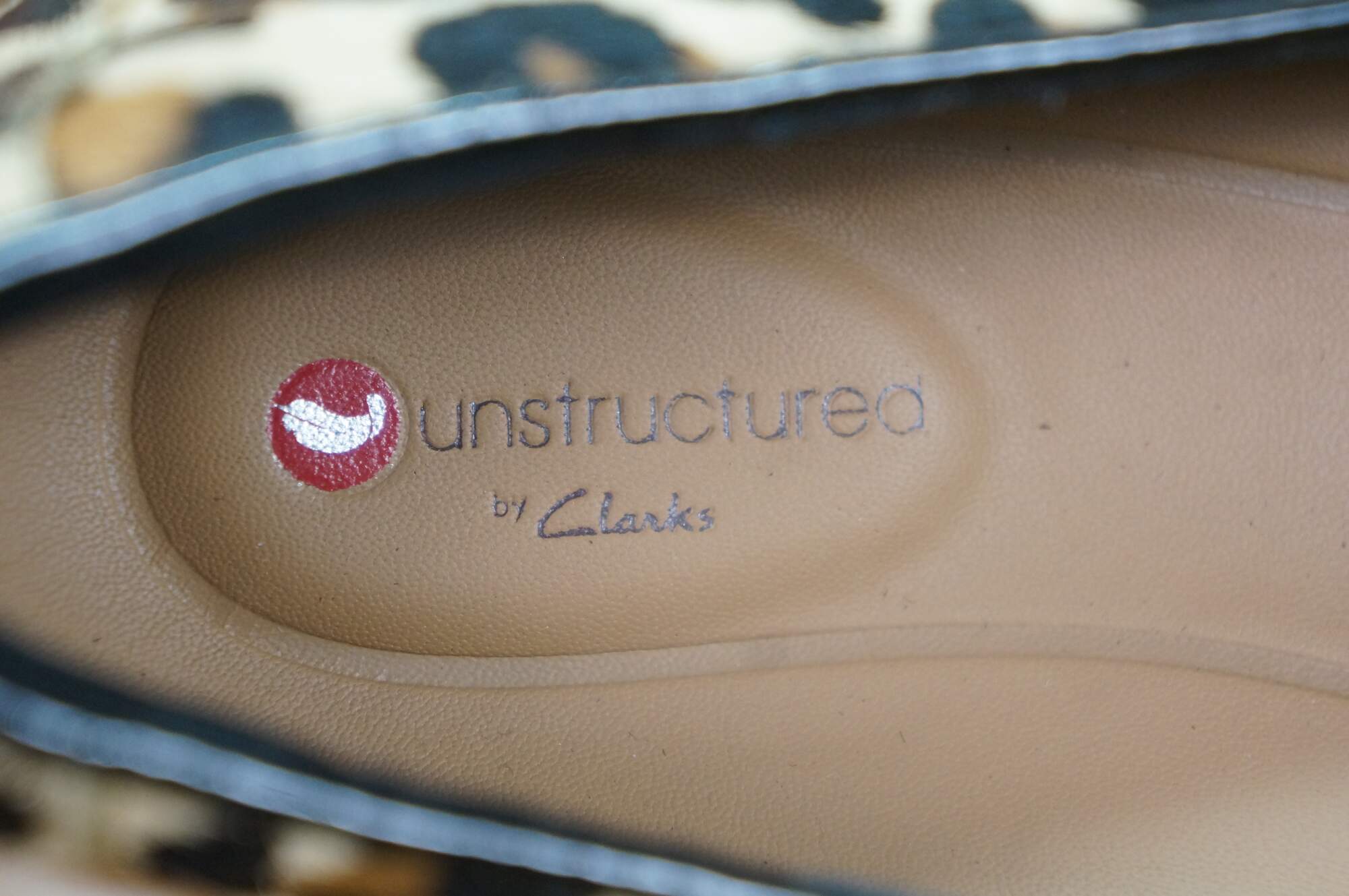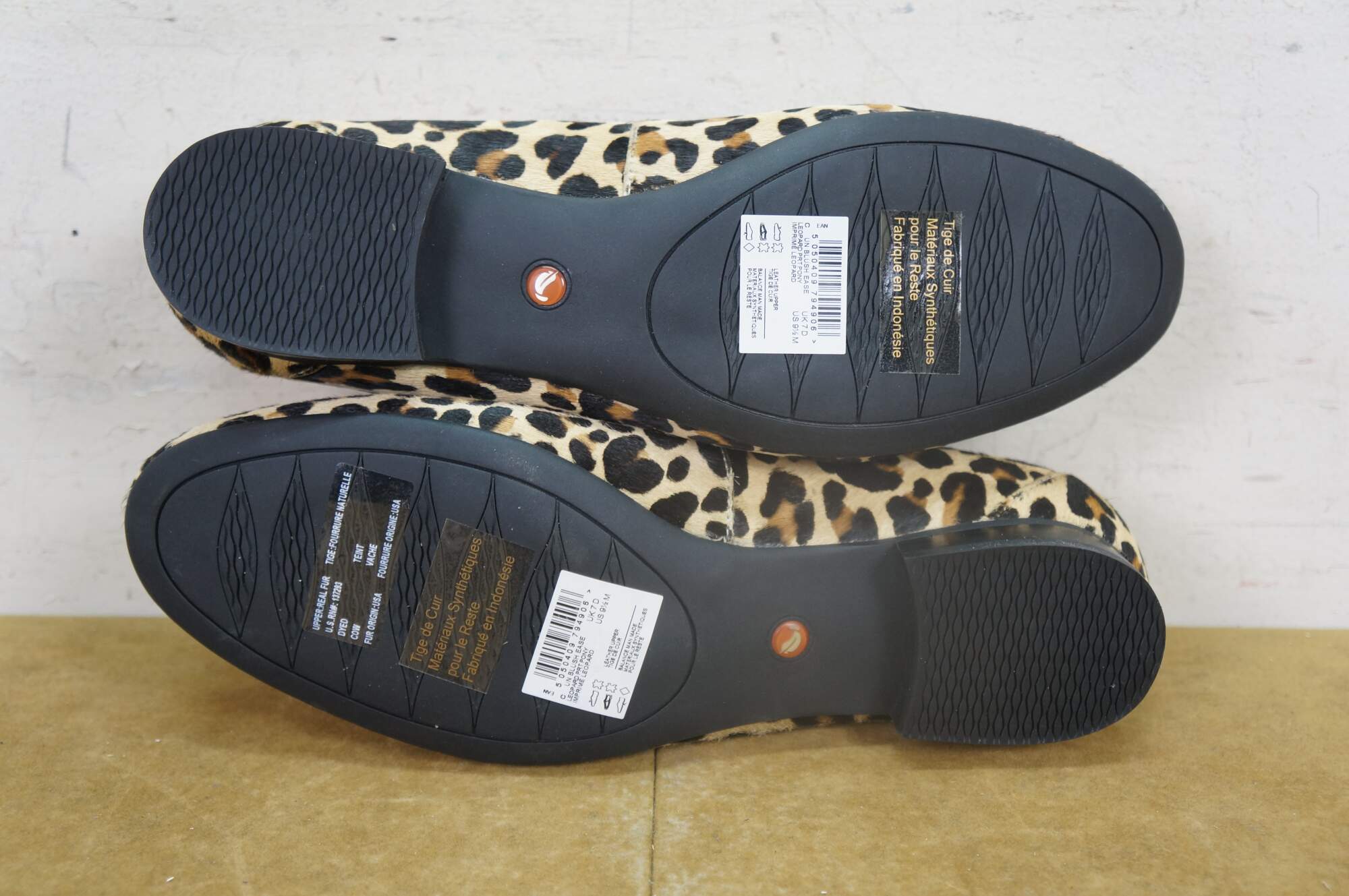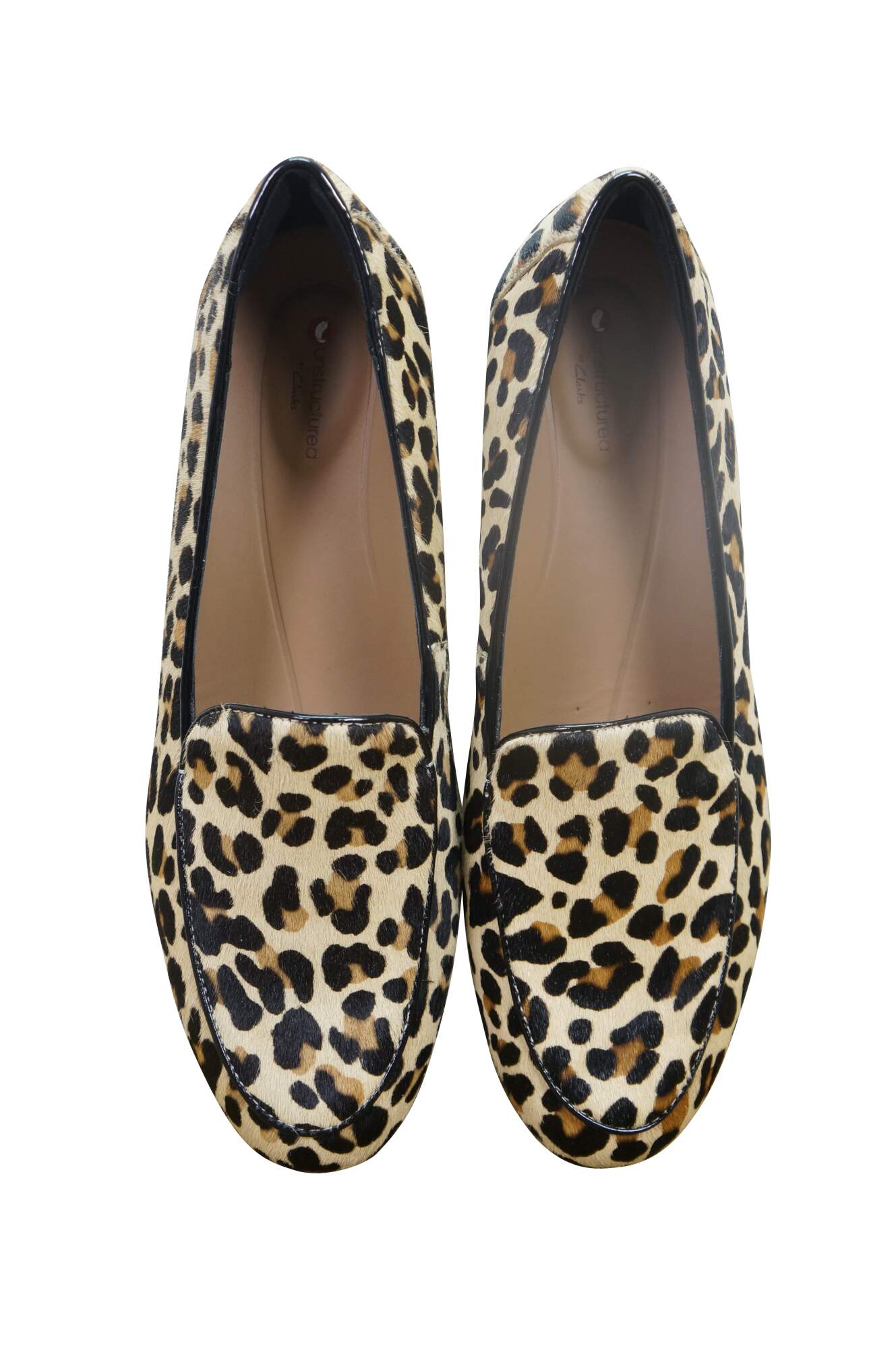 Vintage Clarks Leopard print pony loafer shoes, size 9.5, uk 7, eu 41. Un Blush Ease 46917.