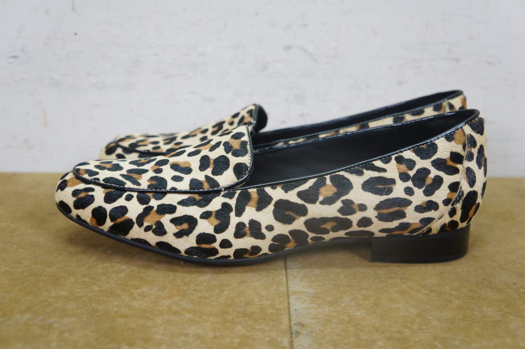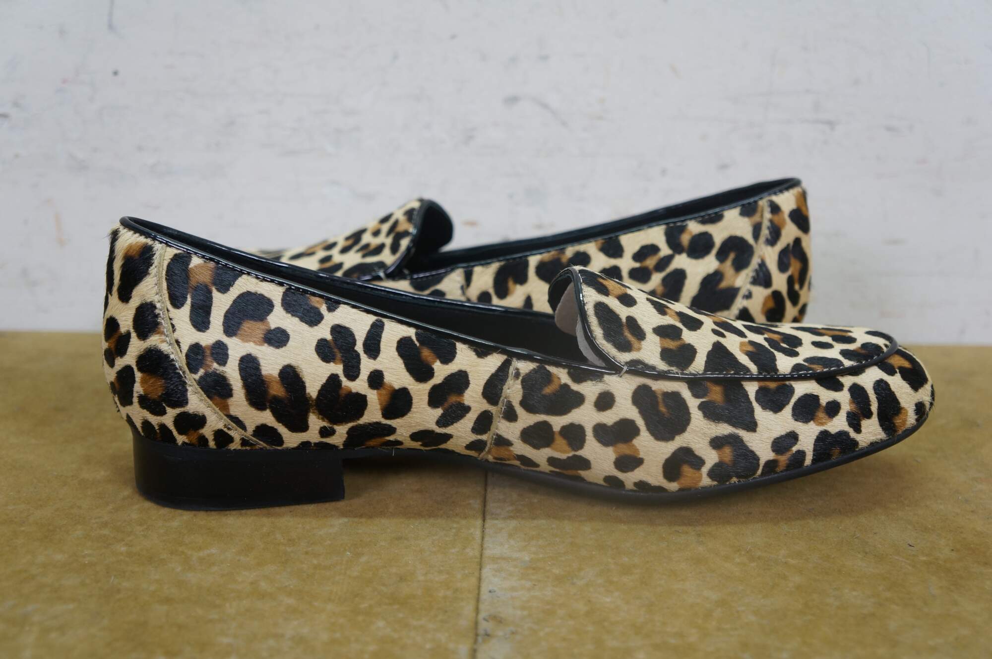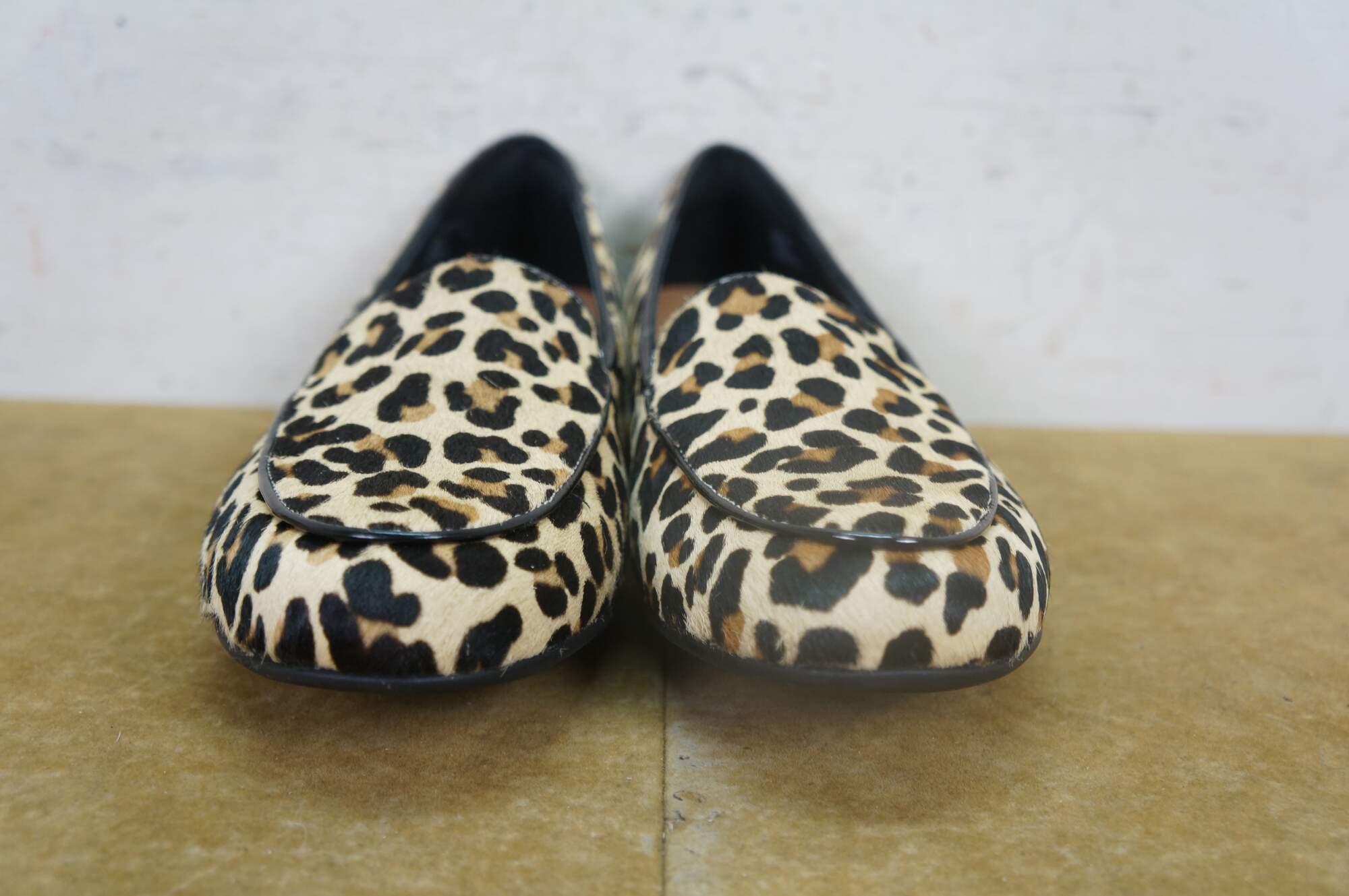 Vintage Clarks Leopard print pony loafer shoes, size 9.5, uk 7, eu 41. Un Blush Ease 46917.