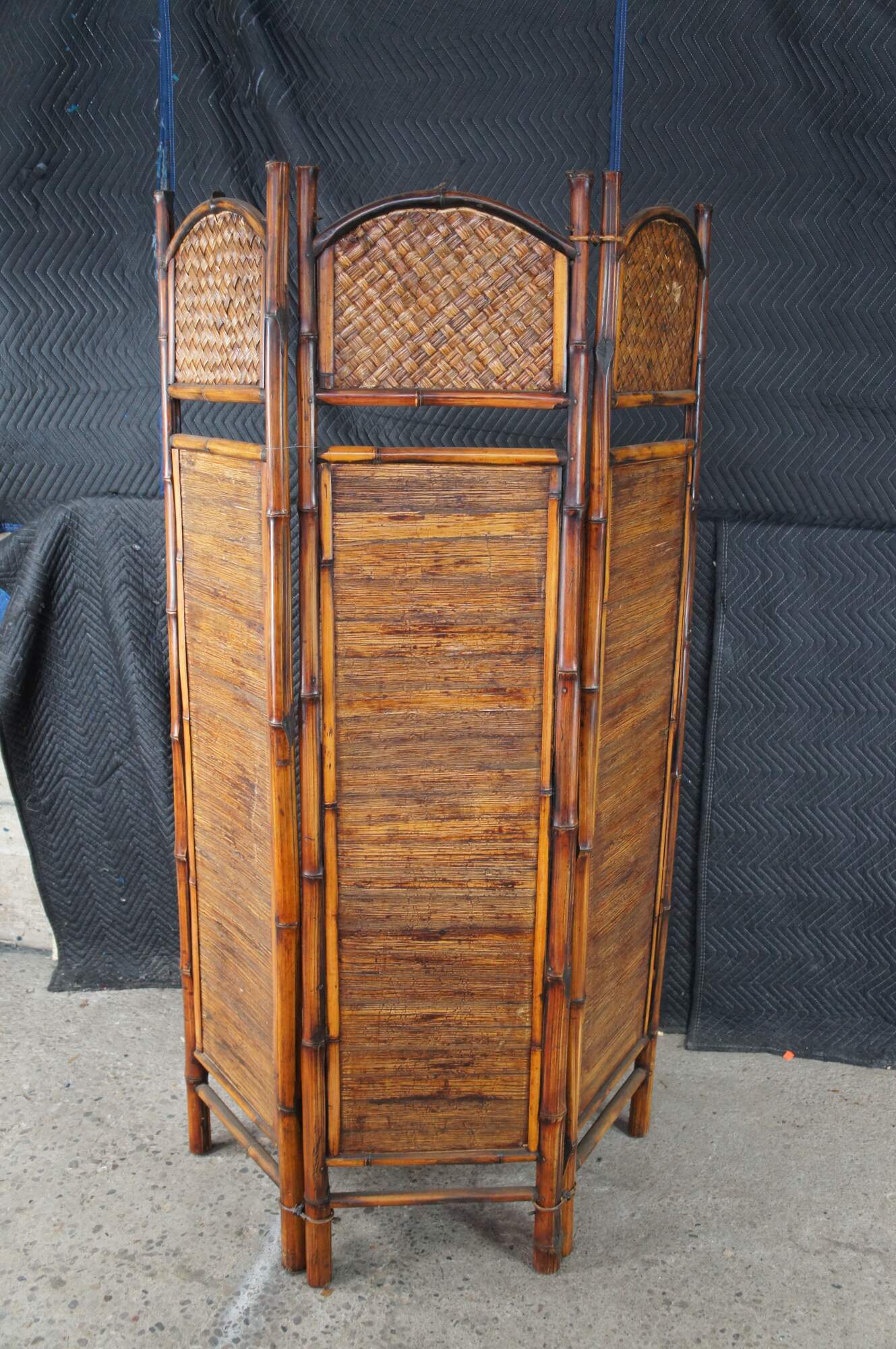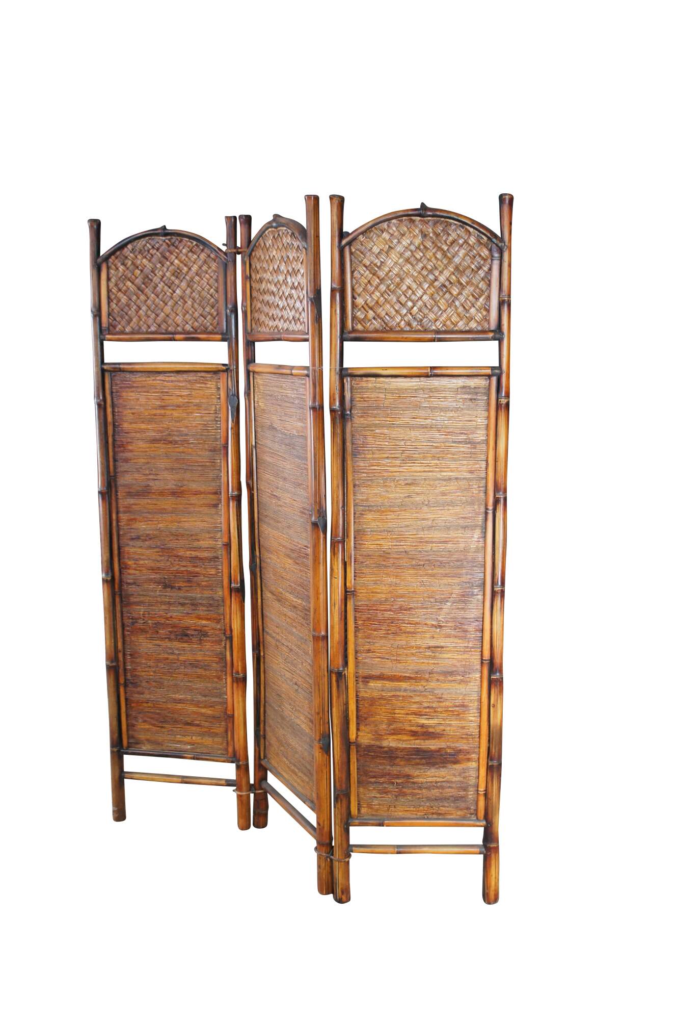 3 panel room divider made from bamboo, interlaced rattan and split reed. A warm addition to any space.