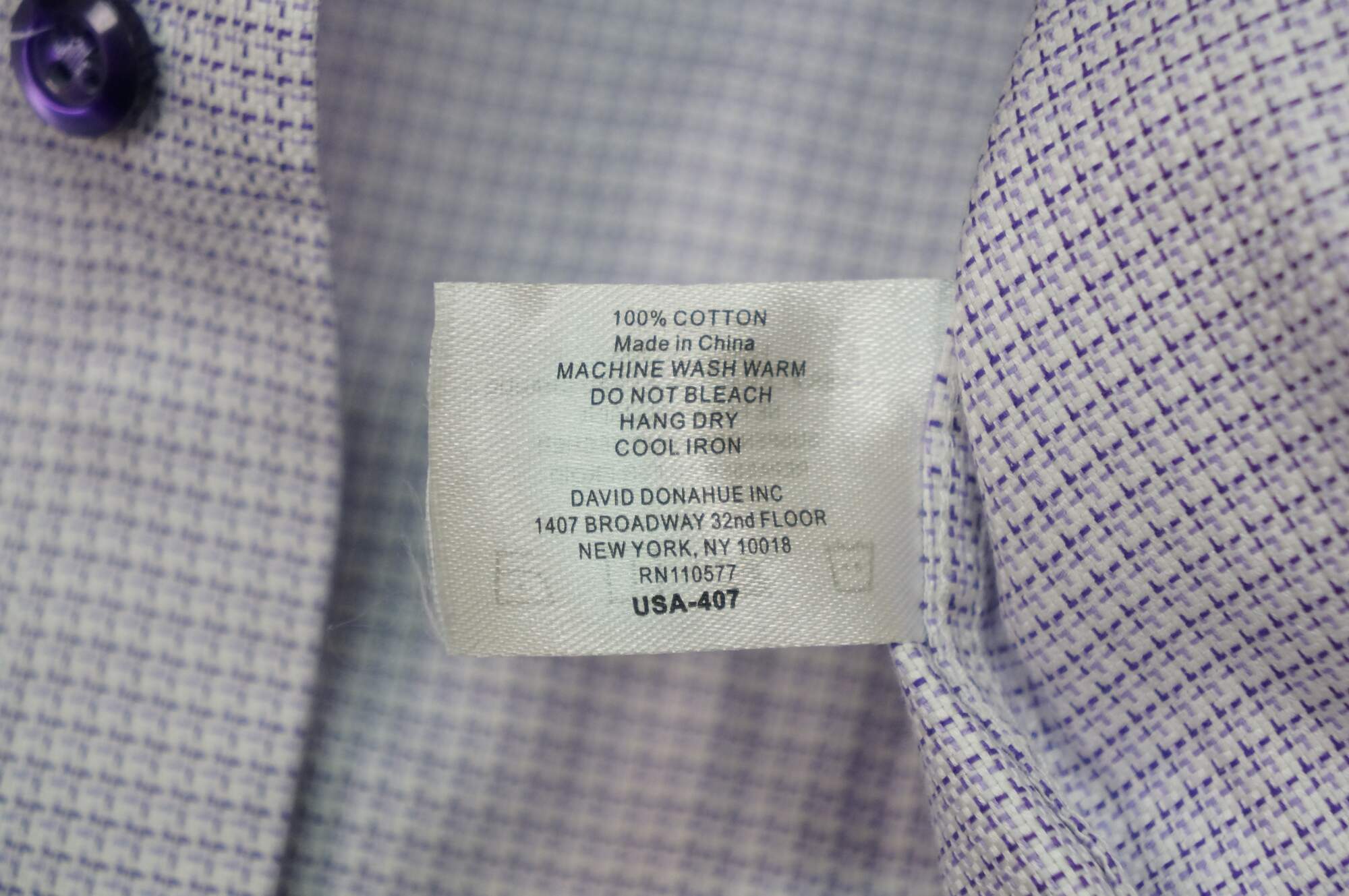 David Donahue Purple Lilac 100% Cotton Size 18 34/35 Mens Dress Shirt. USA 407. RN 110577. New old stock with tags, never worn.