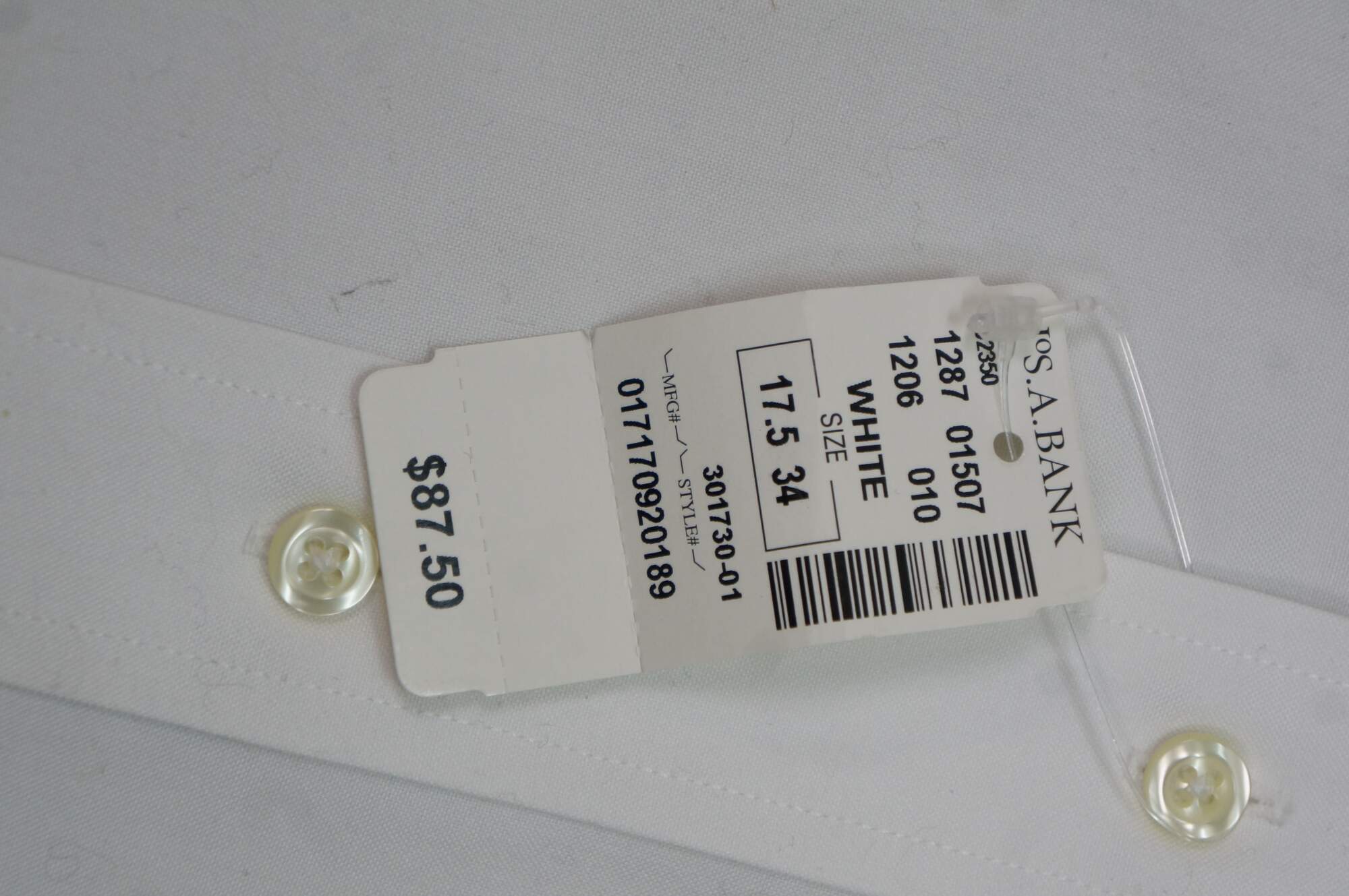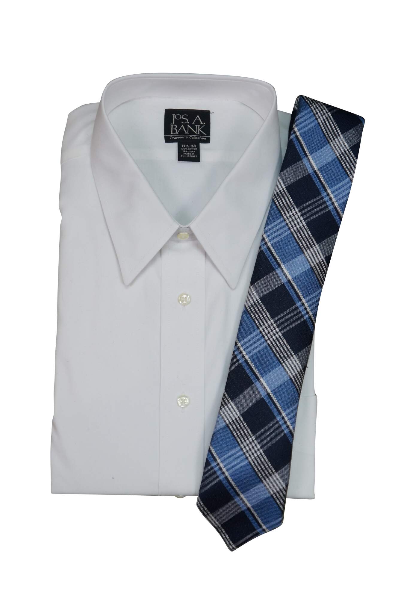 Jos A Bank Travelers Collection 100% Cotton Shirt & 1905 Tie Size 17.5 - 34. 301730. New old stock with tags, never worn. MSRP 87.50 and 59.50.