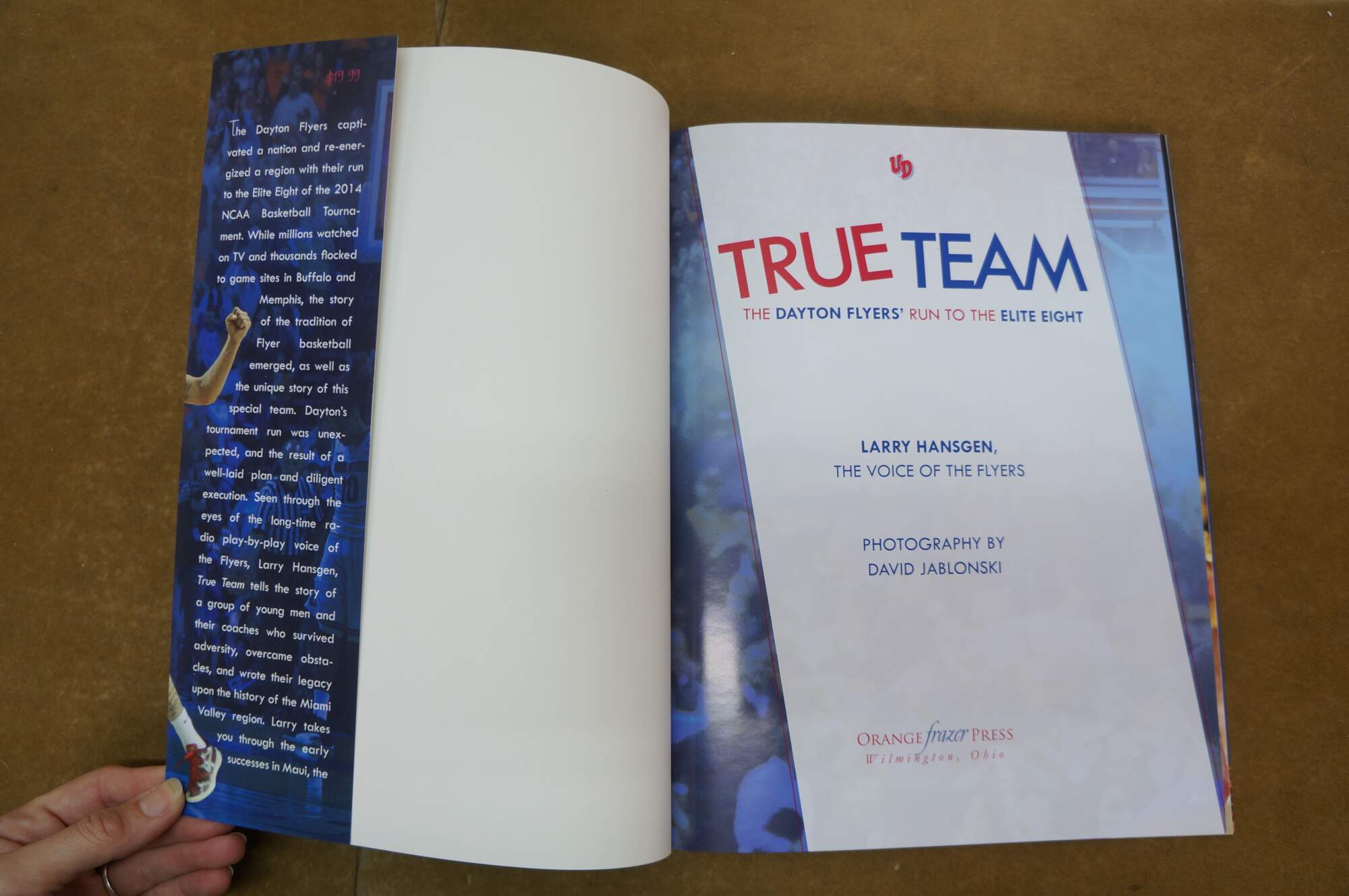True Team Cox Media commemorative magazine highlighting the men's basketball run in 2014; and UD 3D logo cursive inspire artwork in white frame.