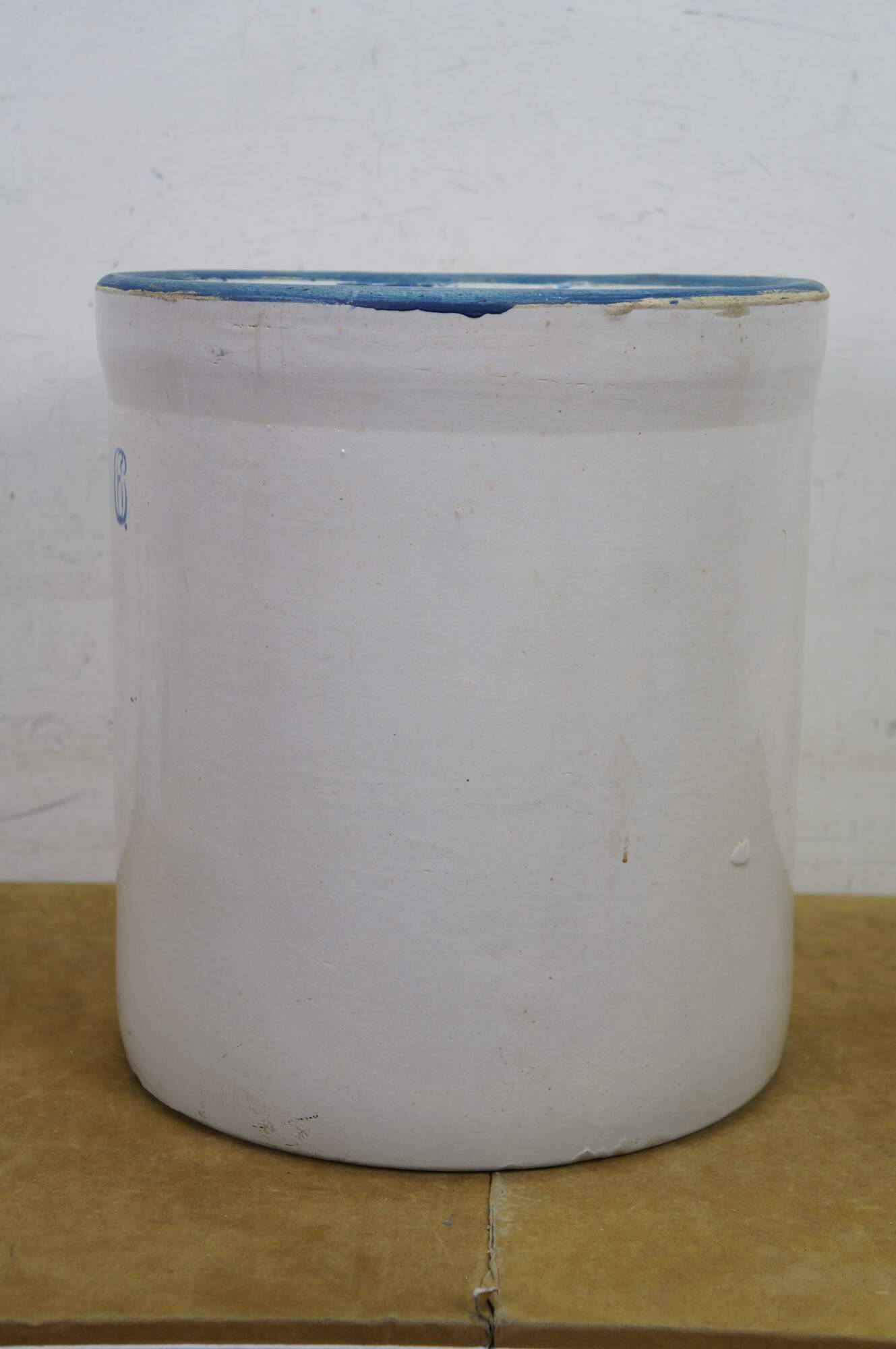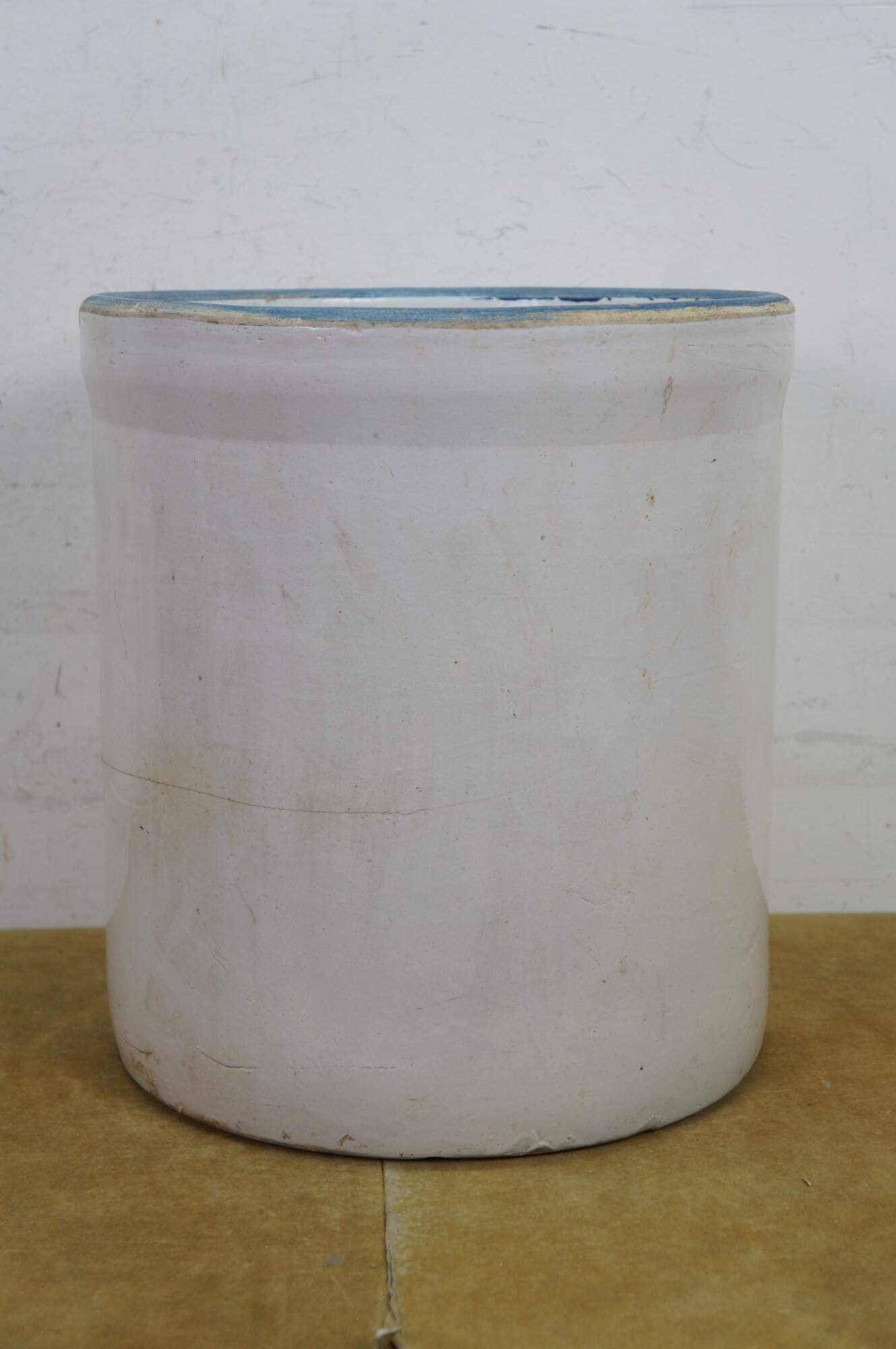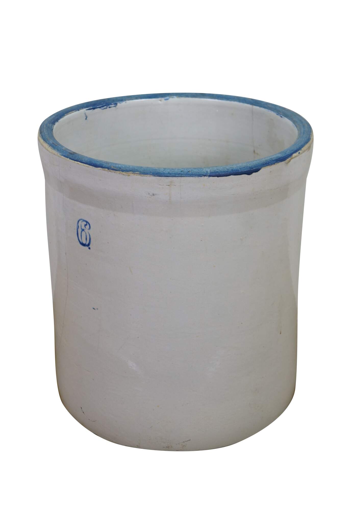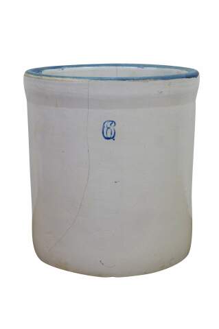 Antique farmhouse 6 gallon salt glaze stoneware crock pot planter.