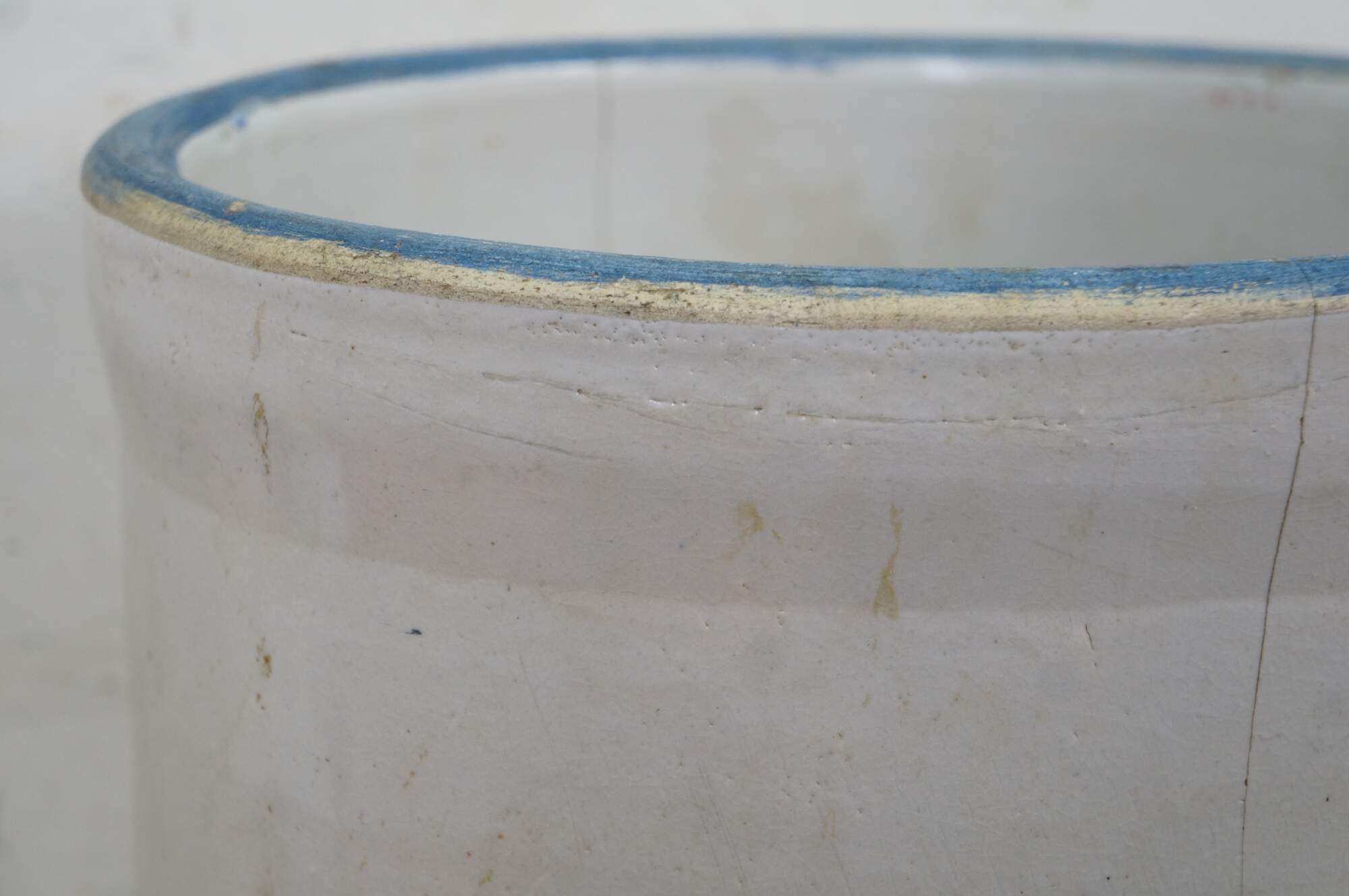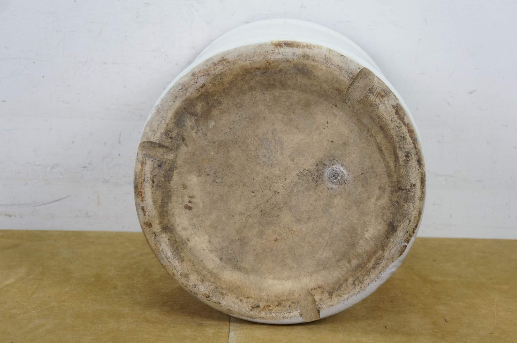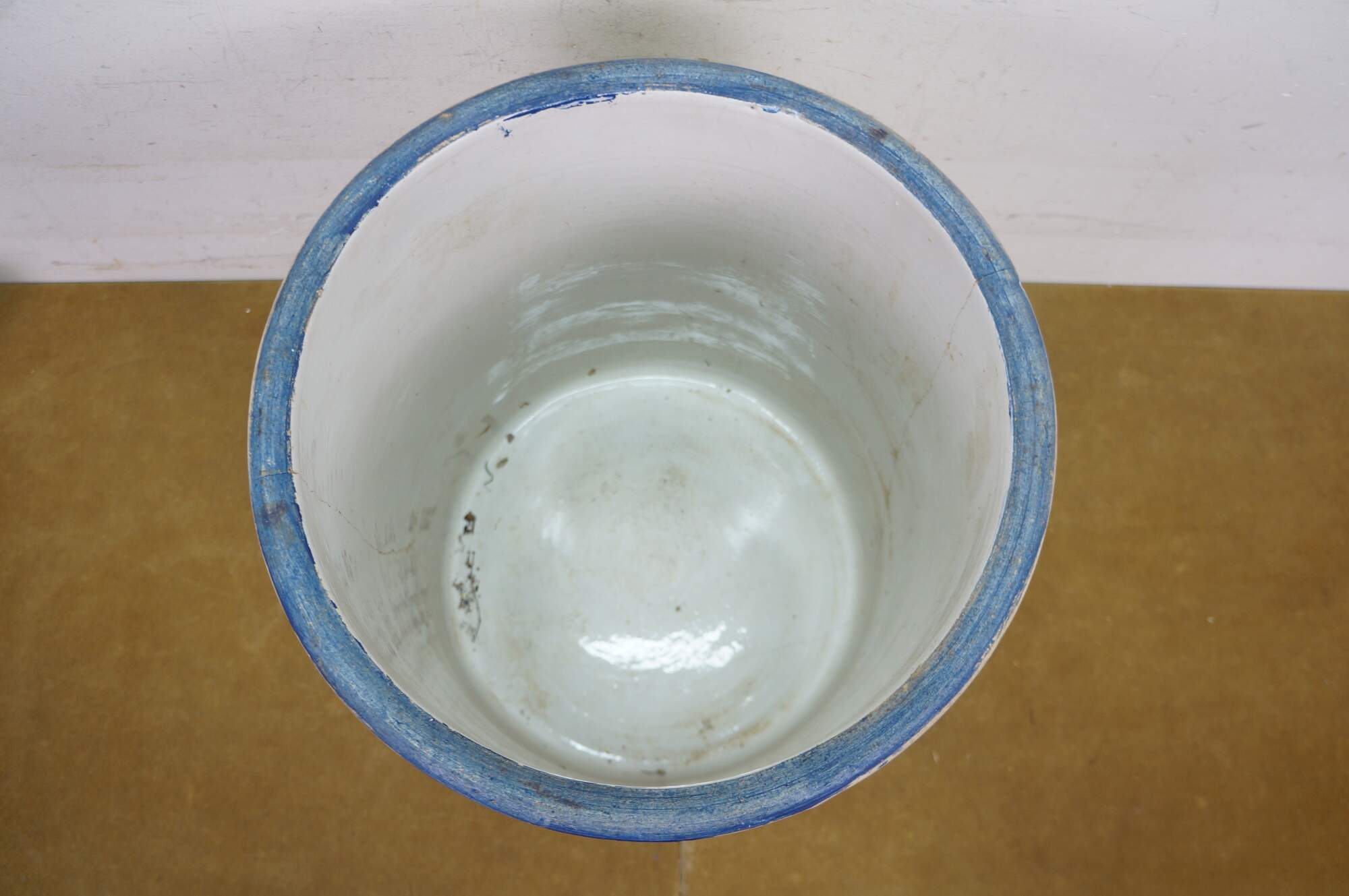 Antique farmhouse 6 gallon salt glaze stoneware crock pot planter.