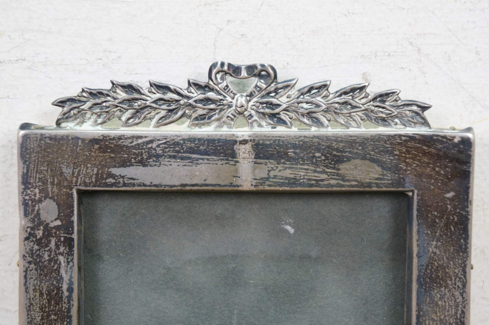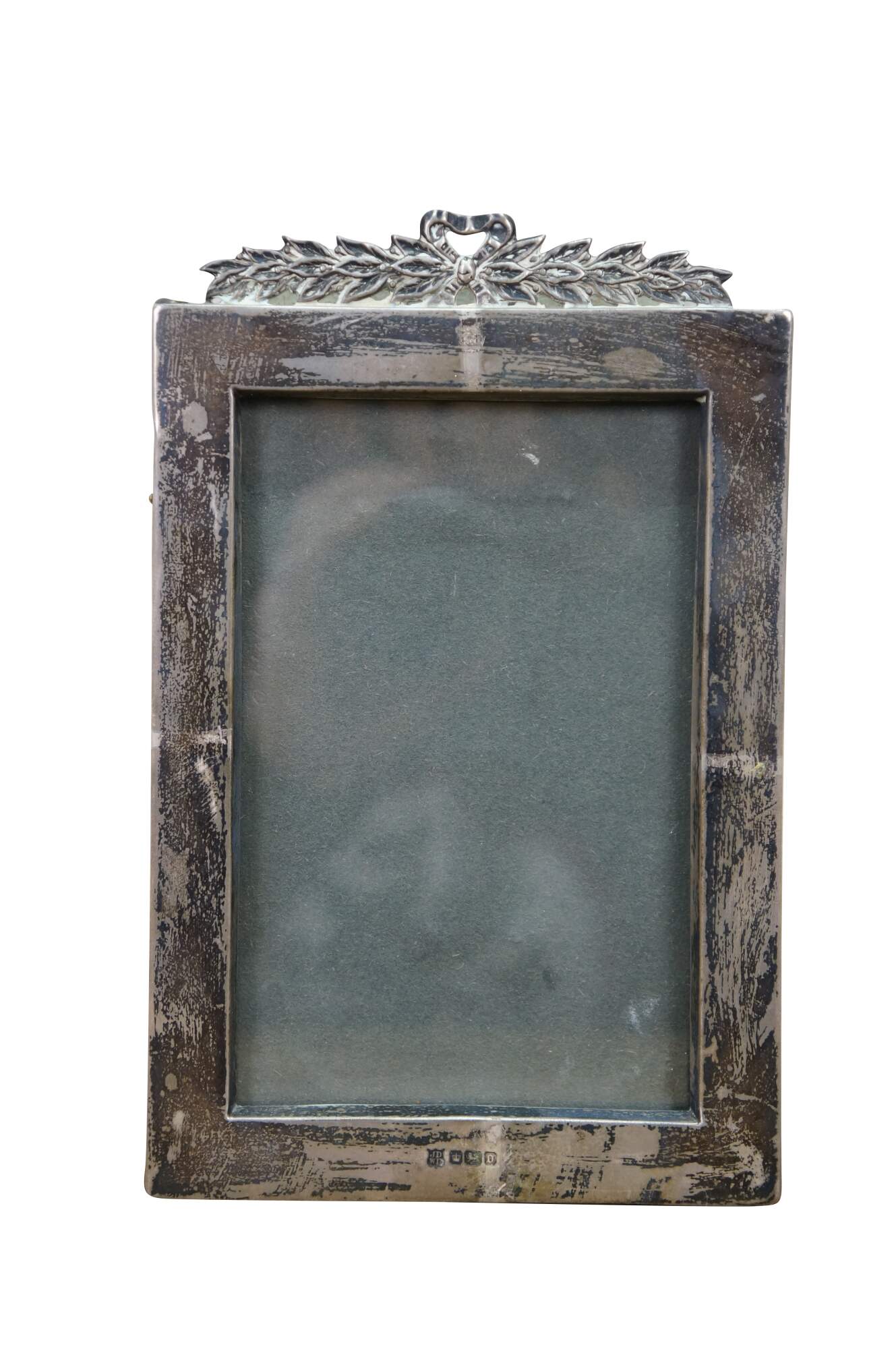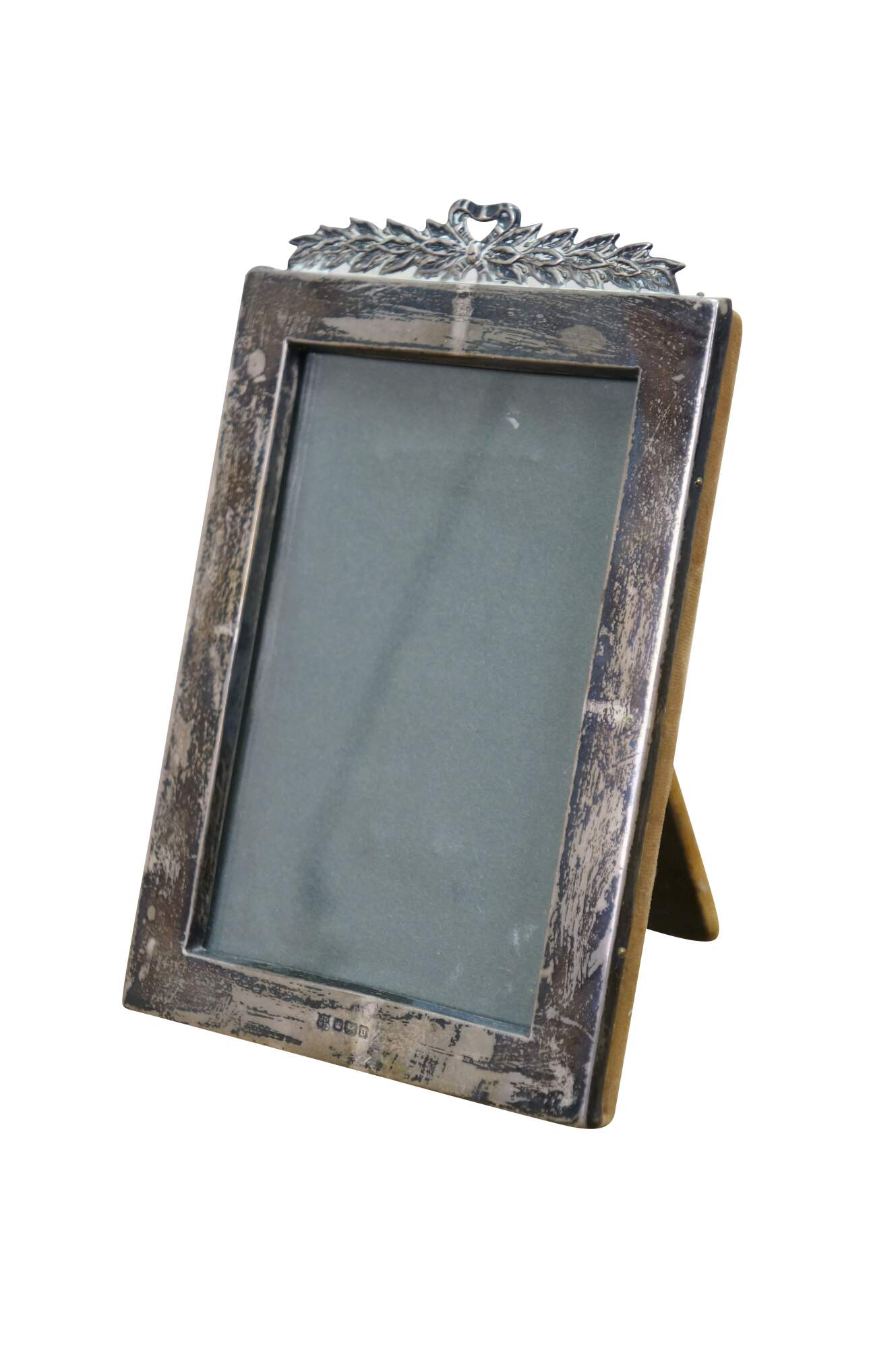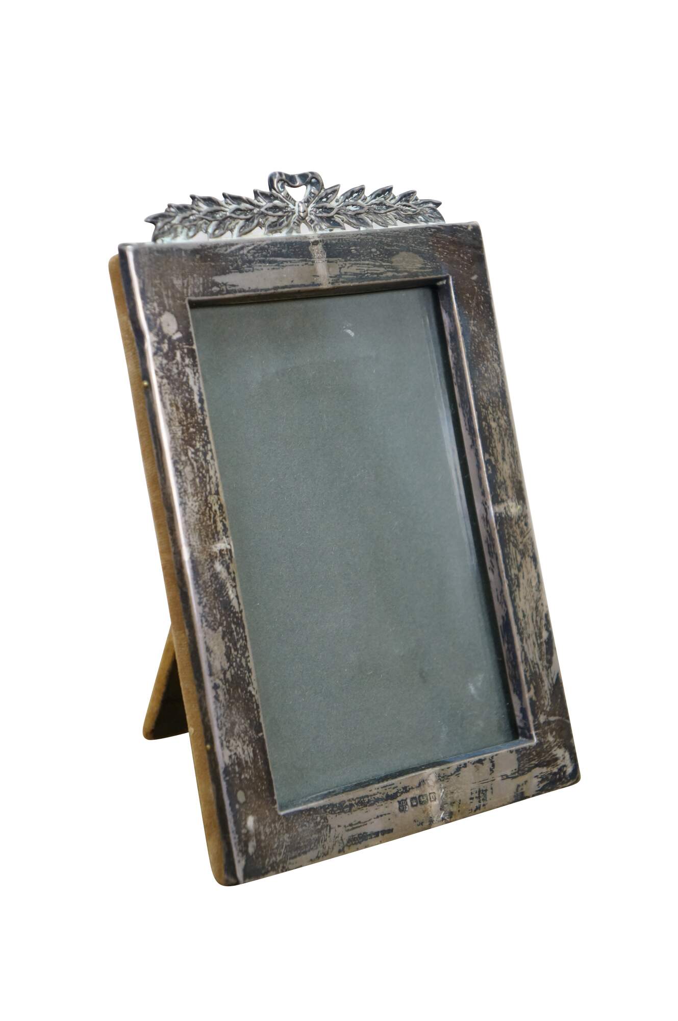 Antique Victorian / Edwardian James and William Deakin sterling silver picture photo frame featuring a Neoclassical wreath, berry and leaf motif.