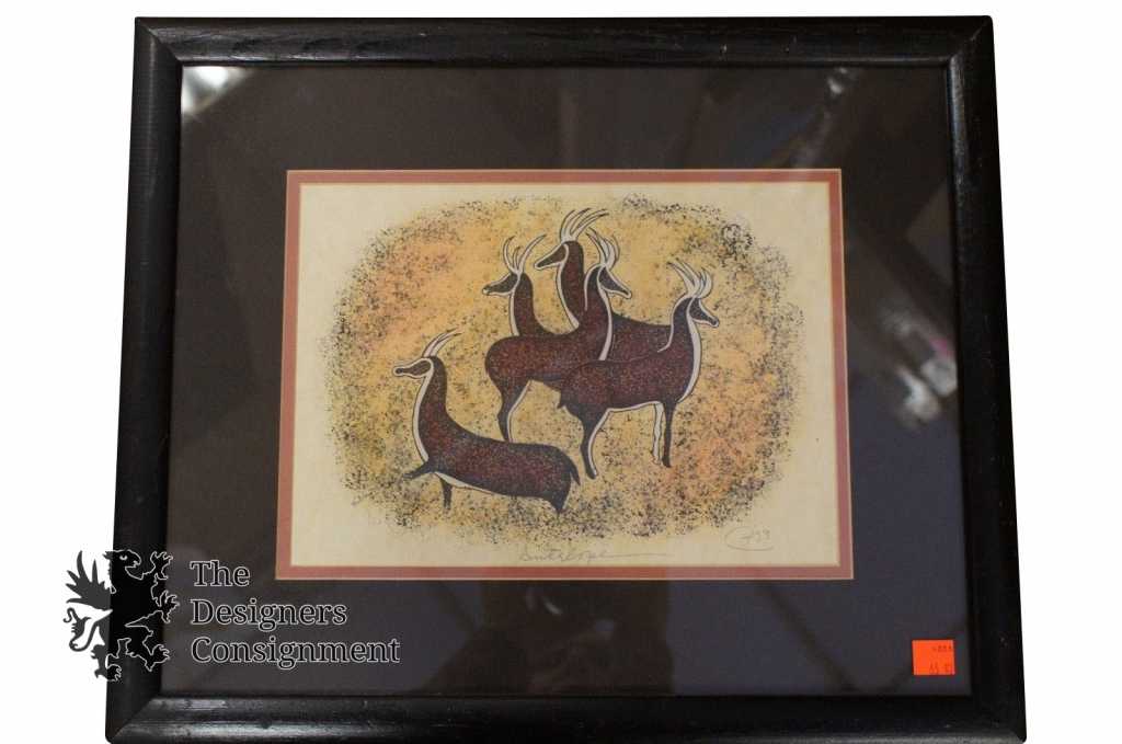 Here is are two wonderful primitive prints. Similar to old cave drawings. Each is Signed by what appears to be a G and T 1993. One is titled Antelope and the other Carvings II. Will look great in any home!