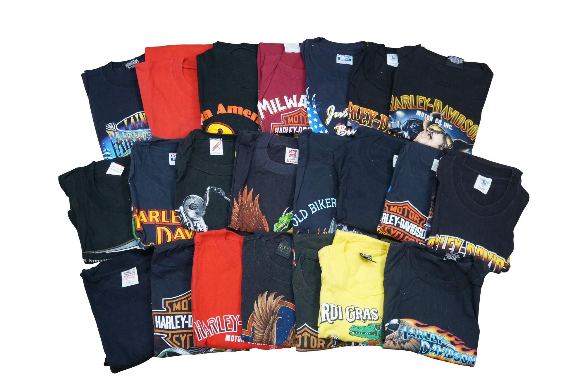 Twenty two vintage assorted Harley Davidson motorcycle biker t-shirts.