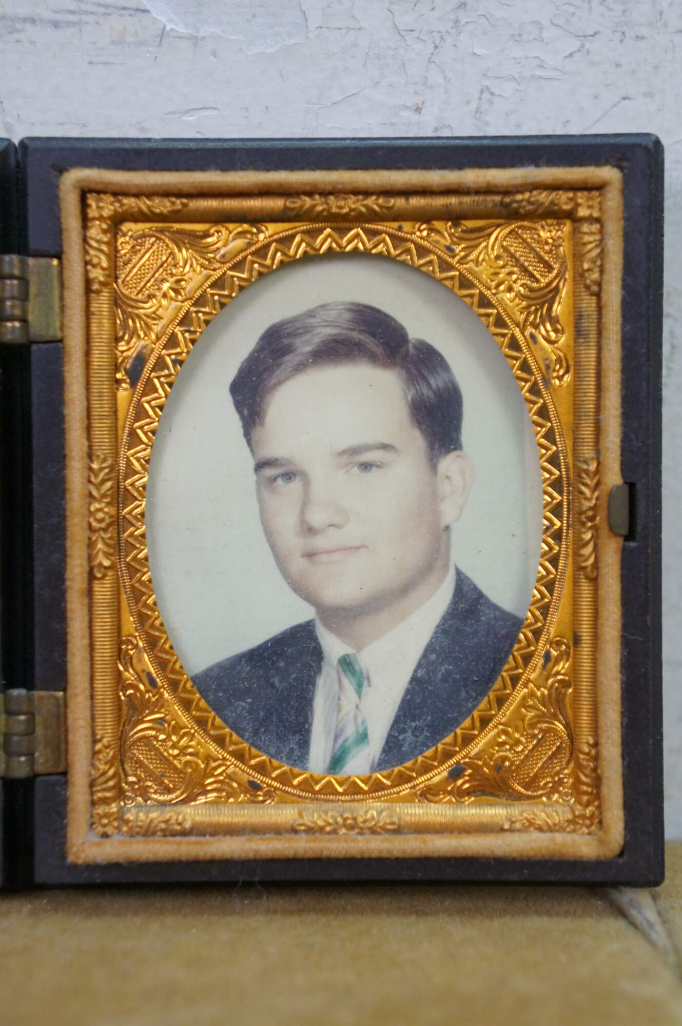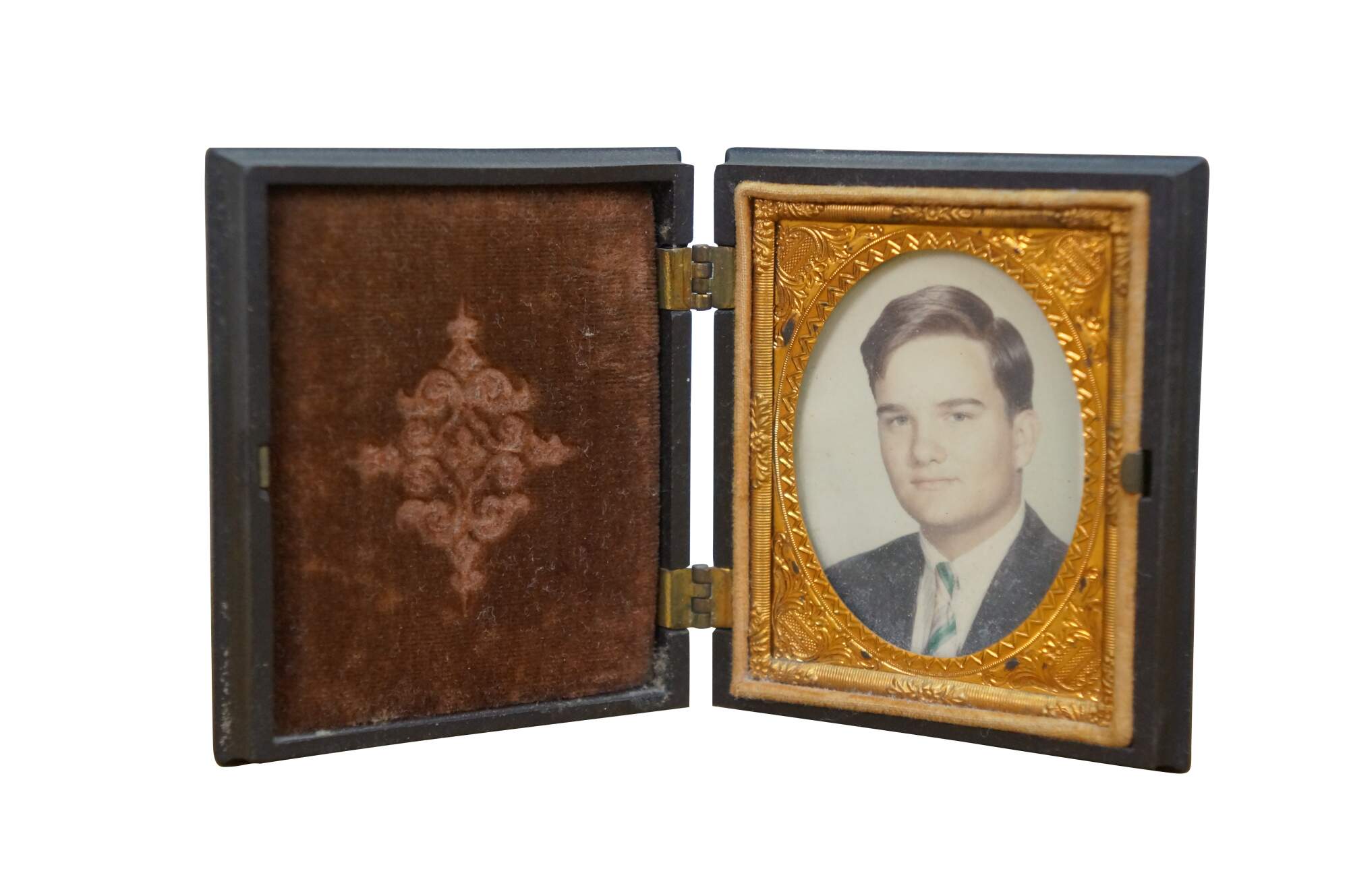 Antique American Victorian Thermoplastic Portrait Case W/ Modern Photograph 3"