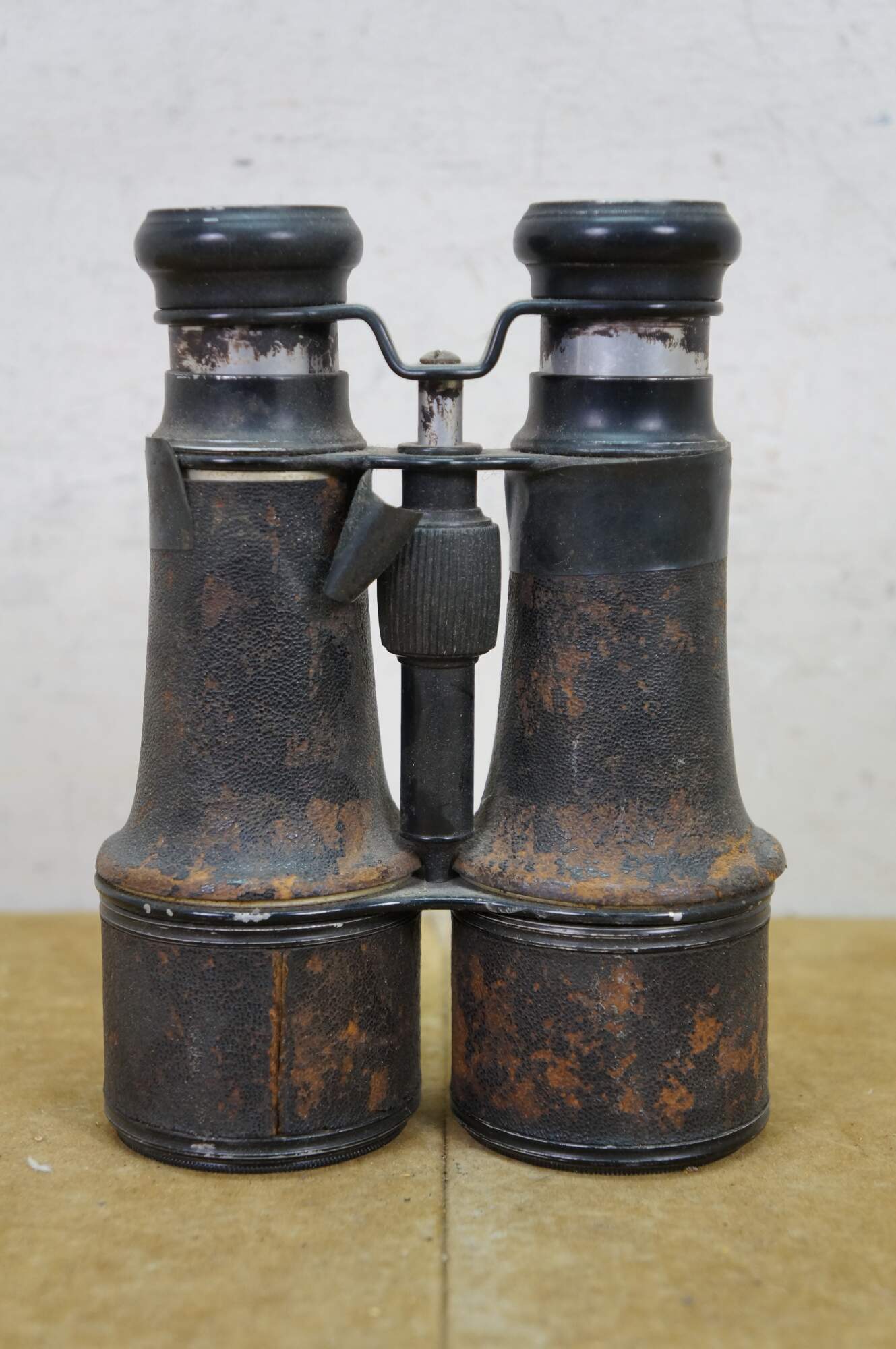 WWI Era Field Glasses / Binoculars by Bardou & Son of Paris. Features long leather wrapped cylinders. Marked with a Great Britain Medical Trademark.