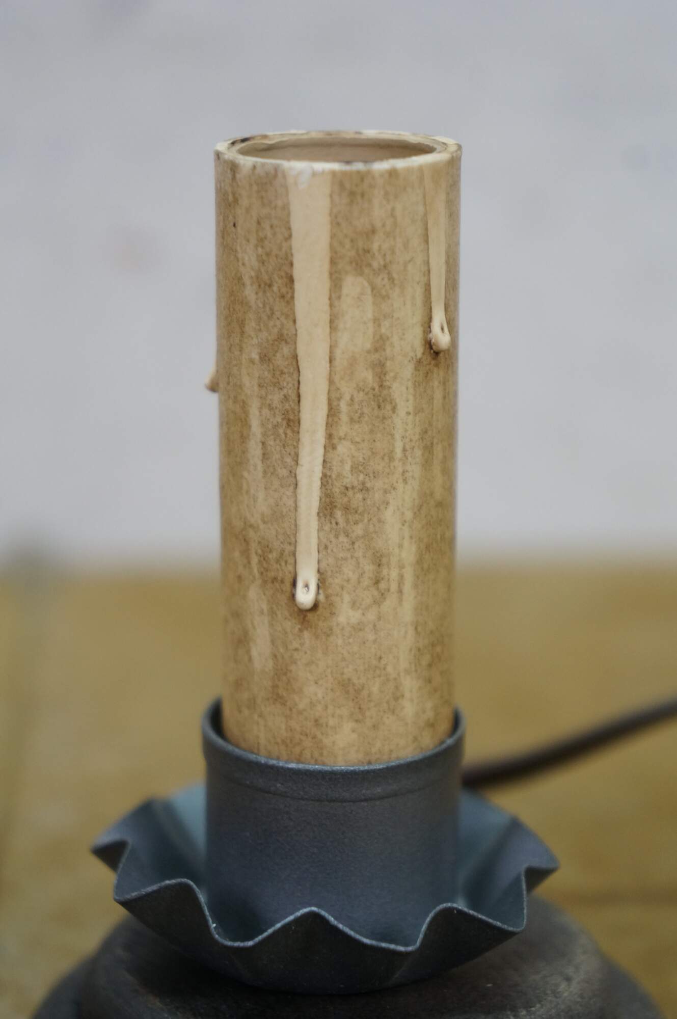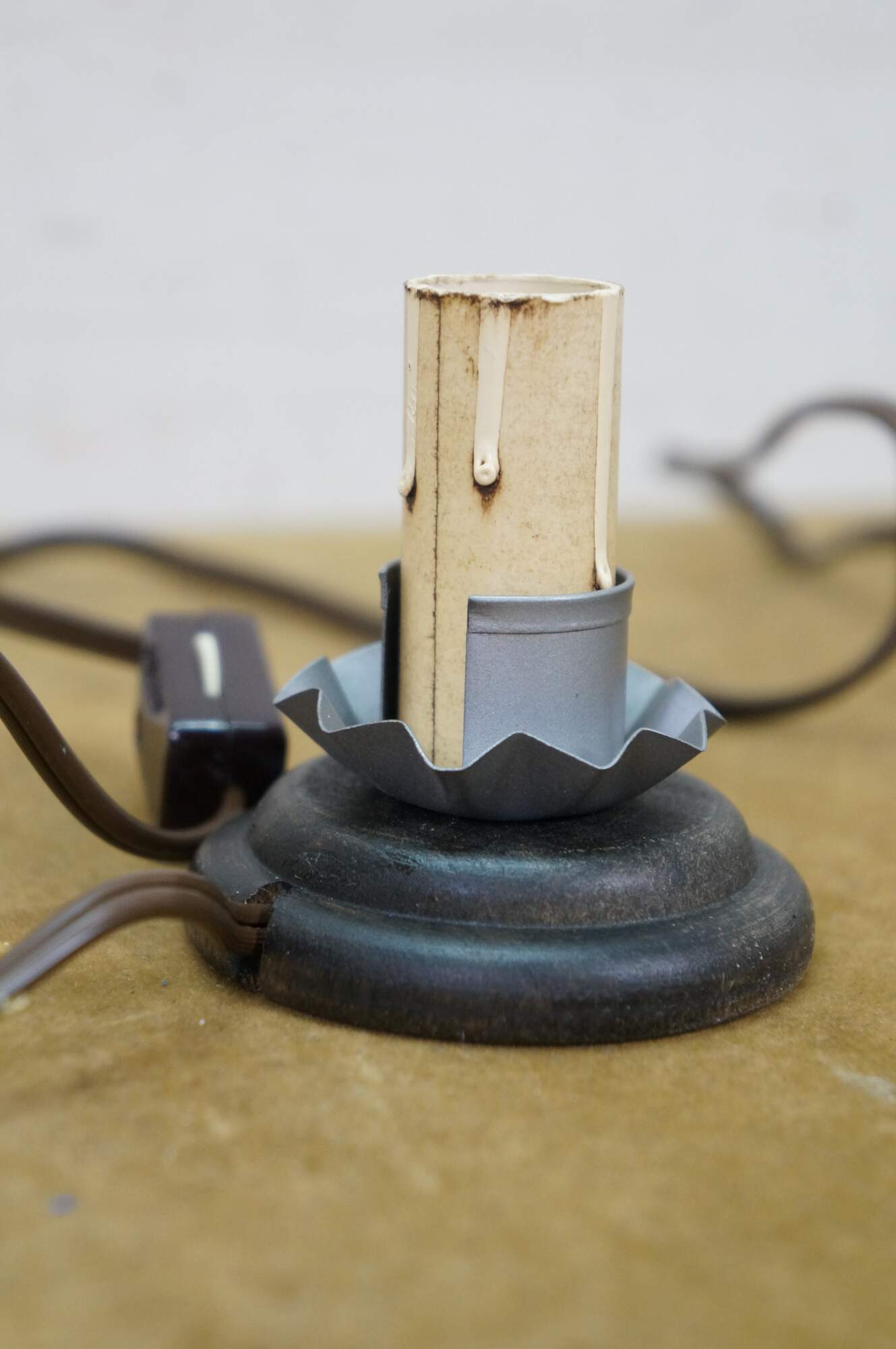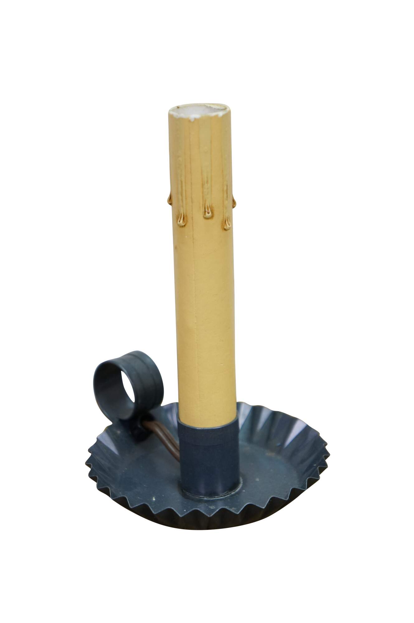 5 early american style crimped tin electric candlestick lamps. Features a candlestick drick covers.