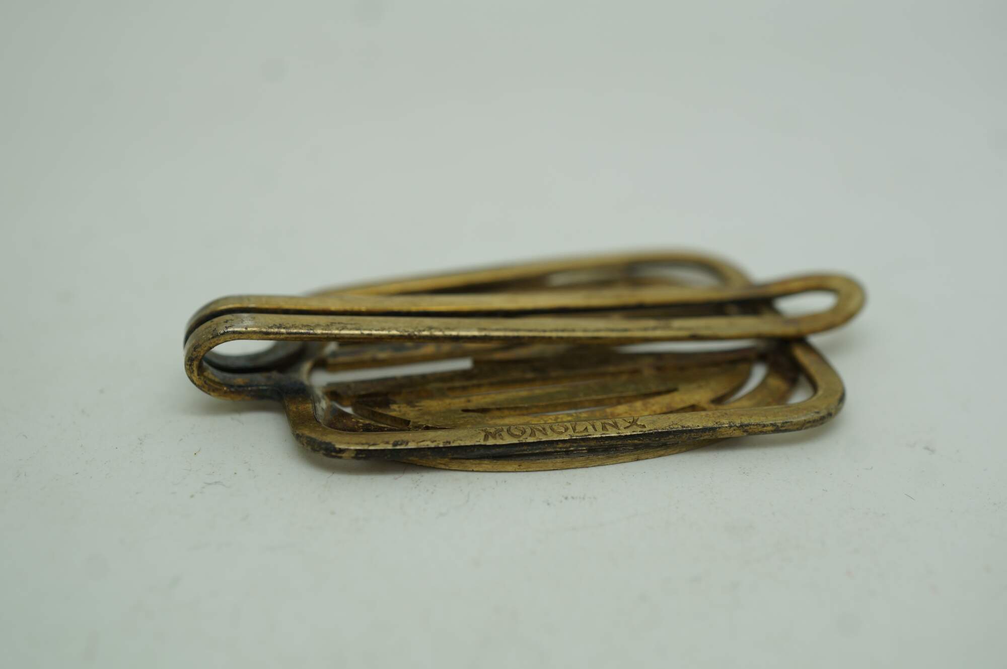Antique Art Deco Monolinx Sterling Silver Monogrammed Gold Money Clip. Monogrammed KWD.