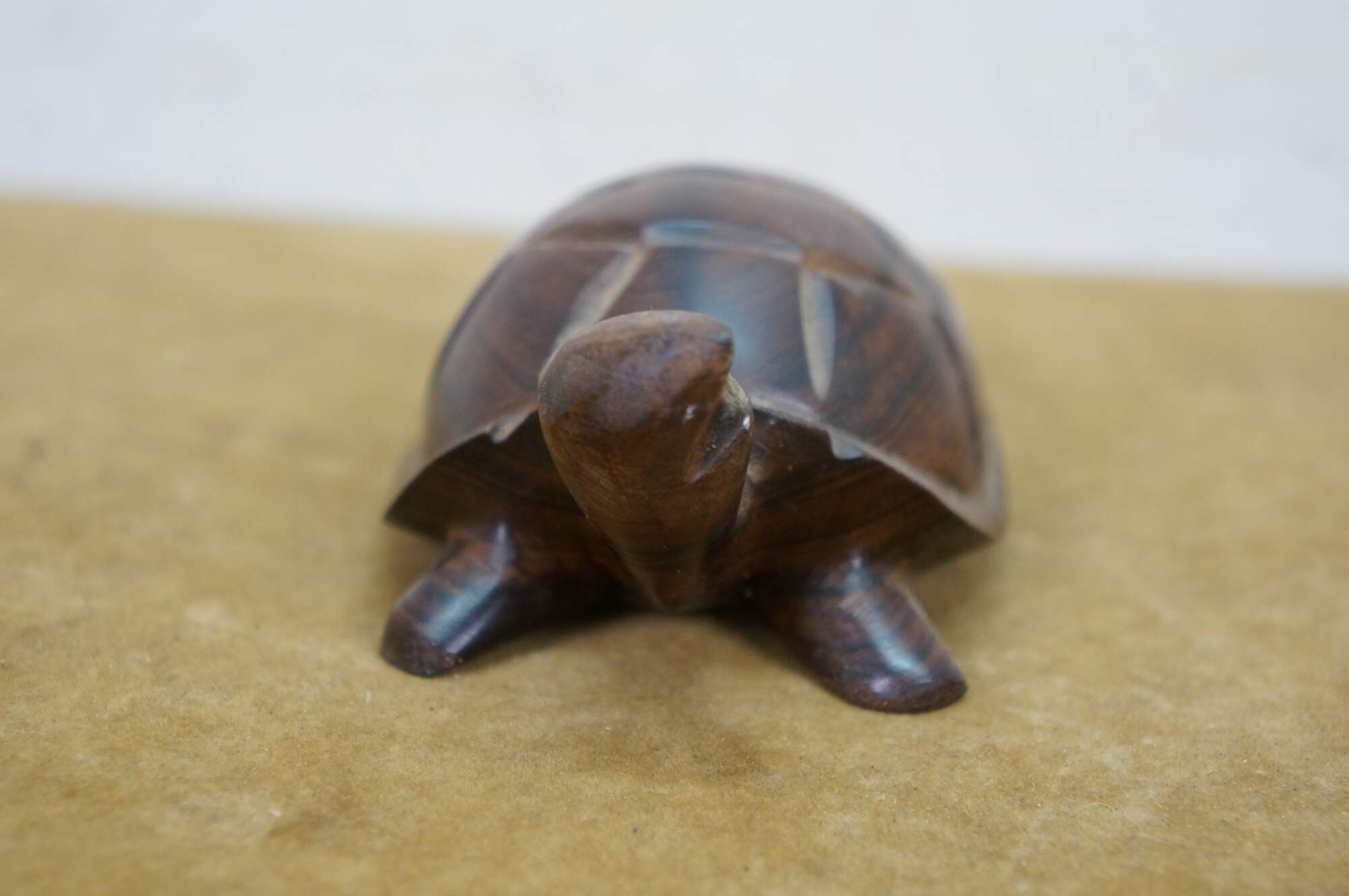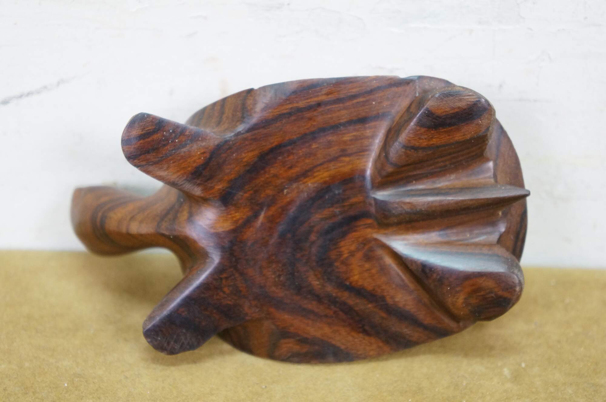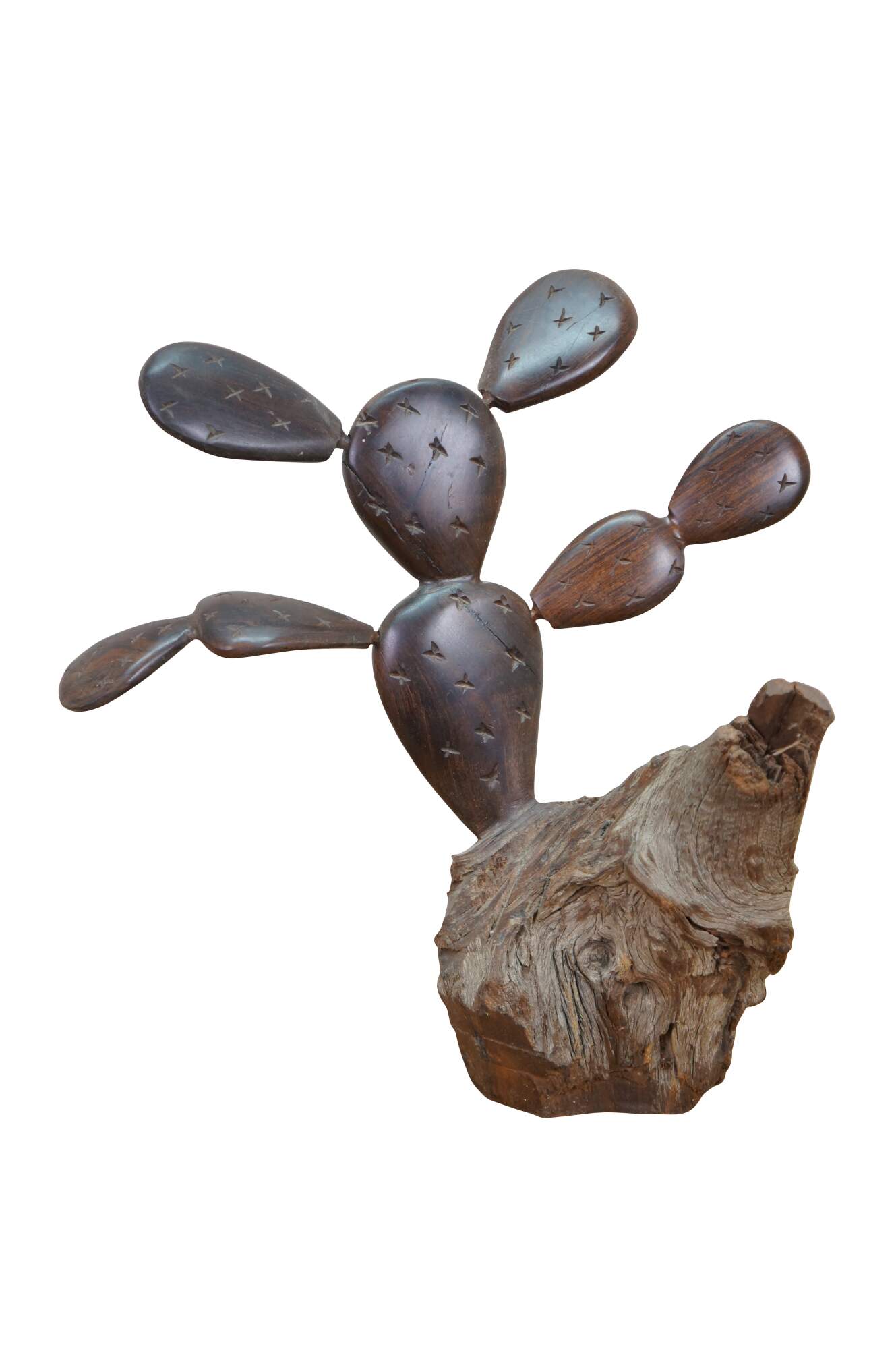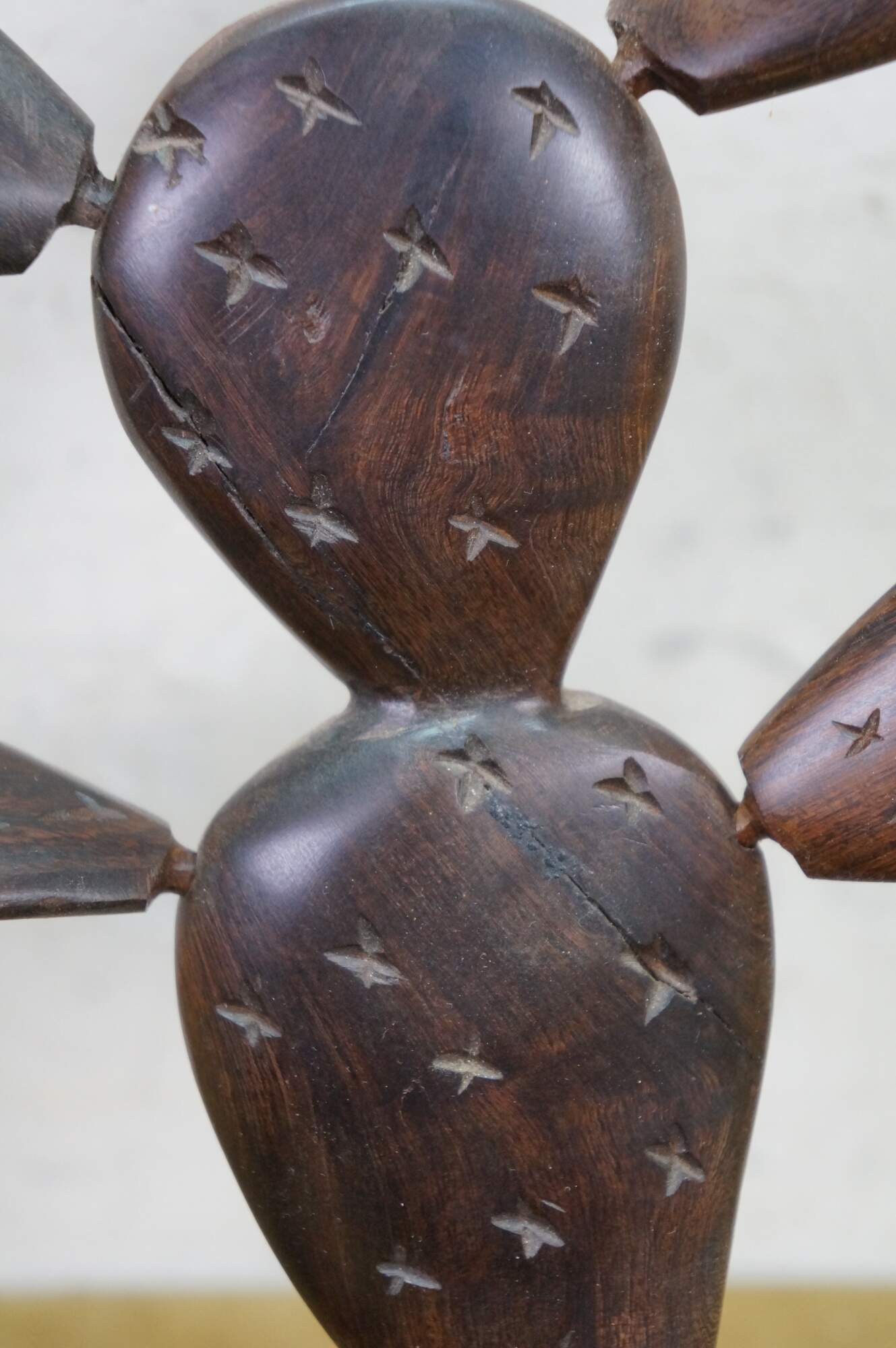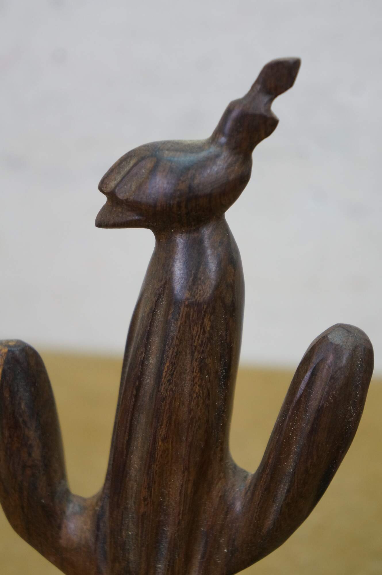 3 Vintage Hand Carved Sculptures. Made from Ironwood. Features a Saguaro cactus with bird on top. A carved turtle and a large Prickly Pear Sculpture